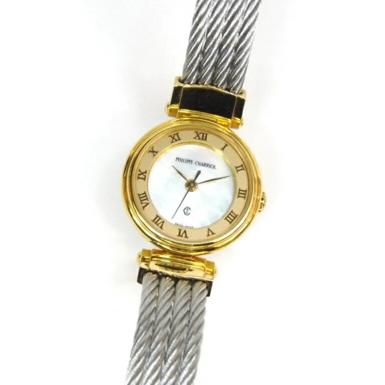 PHILIPPE CHARRIOL watch quartz shell used gold silver belt Excellent Condition