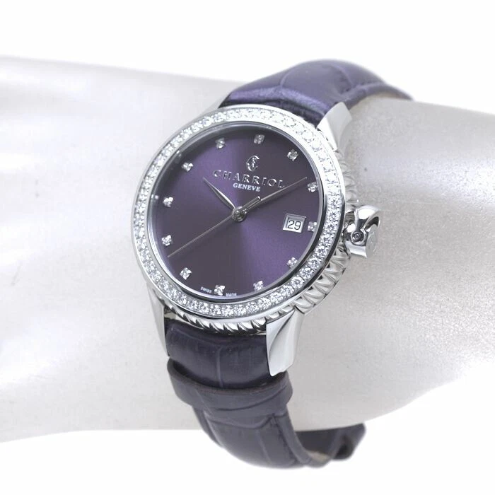 MINT! CHARRIOL Columbus CO36QSD.369.003 Prune Dial Diamond Women's Watch /38462