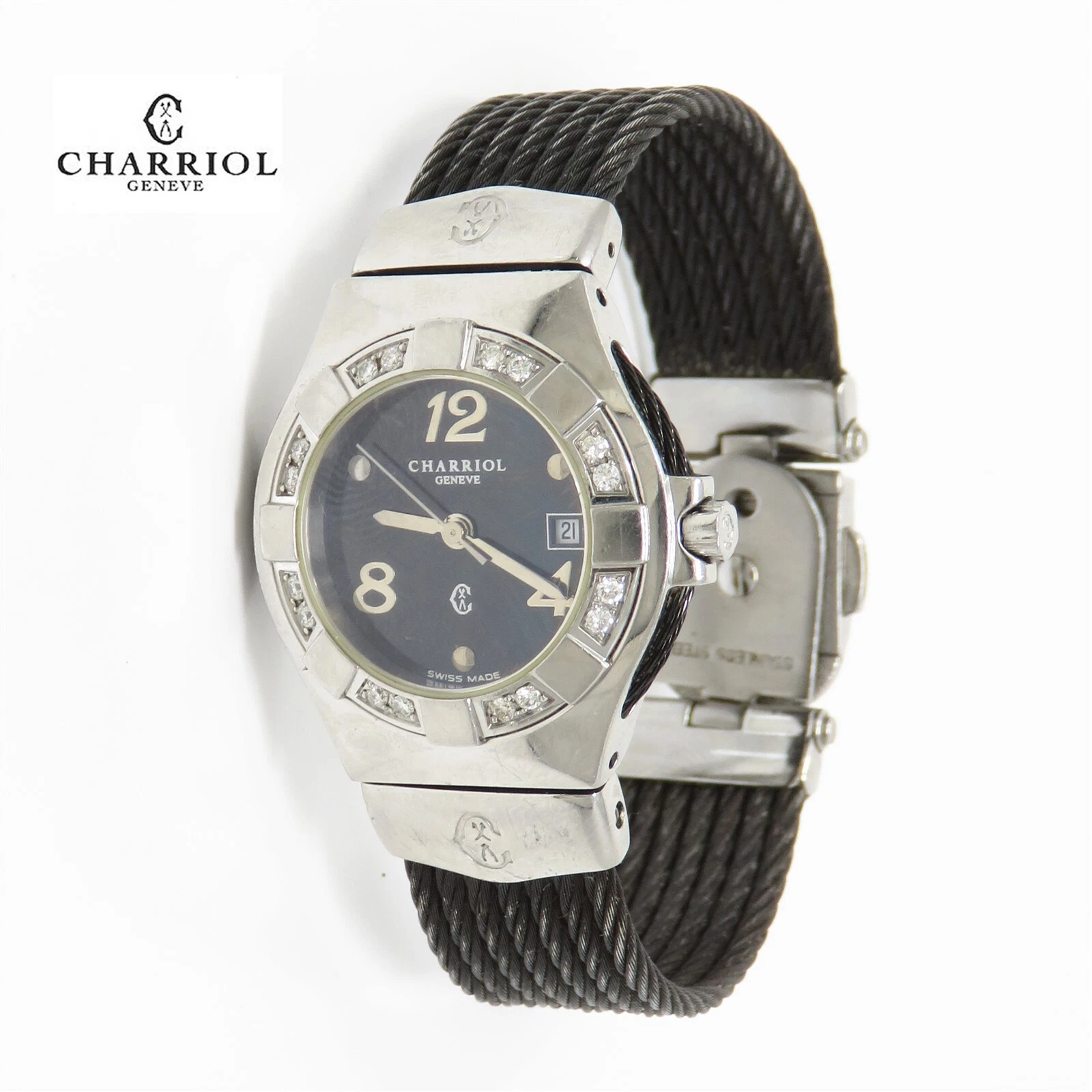 NYJEWEL Charriol Celtic Diamond Chevron Cable Women's Quartz Watch 7"