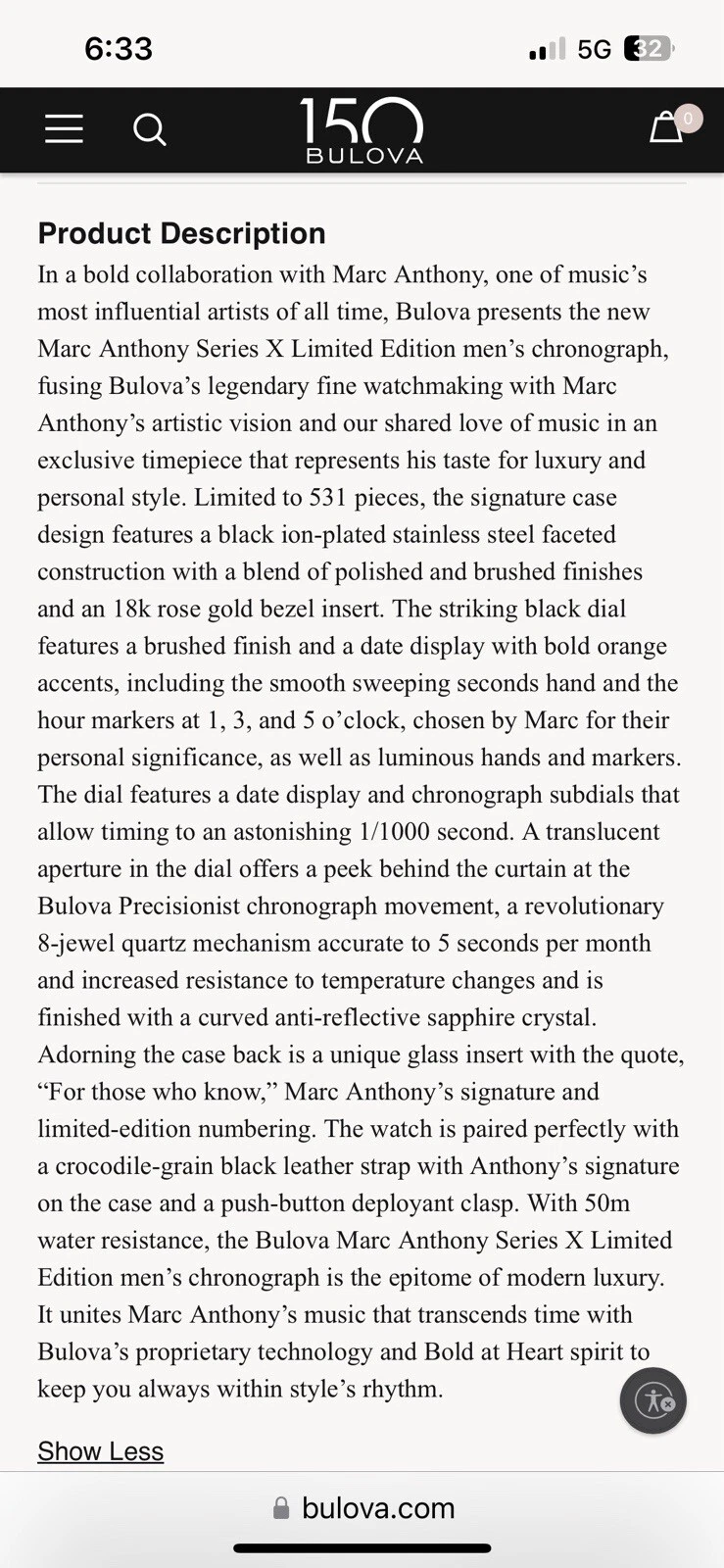 Bulova Marc Anthony Series X Limited Edition Watch
