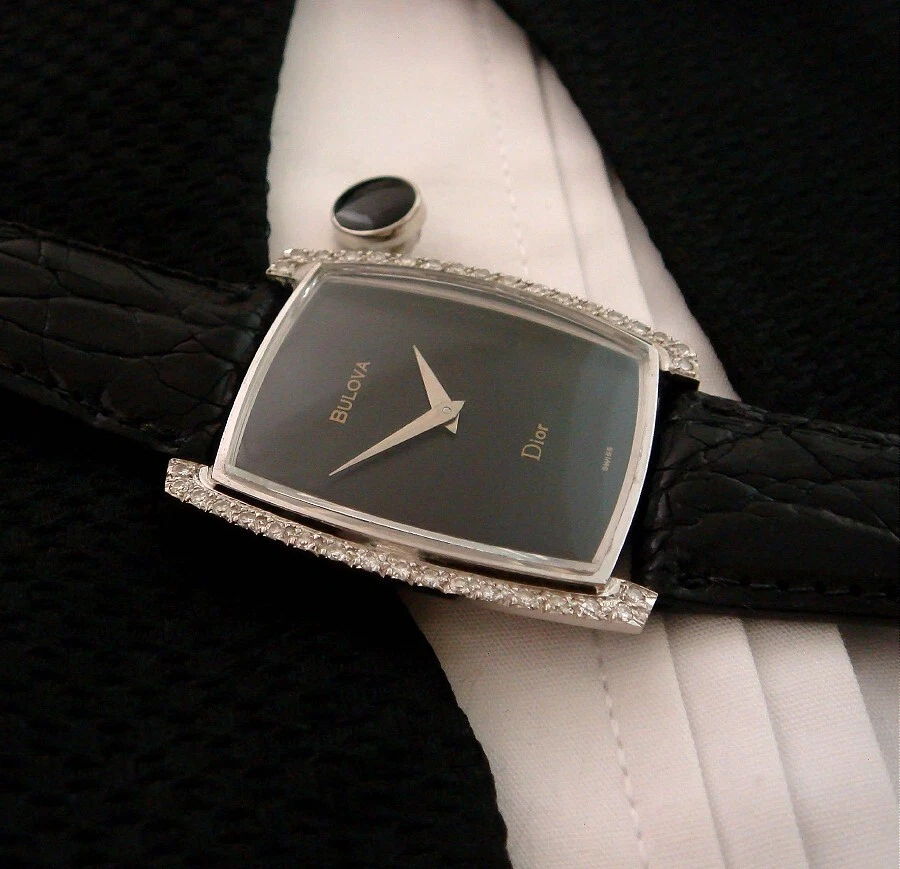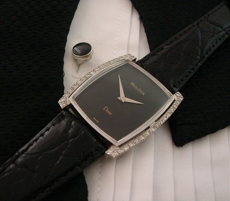 Men's Solid 14k White Gold & Diamonds Bulova Dior Dress Watch w/Box - SERVICED!
