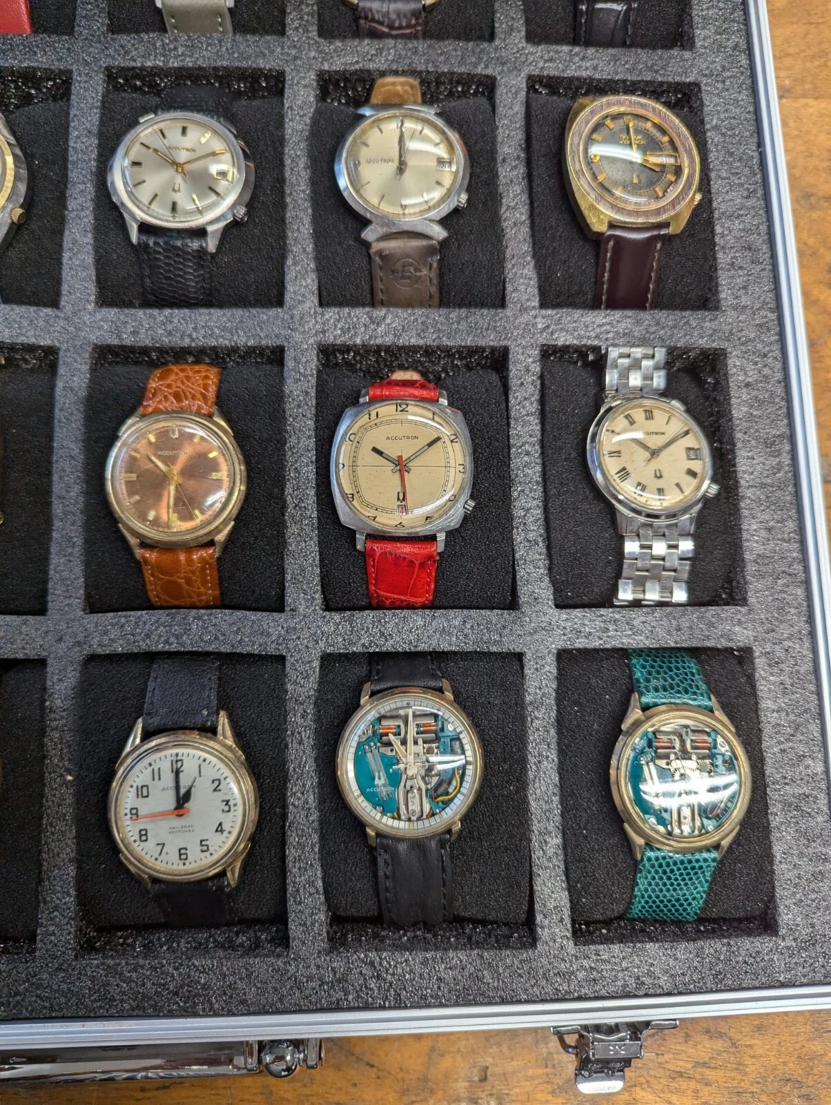 Large Lot of Bulova Accutrons - Spaceviews (both run), Railroad, Wood, etc.