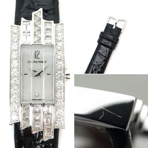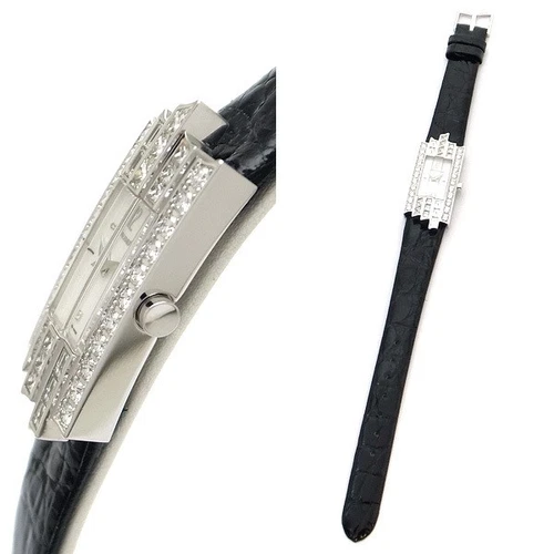 Chaumet Style Rectangle Diamond Bezel K18WG Ladies QZ Shell Dial E0422
