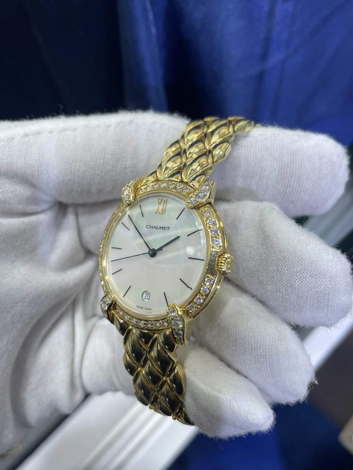 Chaumet Paris Elysees White MOP Dial Solid 18k Gold Swiss 32mm Diamond Watch