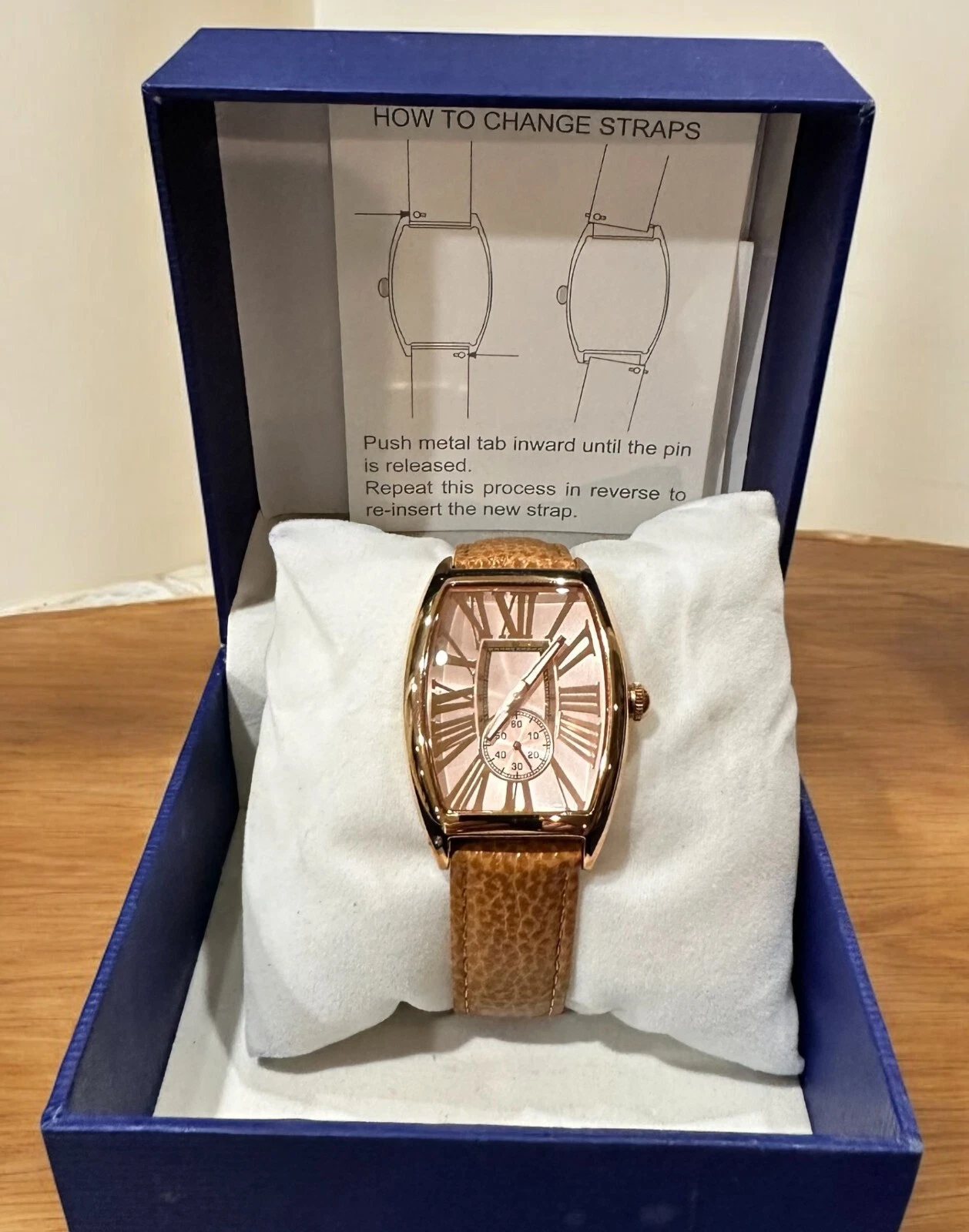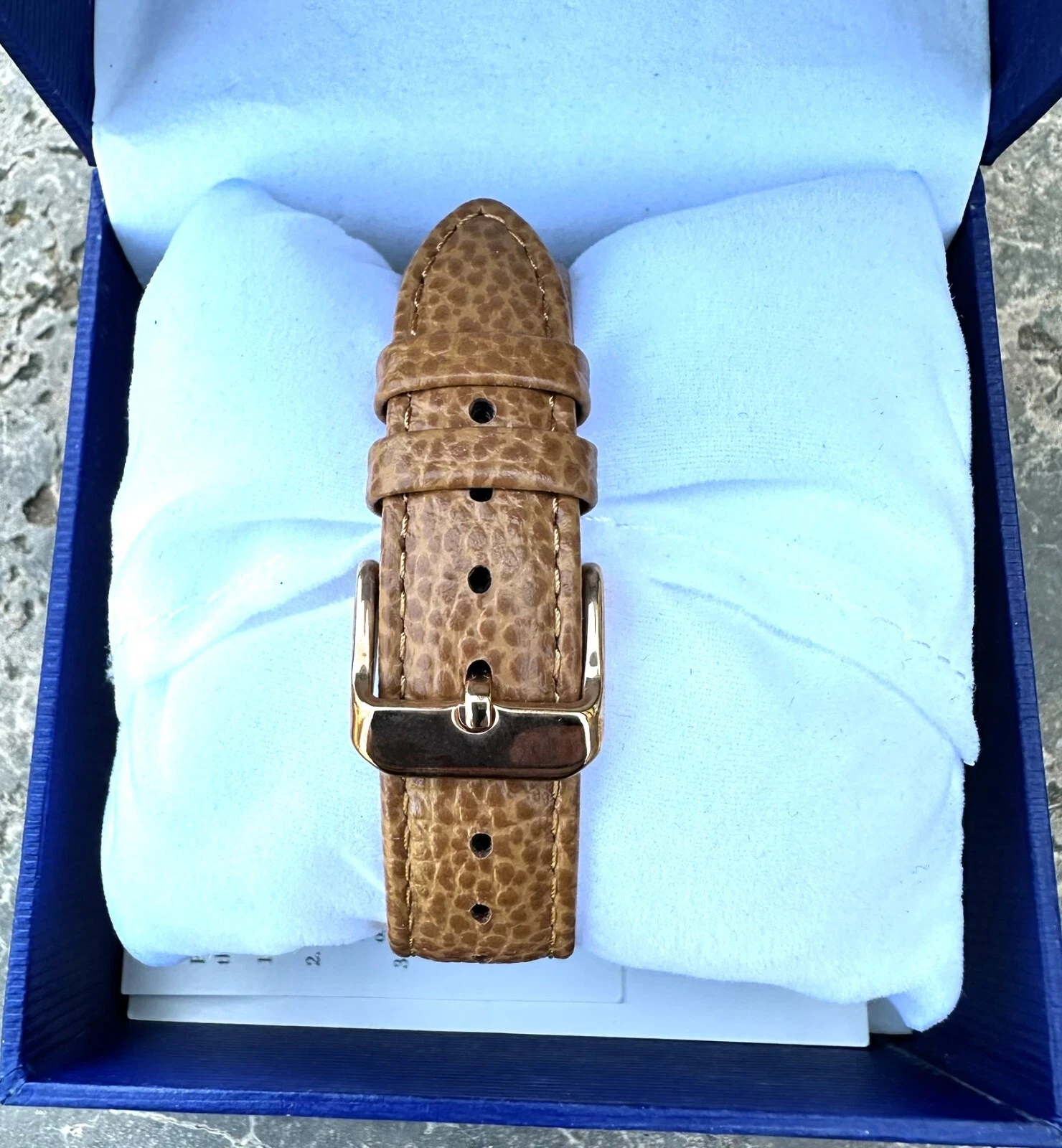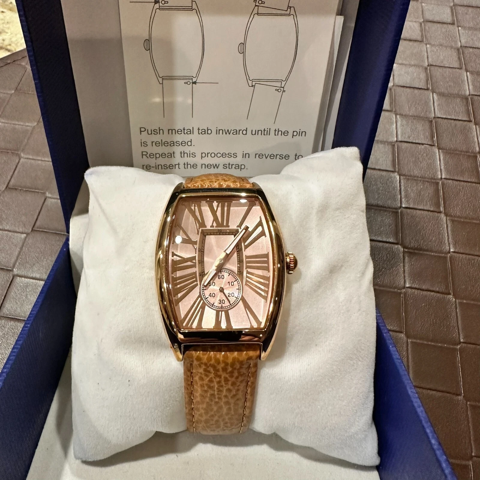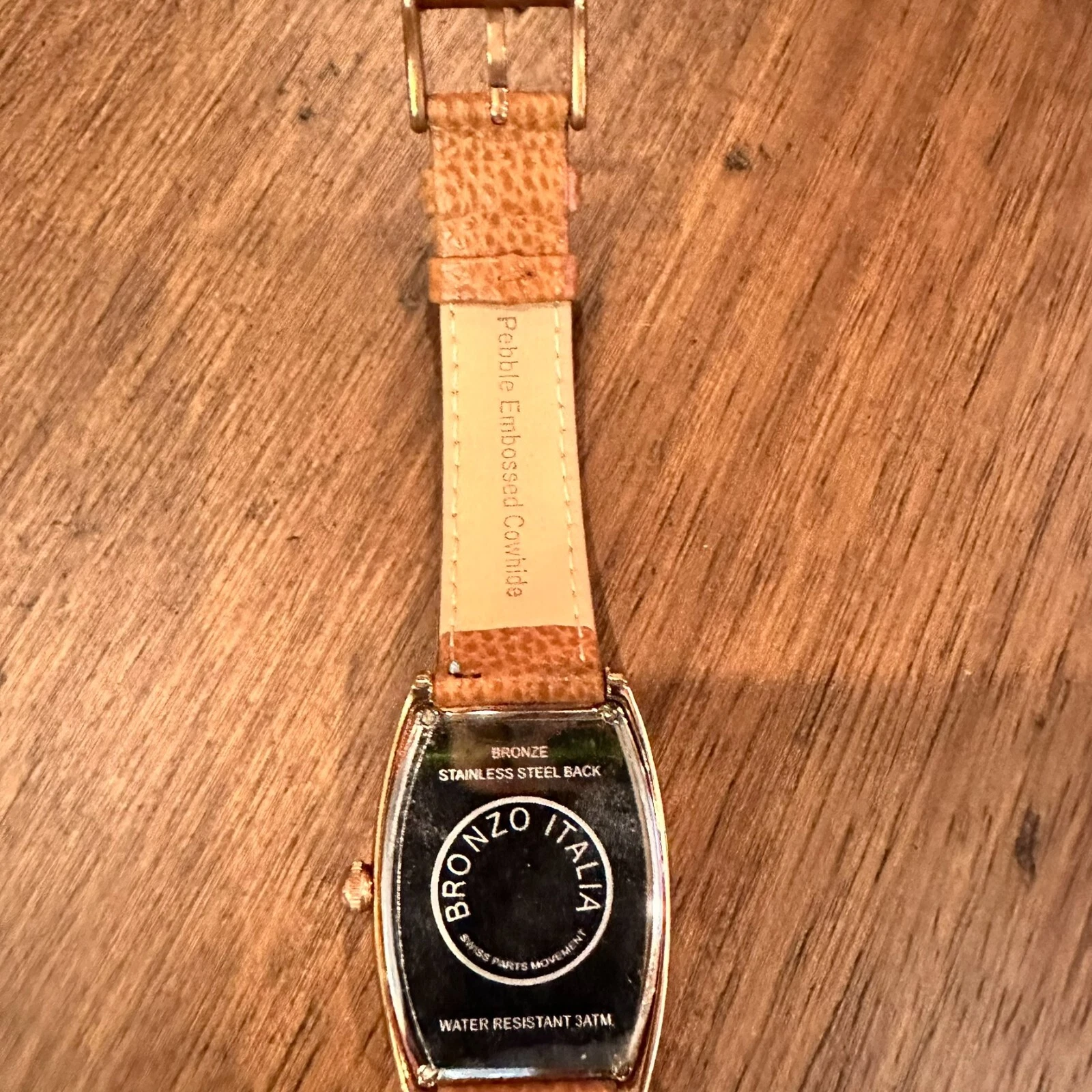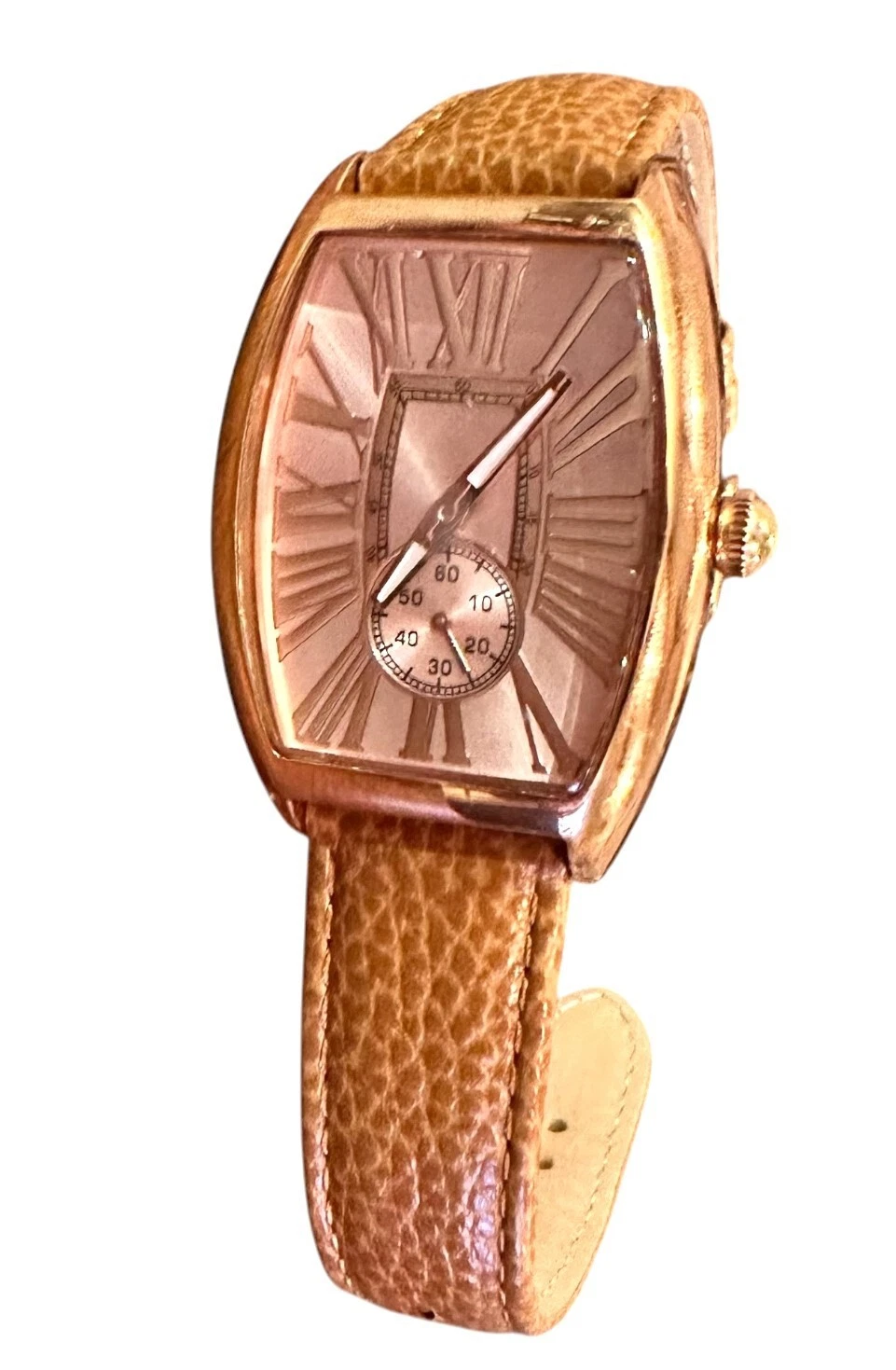BRONZO ITALIA Rose Gold Tone Watch Tan Embossed Leather Band