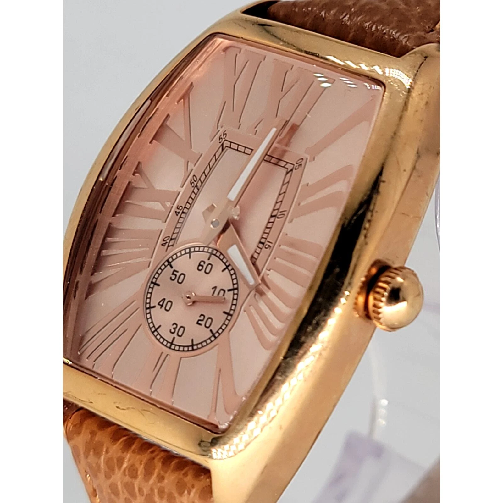 Elegant Rose Gold-Tone Watch with Roman Numerals and Leather Strap Bronzo Italia