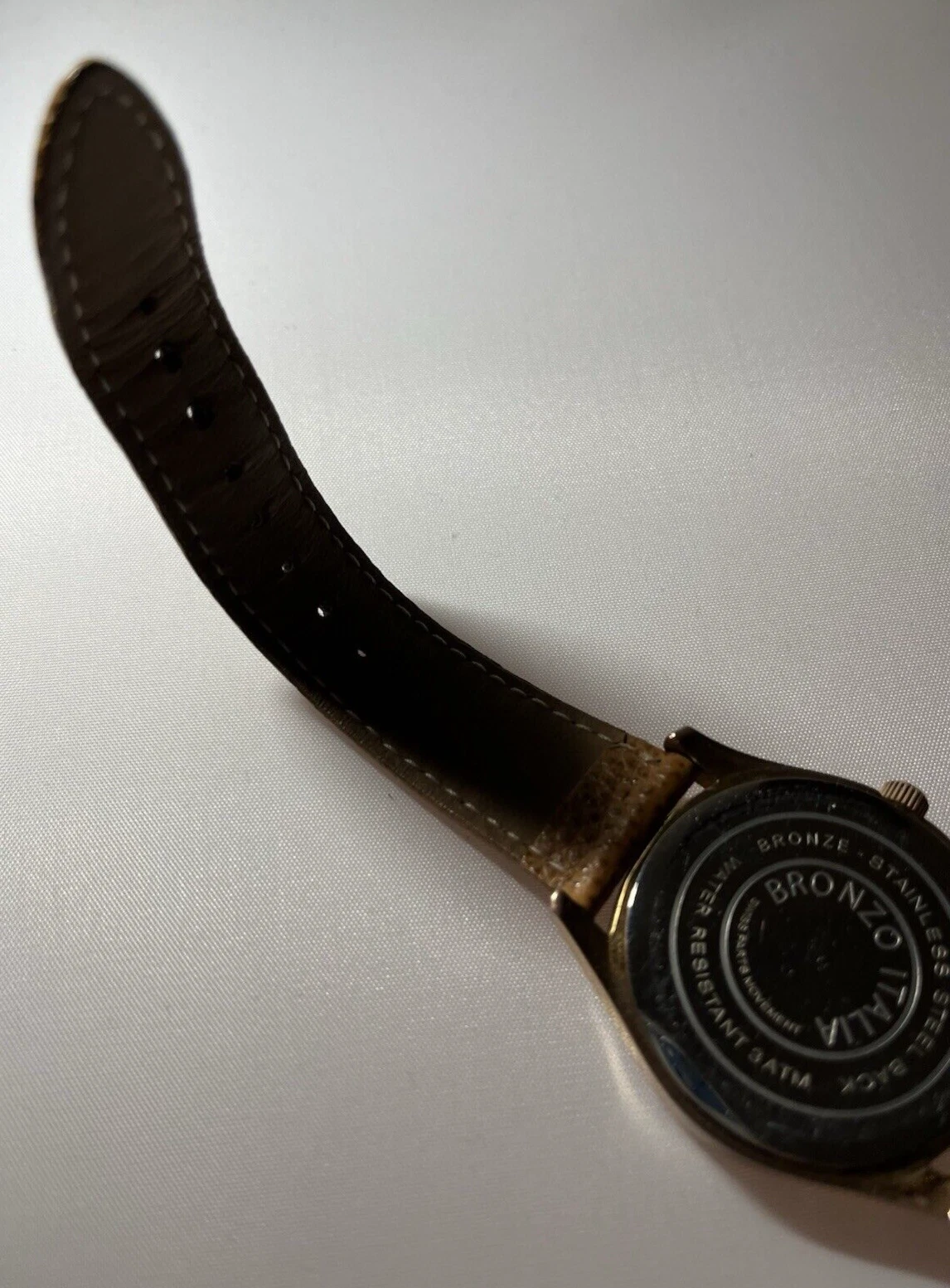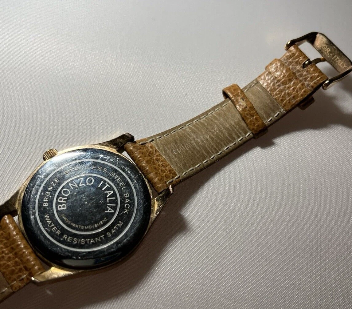 Bronzo Italia Roman Numeral Mans or Unisex Quartz Watch 38mm Runs Great Leather