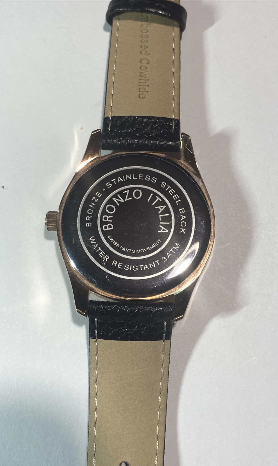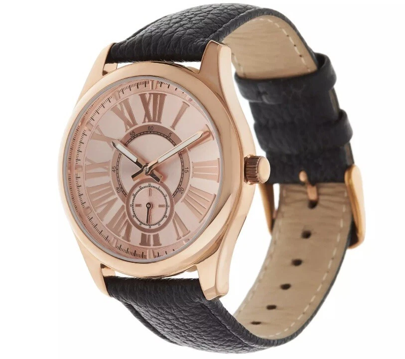 Bronzo Italia Watch Rose-tone Black Genuine Leather Strap QVC NEW TESTED ITALY