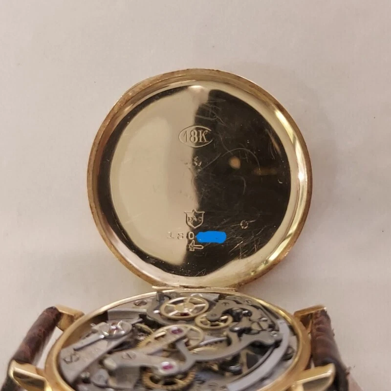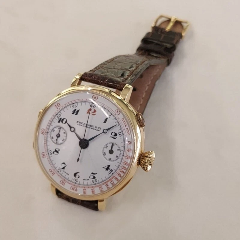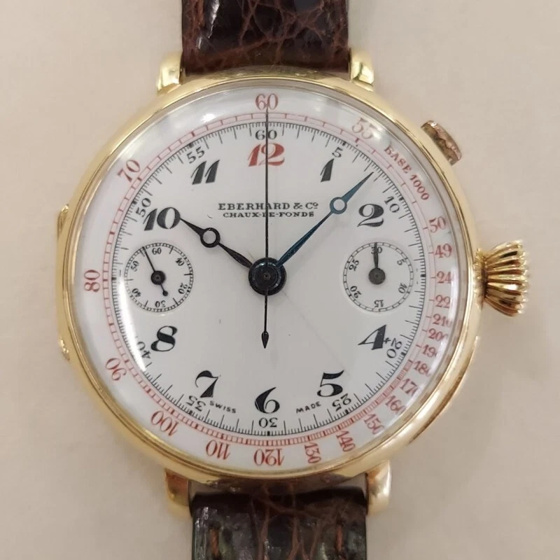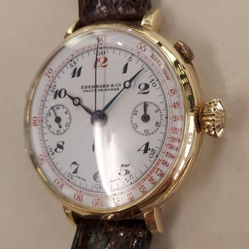 Eberhard Yellow Gold Chronograph Manual Wind Mono Pusher Leather 39mm Square