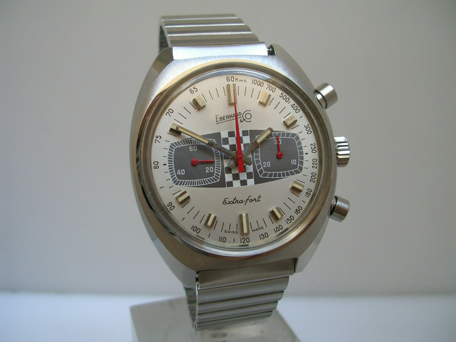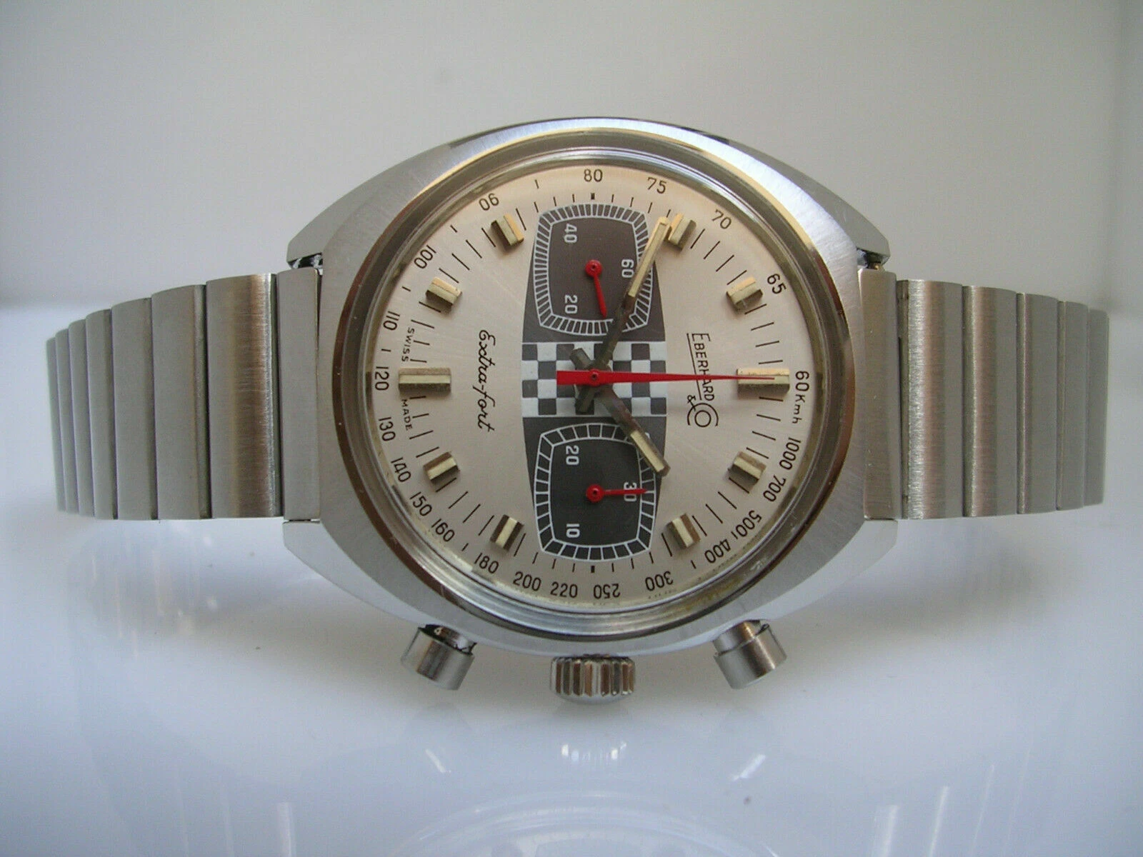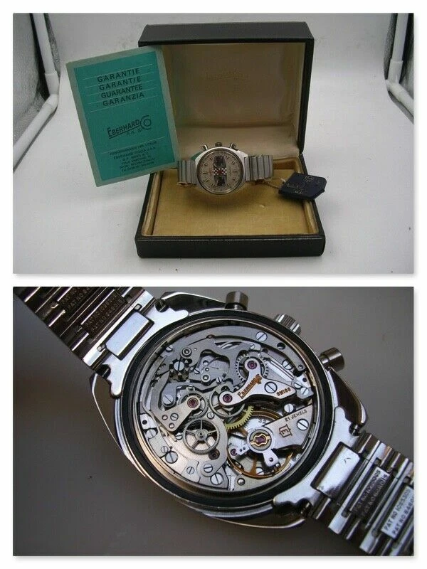 EBERHARD EXTRA-FORT RACING CHRONO 31006 NEW OLD STOCK STEEL BOX&PAPERS 70s WATCH