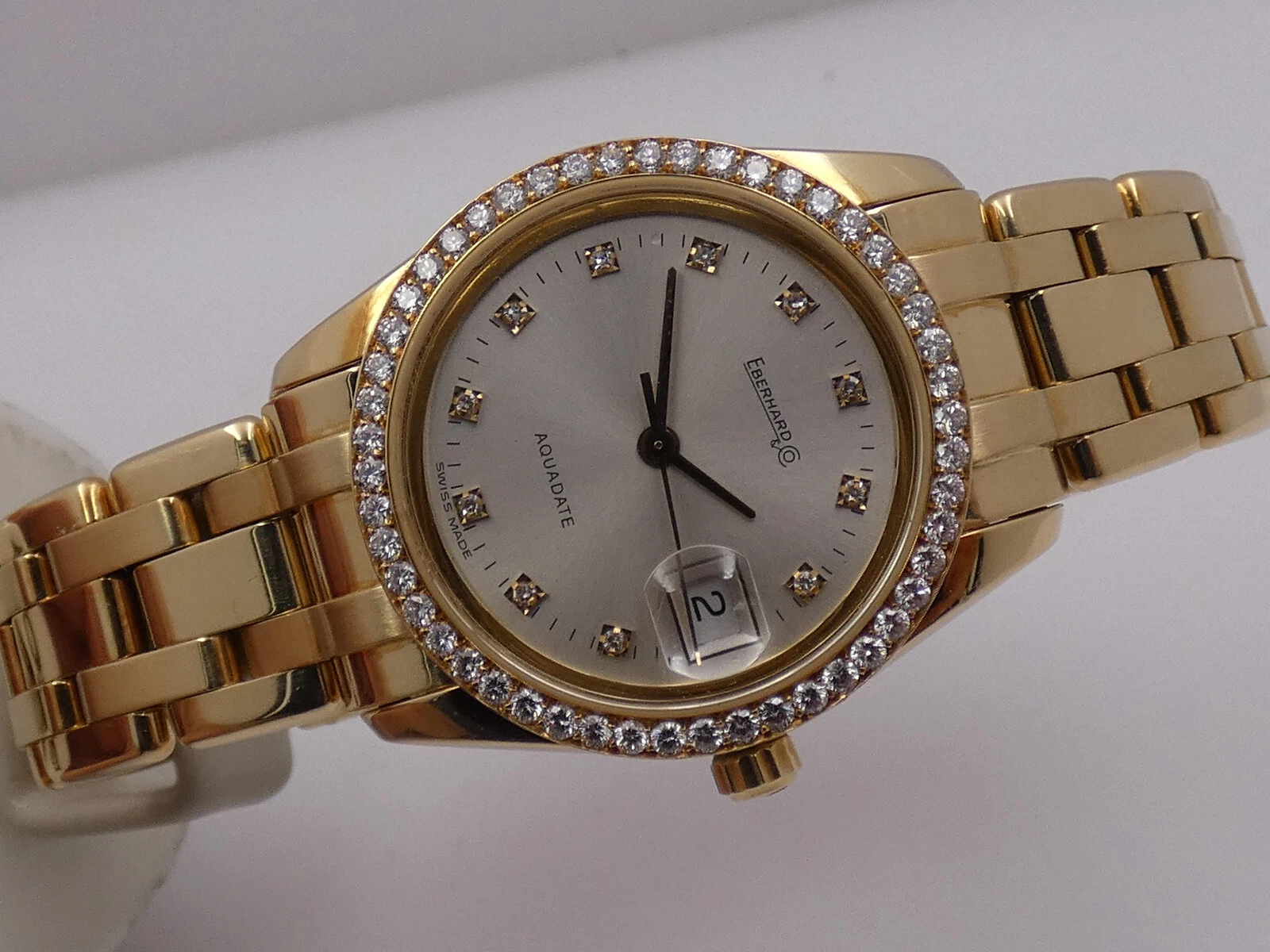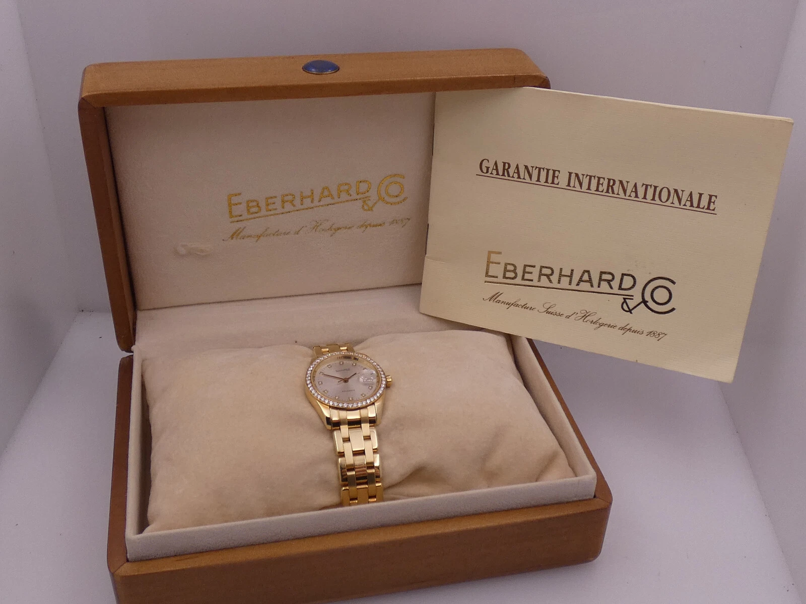 EBERHARD&CO. AQUADATE PEARLMASTER LADY DIAMONDS & GOLD 18KT BOX&PAPERS '98 WATCH