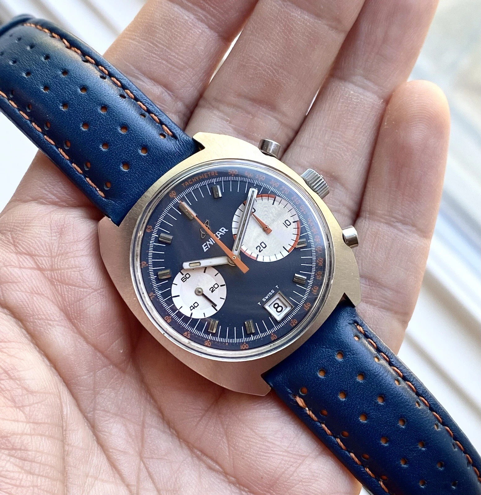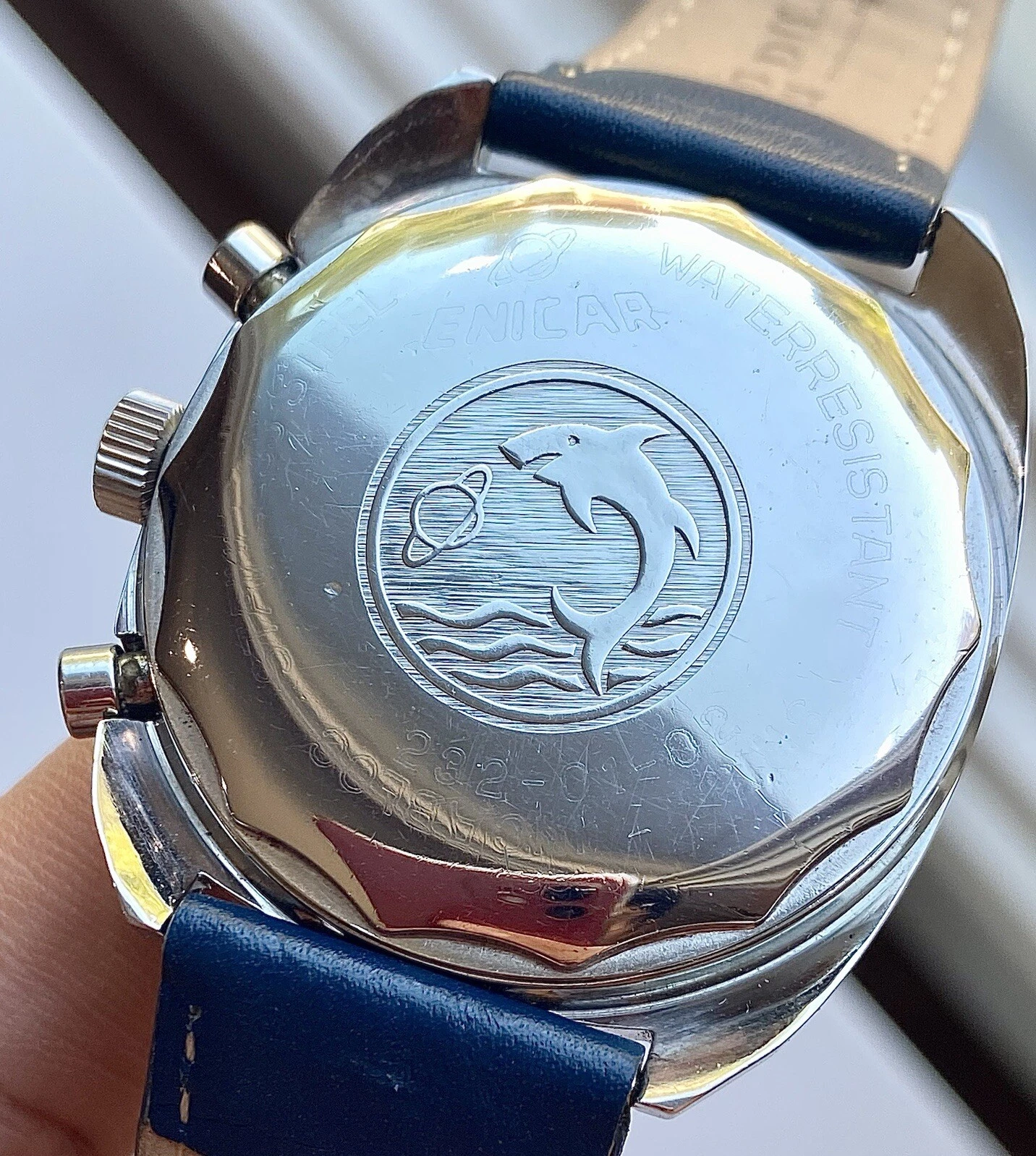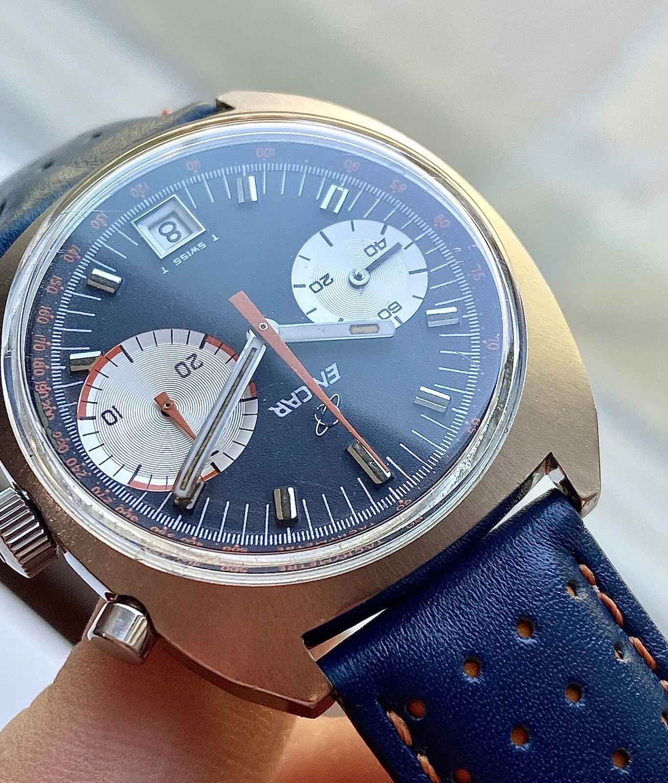 Vintage Enicar Big Eye Chronograph 37mm Stainless Steel Valjoux 232 Mitter