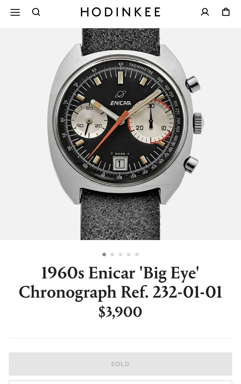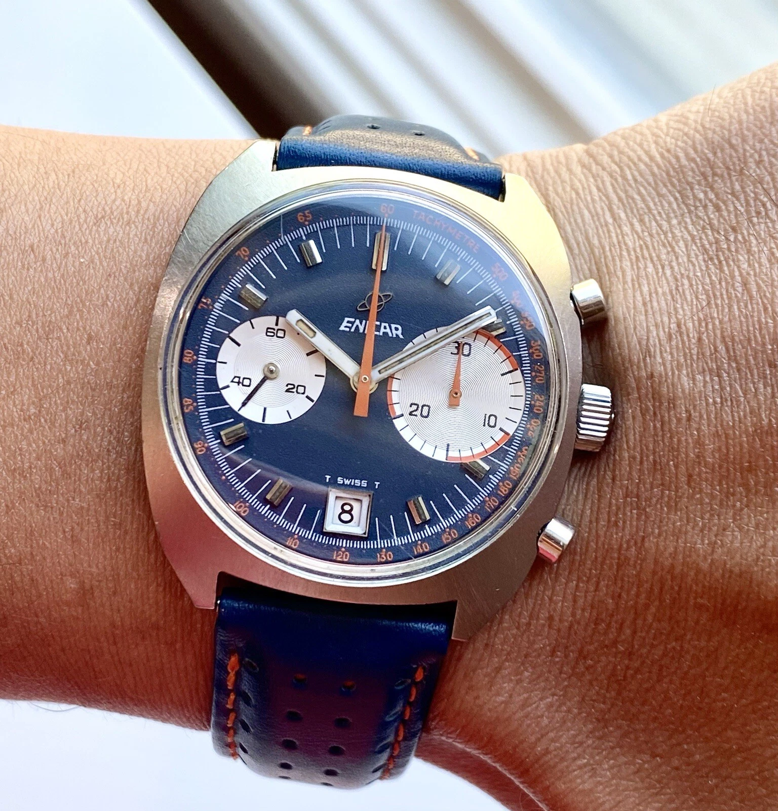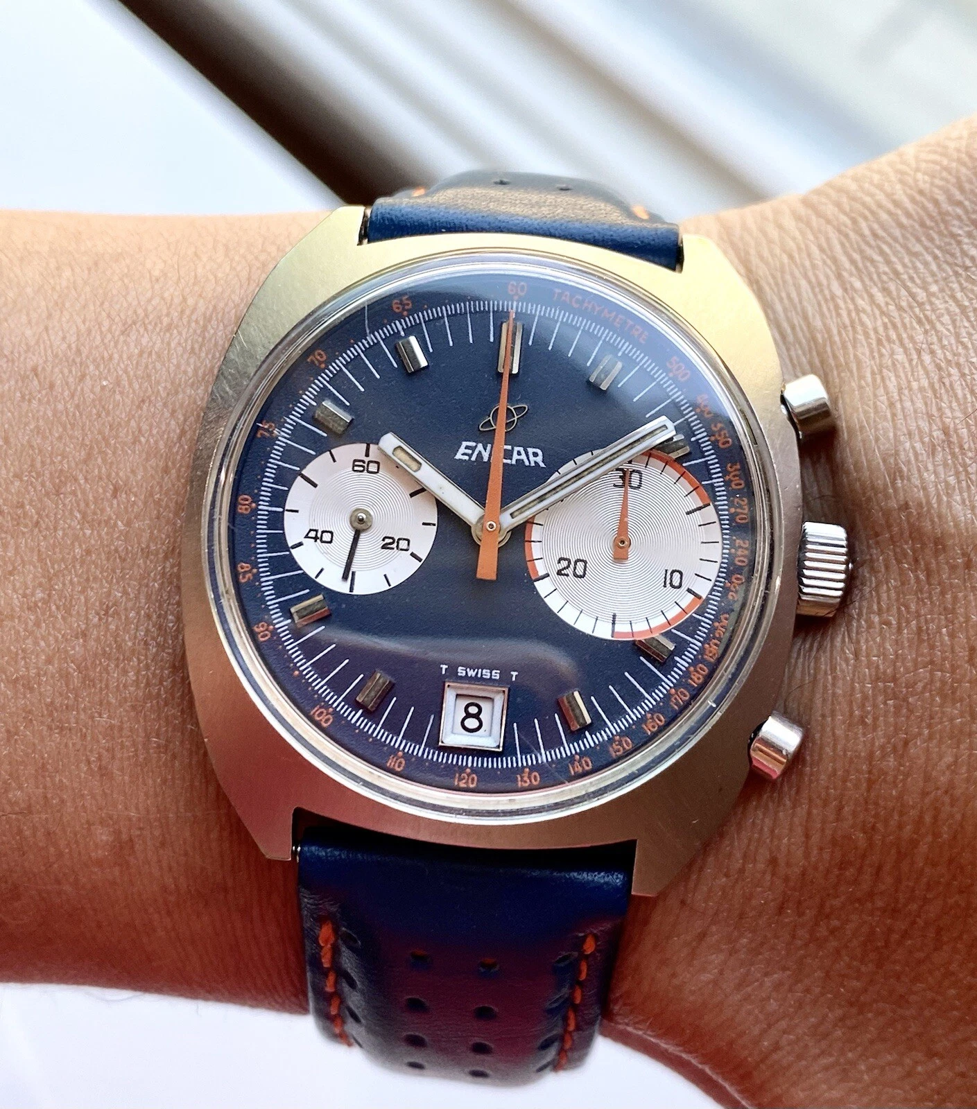 Vintage Enicar Big Eye Chronograph 37mm Stainless Steel Valjoux 232 Mitter