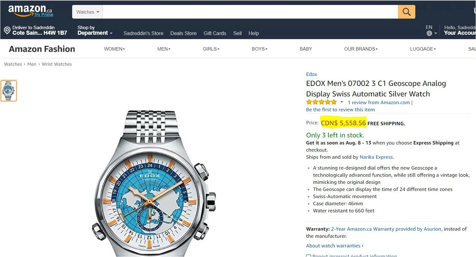 New Rare EDOX GEOSCOPE 070023 C1, Ltd Ed 300 QTY, Automatic Men's (reg $6,250)