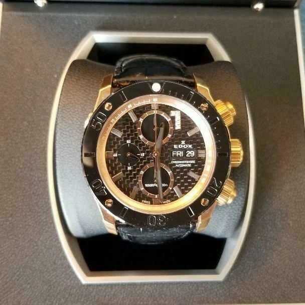 Men's Watch EDOX 130th Anniversary Black x Gold SN 005/130 with Case