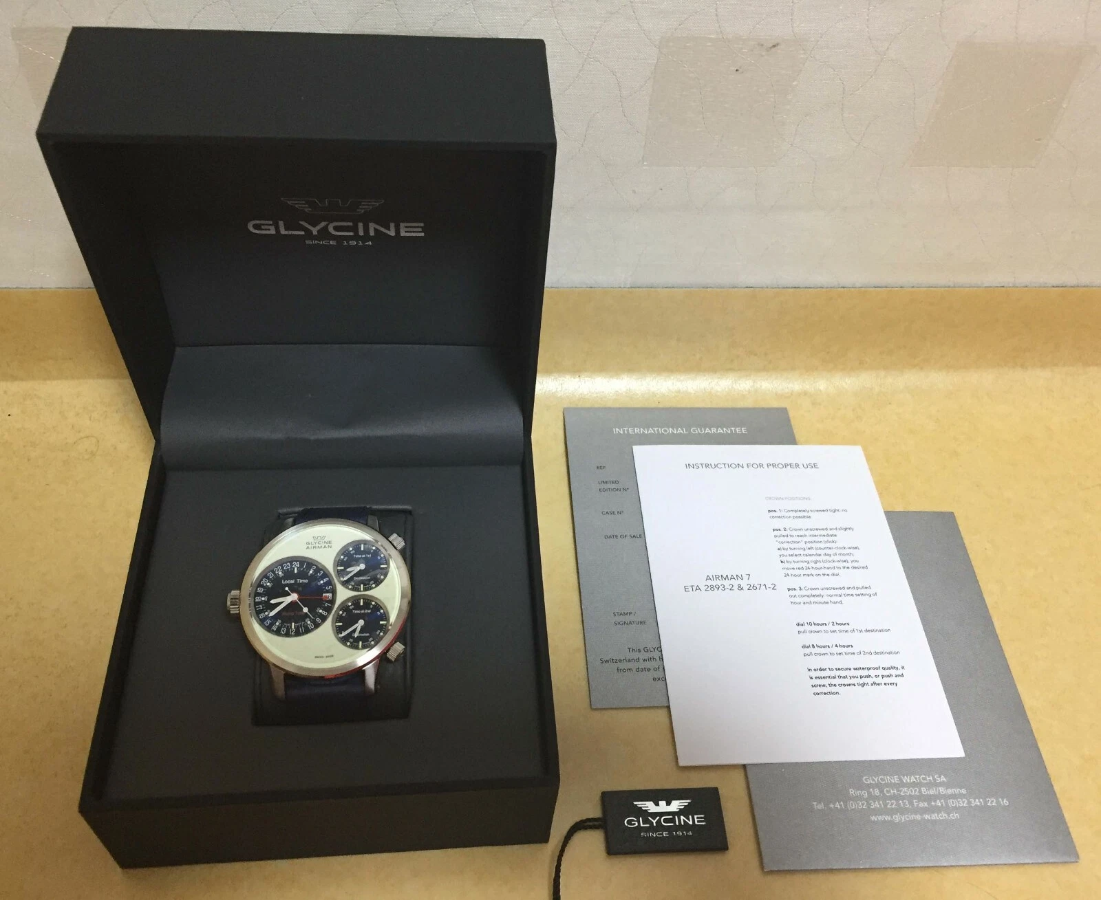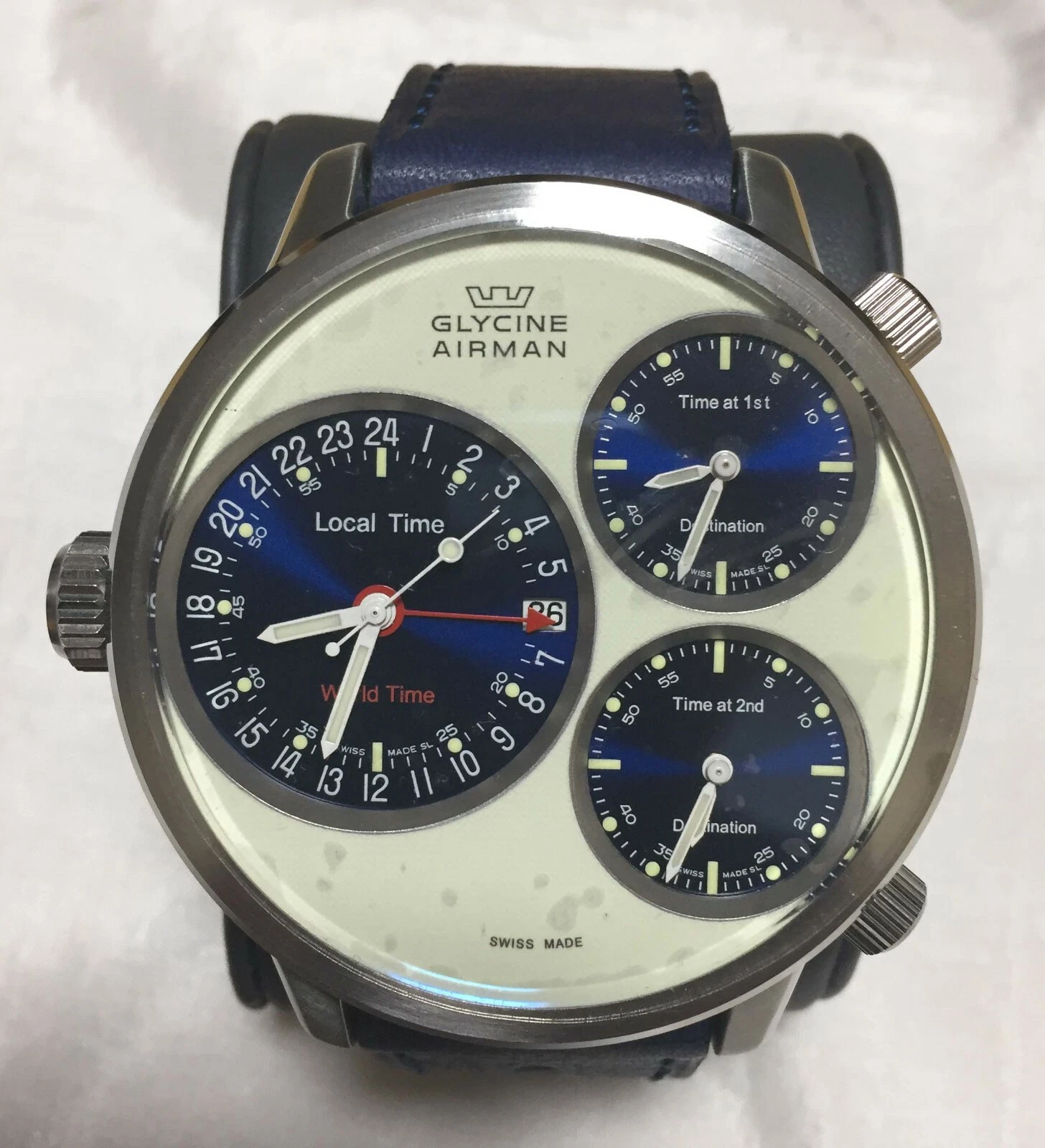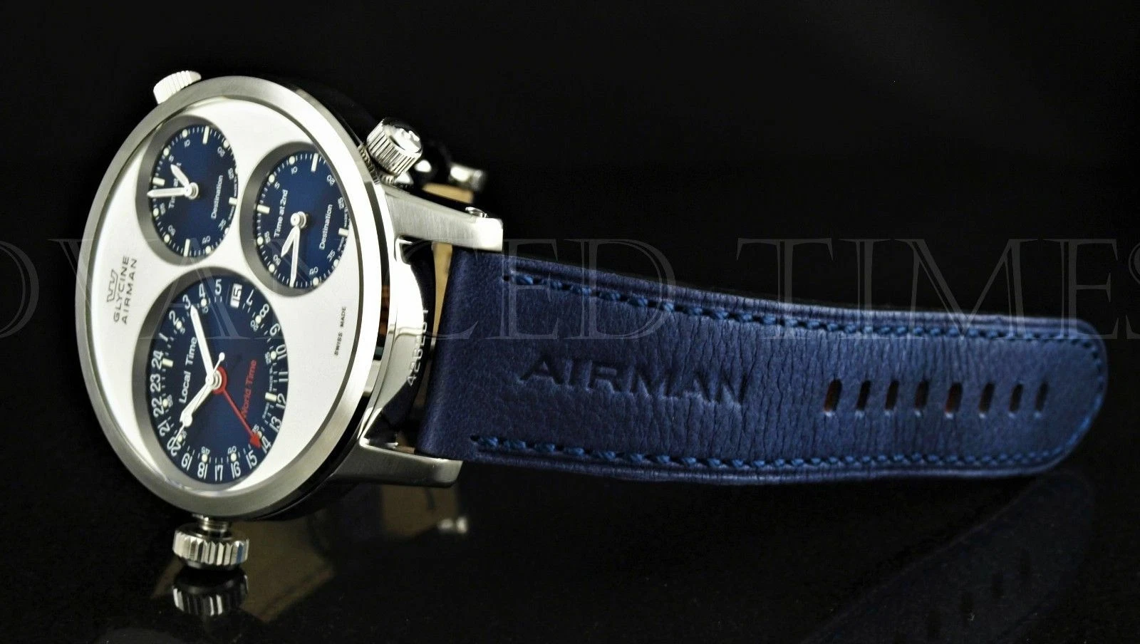 glycine airman 7 watch swiss automatic 3 time zone worldtime