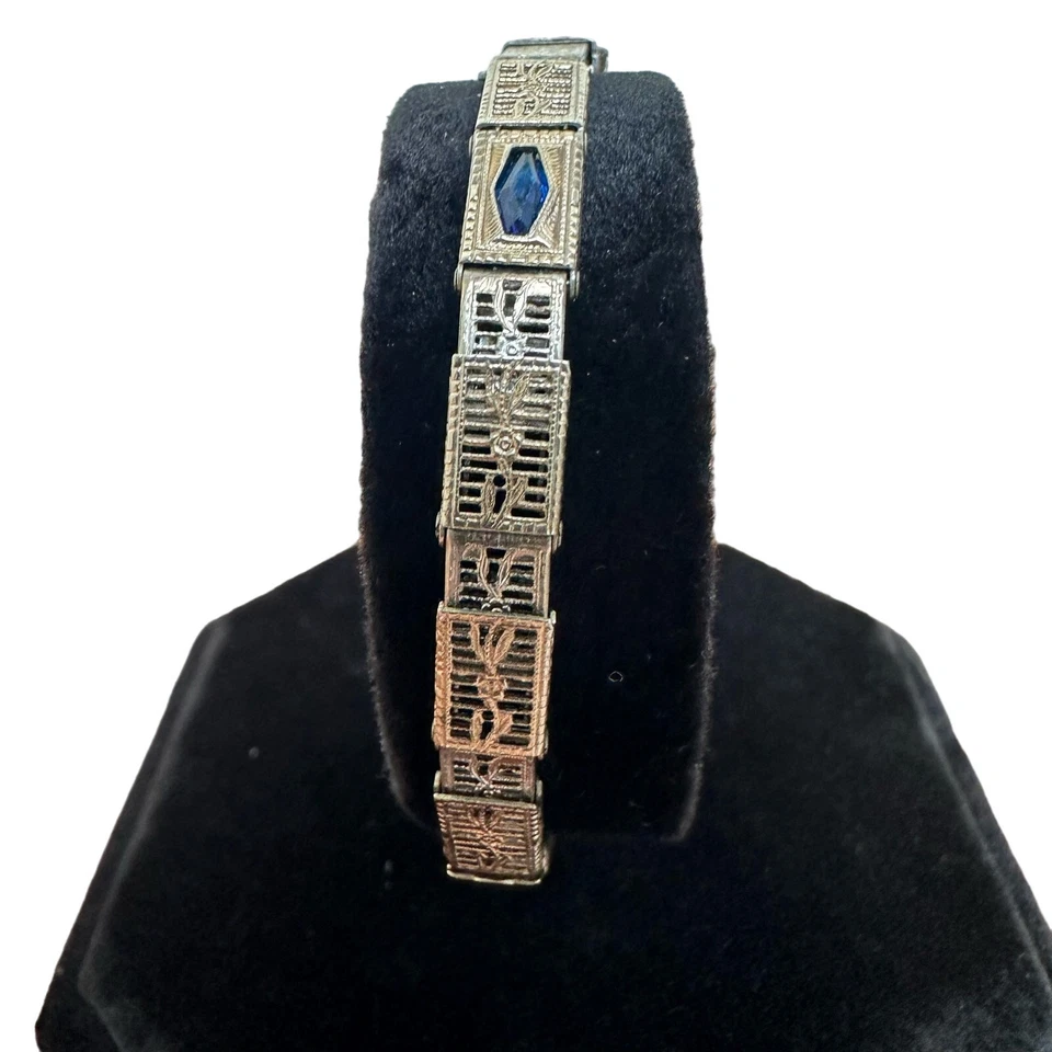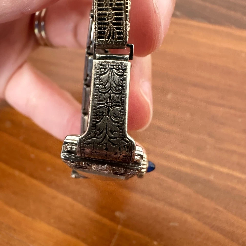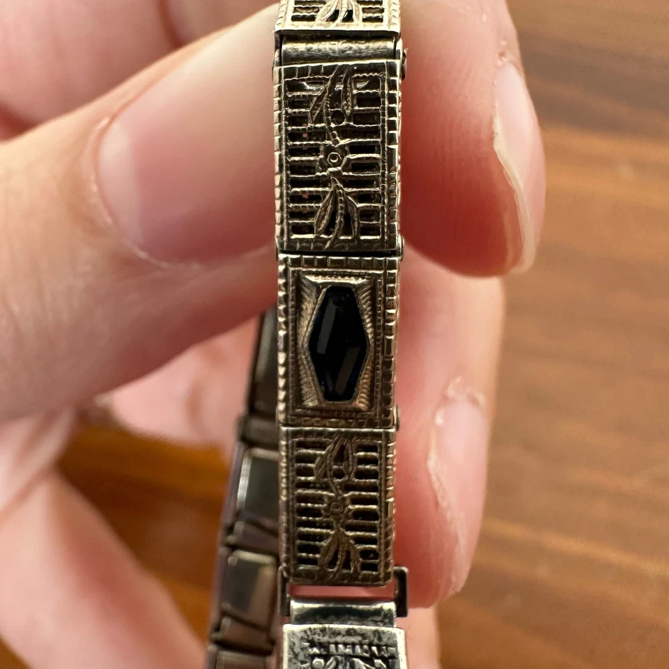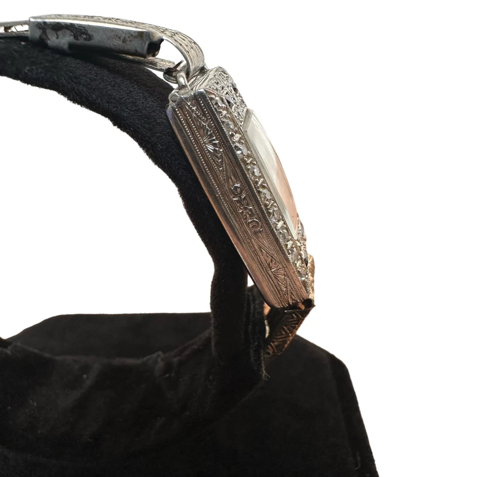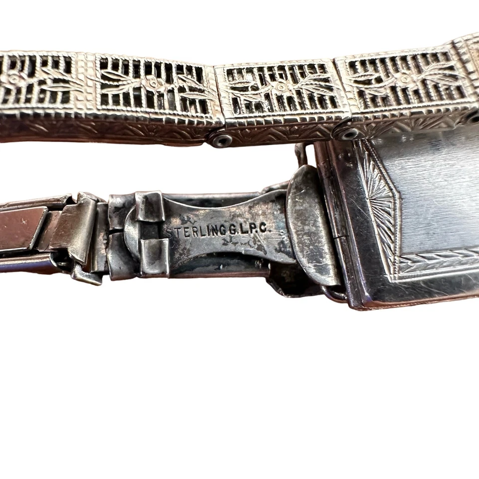 Vintage 1920s Glycine Platinum Diamond & Sapphire Watch - Sterling Silver Band