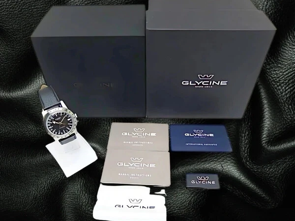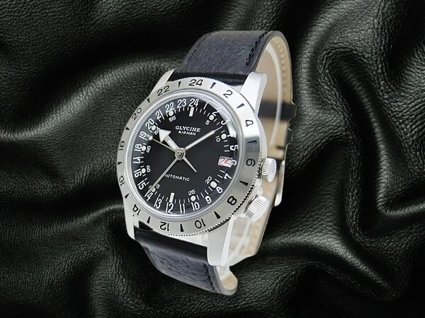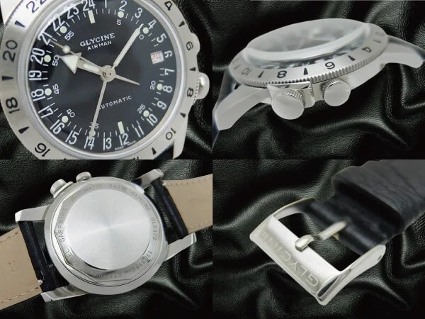 GLYCINE AIRMAN No.1 GMT 36 Ref.GL0370 SS Black Dial Strap Automatic BOX & Papers