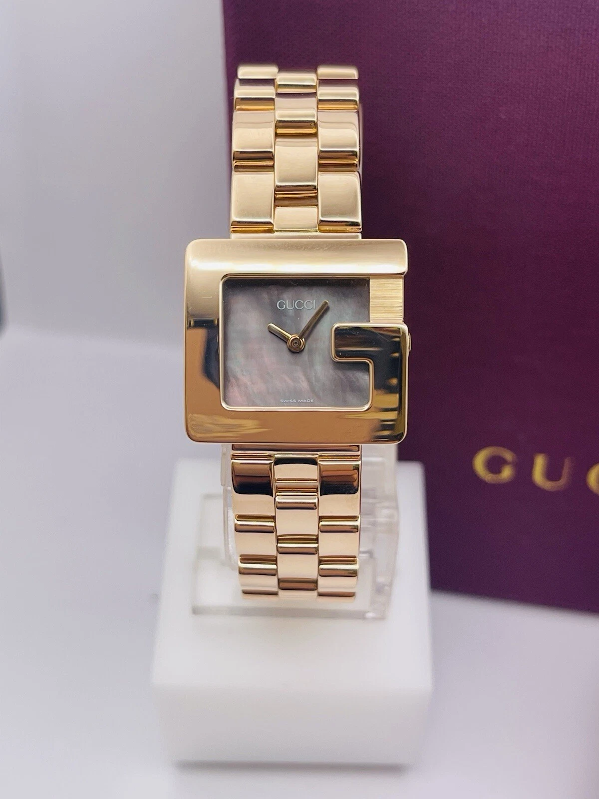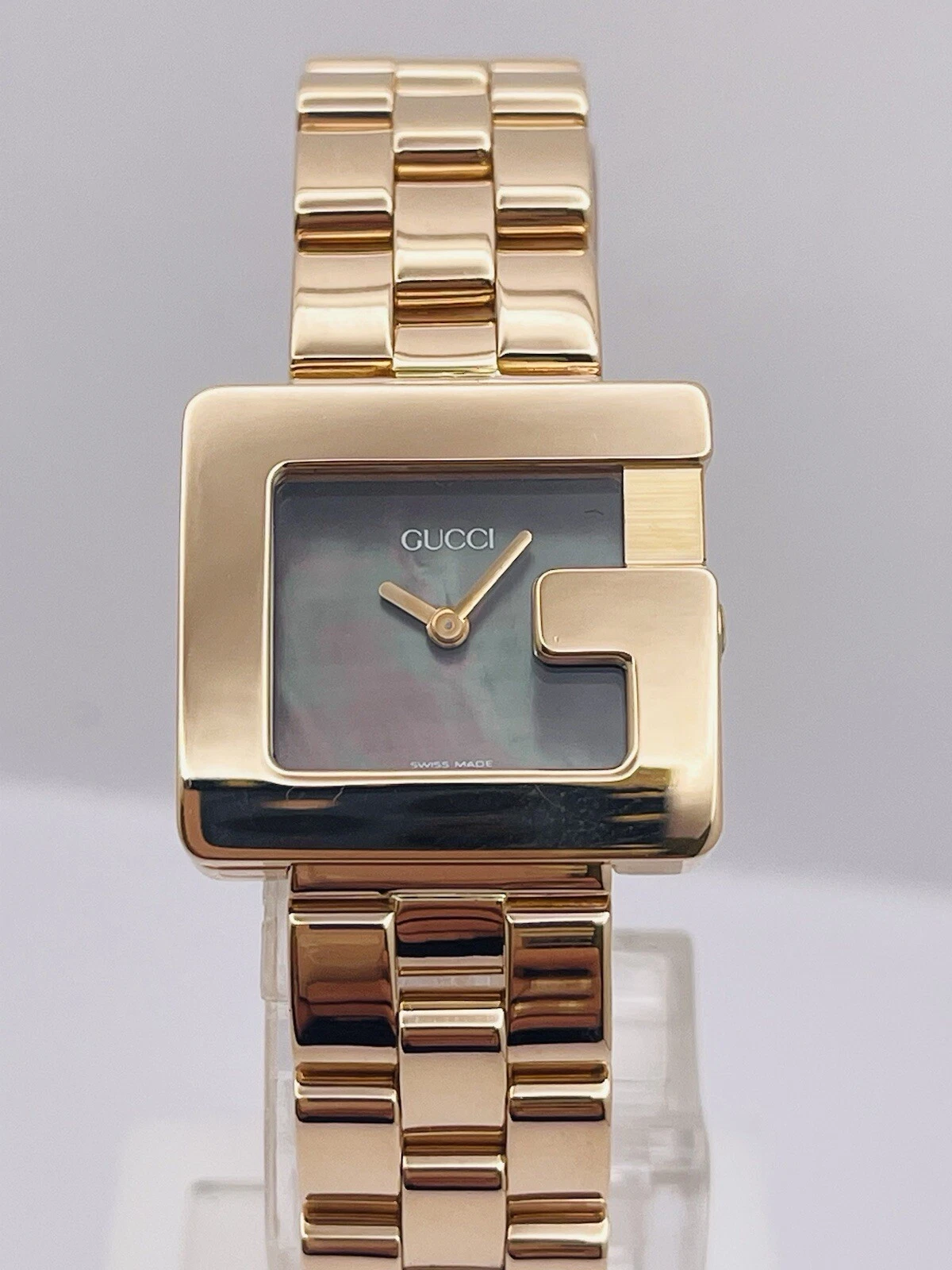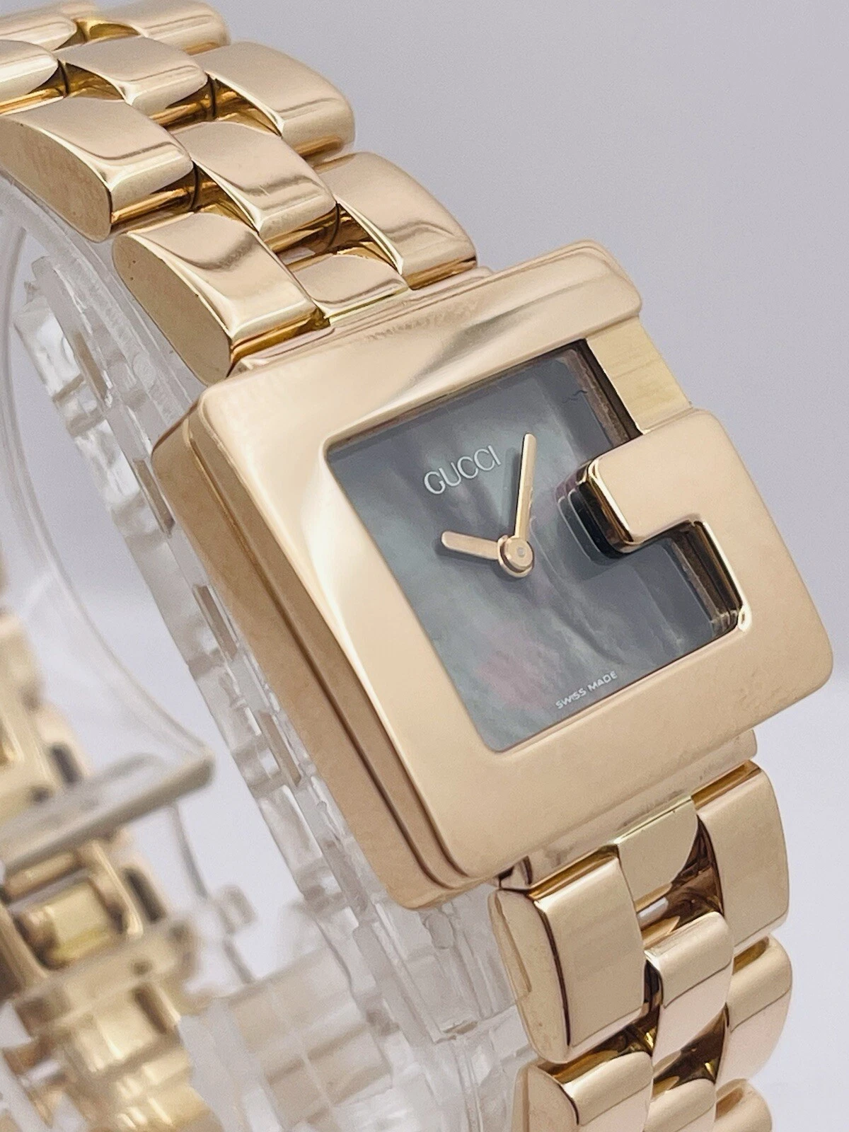 GUCCI 750/18k Rose Gold GUCCI3600L Black Shell Dial 23MM Quartz Watch 6" RARE!!!