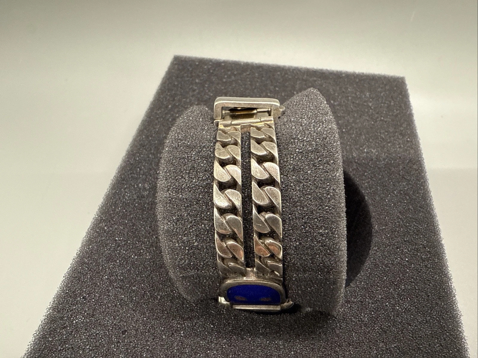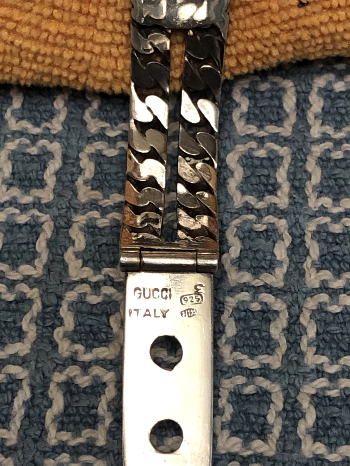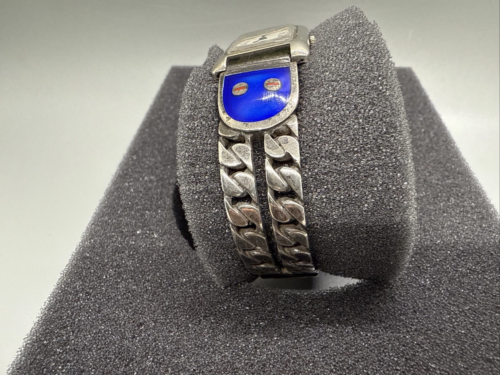 GUCCI BLUE ENAMEL Watch BRACELET Silver 2.1 Oz Braid Vintage Belt Authentic