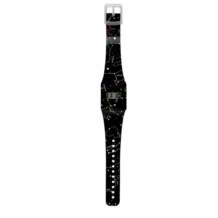 Black tyvek case and band. Digital dial. Dial Type: digital. Quartz movement. Solid case back. Square case shape, case size: 25 mm. Buckle clasp. Functions: hour, minute, second. Constellation Series. Sport watch style. PappWatch Constellation Paperlike Quartz Digital Ladies Watch ILP21745.