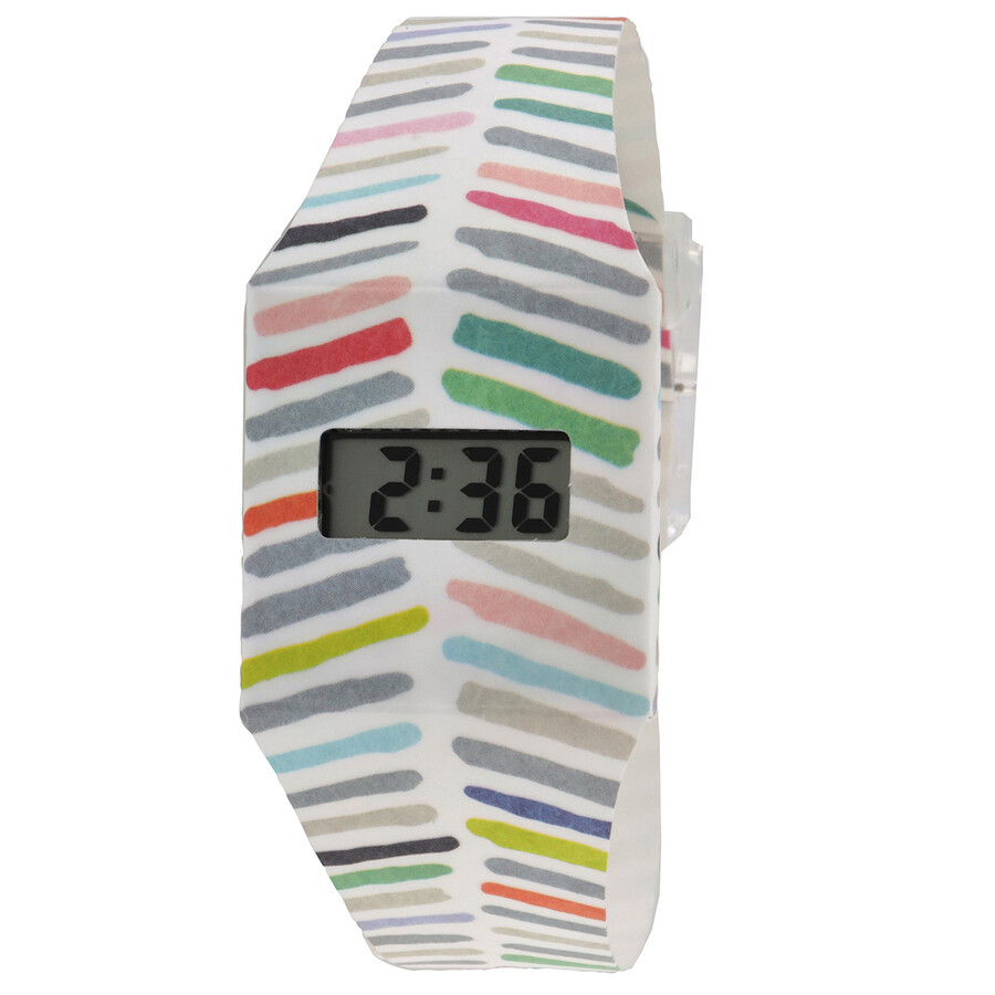 Multicolored tyvek case and band. Digital dial. Dial Type: digital. Quartz movement. Solid case back. Square case shape, case size: 25 mm. Buckle clasp. Functions: hour, minute, second. Zag Zig Series. PappWatch Zag Zig Paperlike Quartz Digital Unisex Watch ILP27921.