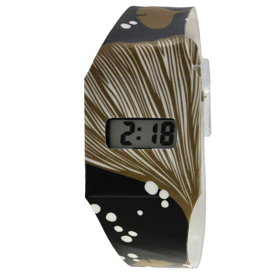 Multicolored tyvek case with a black tyvek band. Digital dial. Dial Type: digital. Quartz movement. Solid case back. Square case shape, case size: 25 mm. Buckle clasp. Functions: hour, minute, second. Ginko Series. Sport watch style. PappWatch Ginko Paperlike Quartz Digital Unisex Watch PU10463.