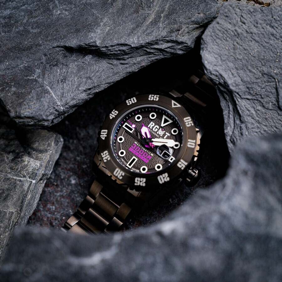 The Ohio Automatic takes its name from the awe-inspiring might and resilience of the US Navy’s OHIO class nuclear-powered ballistic submarines, and are the largest submarines ever to serve the Navy.From cutting-edge marine-grade engineering to ample luminosity, and a scratch-resistant sapphire lens - the watch is truly a feat of watchmaking designed to test the limits. Black stainless steel case and bracelet. Uni-directional rotating black stainless steel bezel. Grey dial with silver-tone hands and Arabic numeral & index hour markers. Minute markers around the outer rim. Dial Type: Analog. Luminescent hands and markers. Date display at the 3 o'clock position. Seiko - NH35 automatic movement. Scratch resistant sapphire crystal. Screw down crown. Solid case back. Round case shape, case size: 45 mm, case thickness: 13 mm. Band width: 24 mm, band length: 8 inches. Fold over clasp. Water resistant at 3000 meters / 10000 feet. Functions: date, hour, minute, second. Ohio Series. Dive watch style. RGMT Ohio Grey Dial Men's Watch RG-8034-0F.