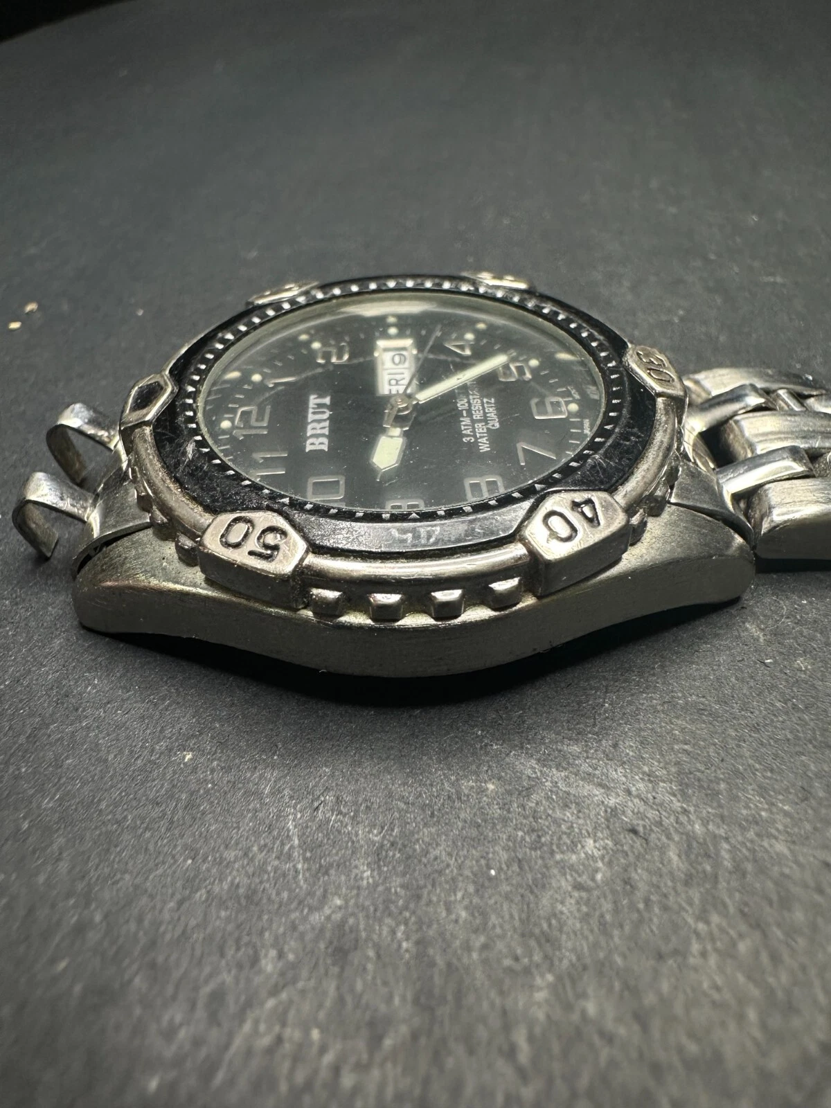 Vintage Men's Brut Day/Date Analog Watch - Untested May Need Battery/Repair