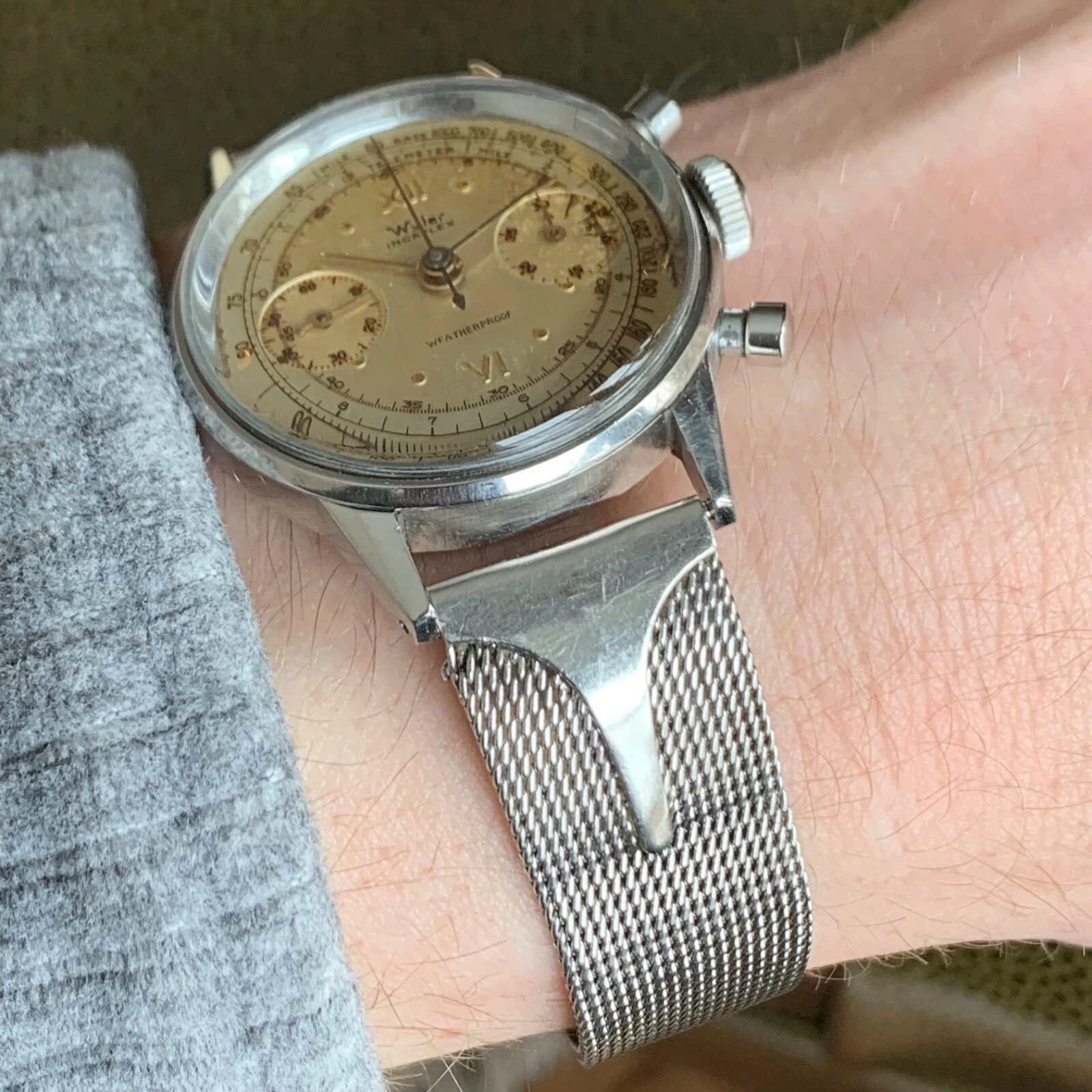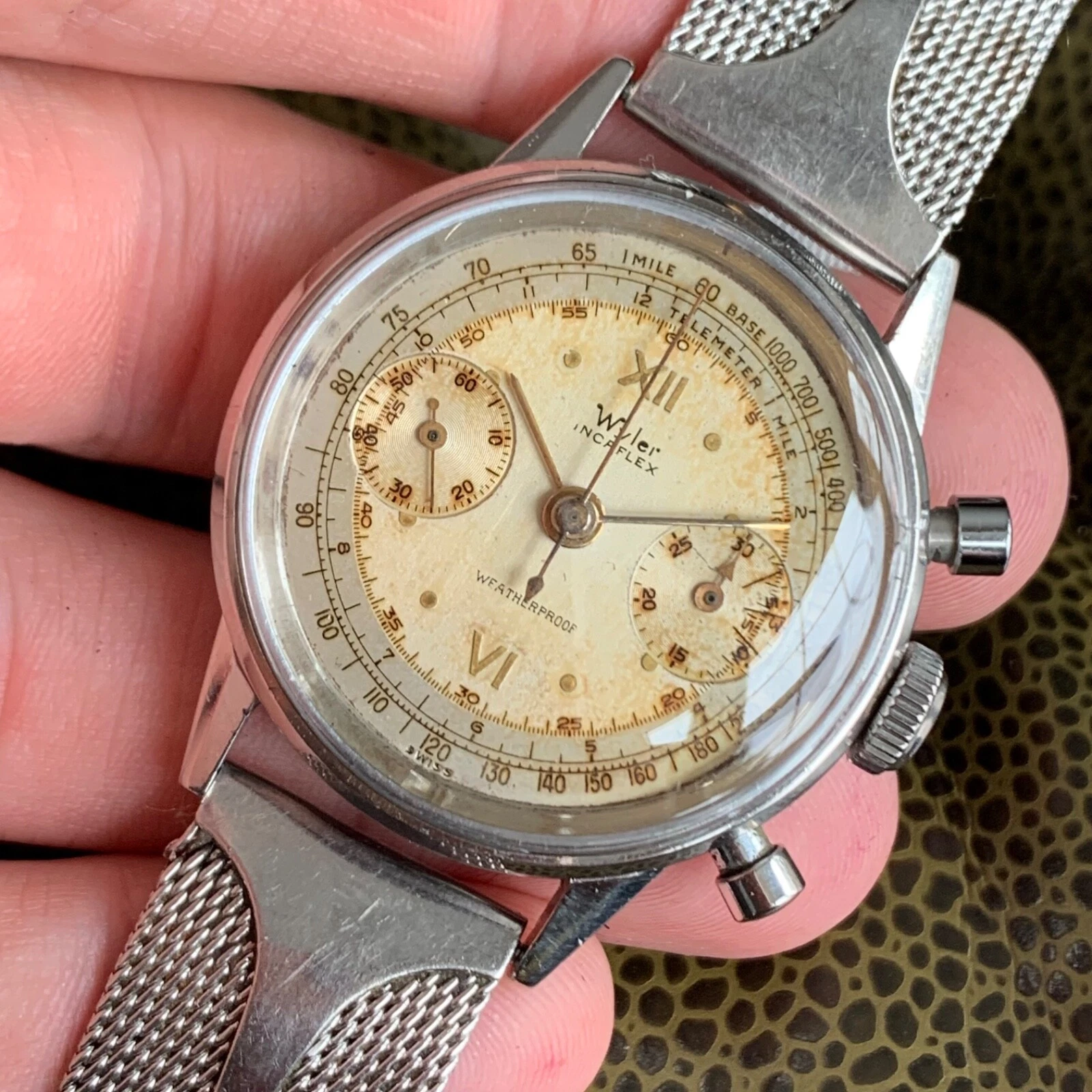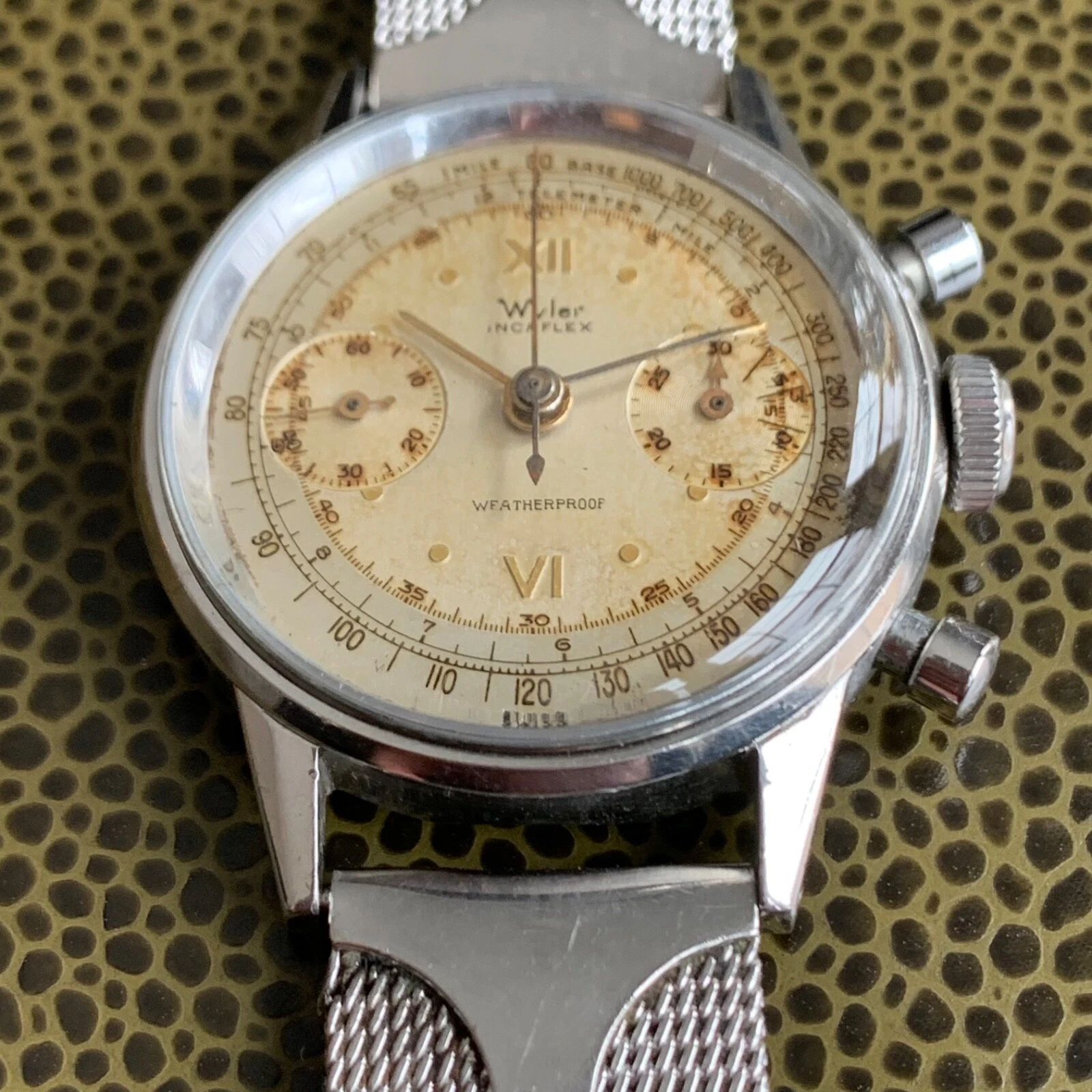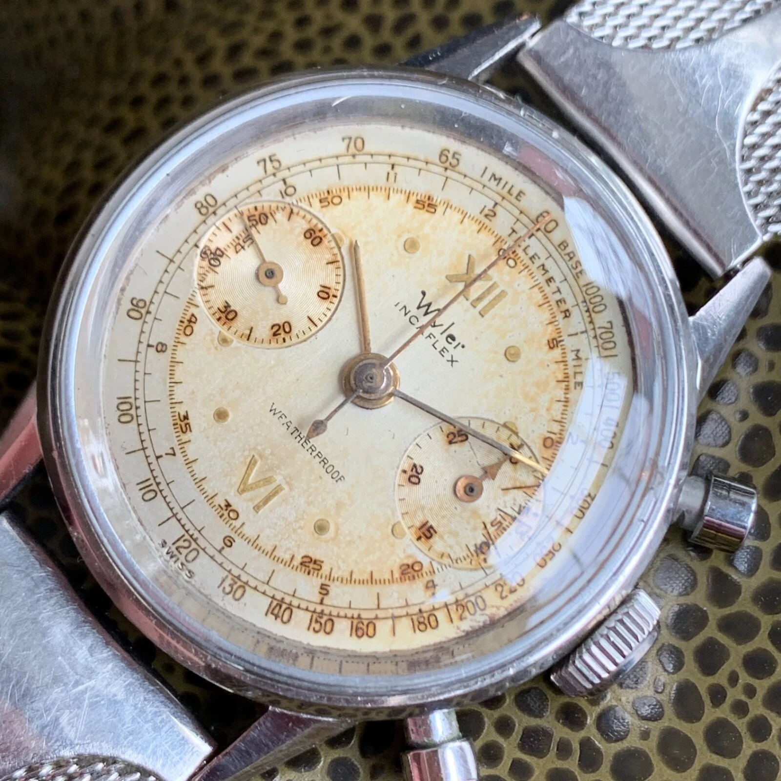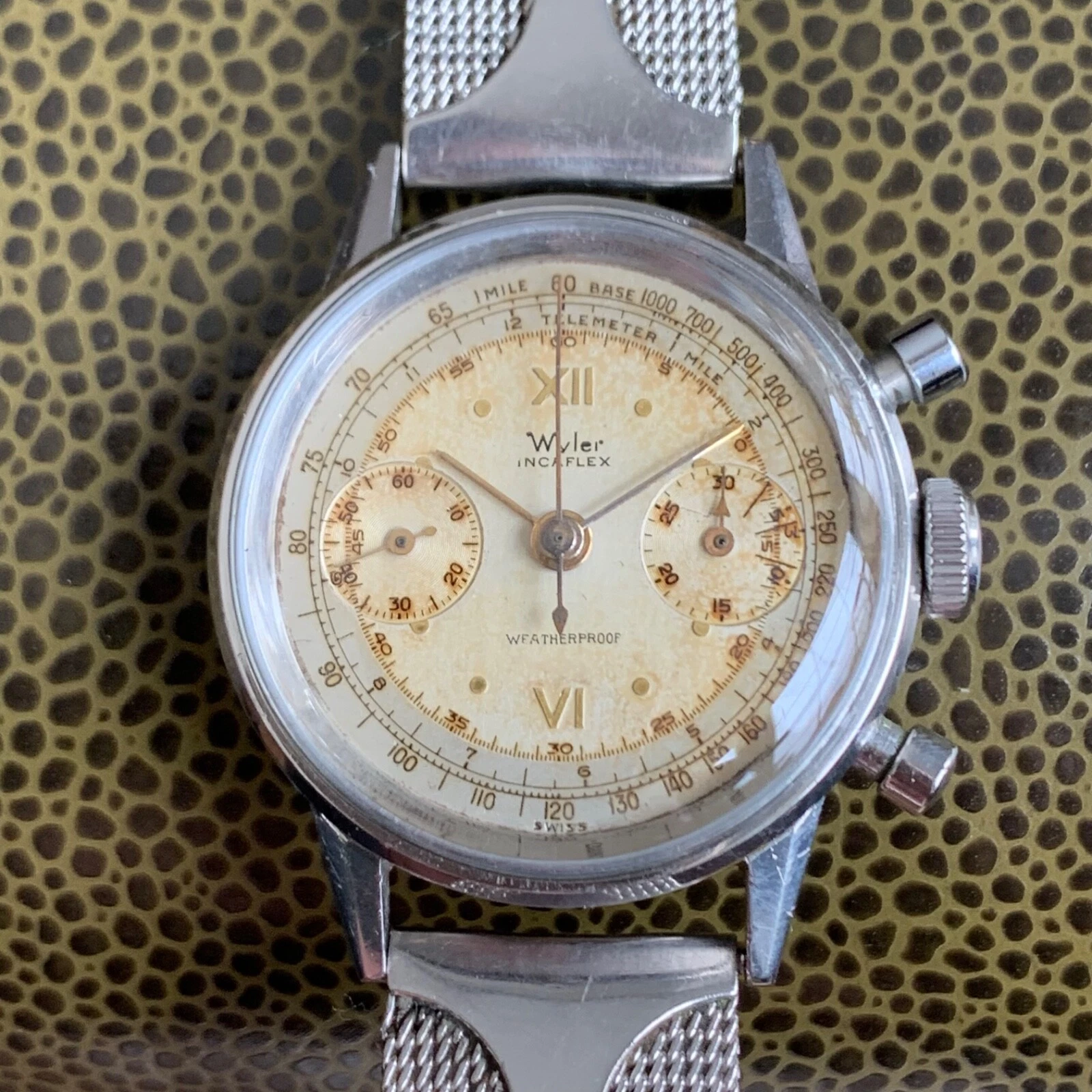 Vintage Wyler Incaflex 2 Register Valjoux 23 Stainless Steel Chronograph Watch