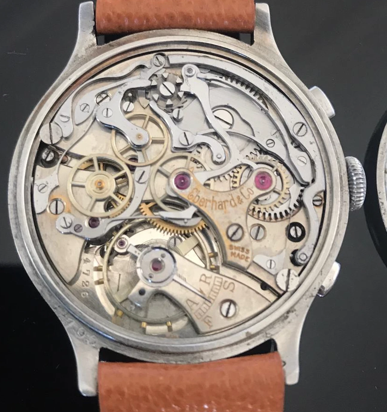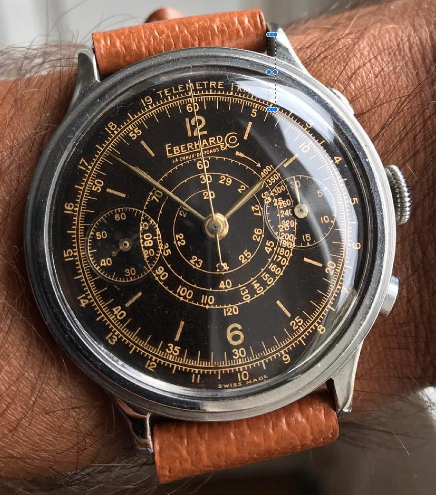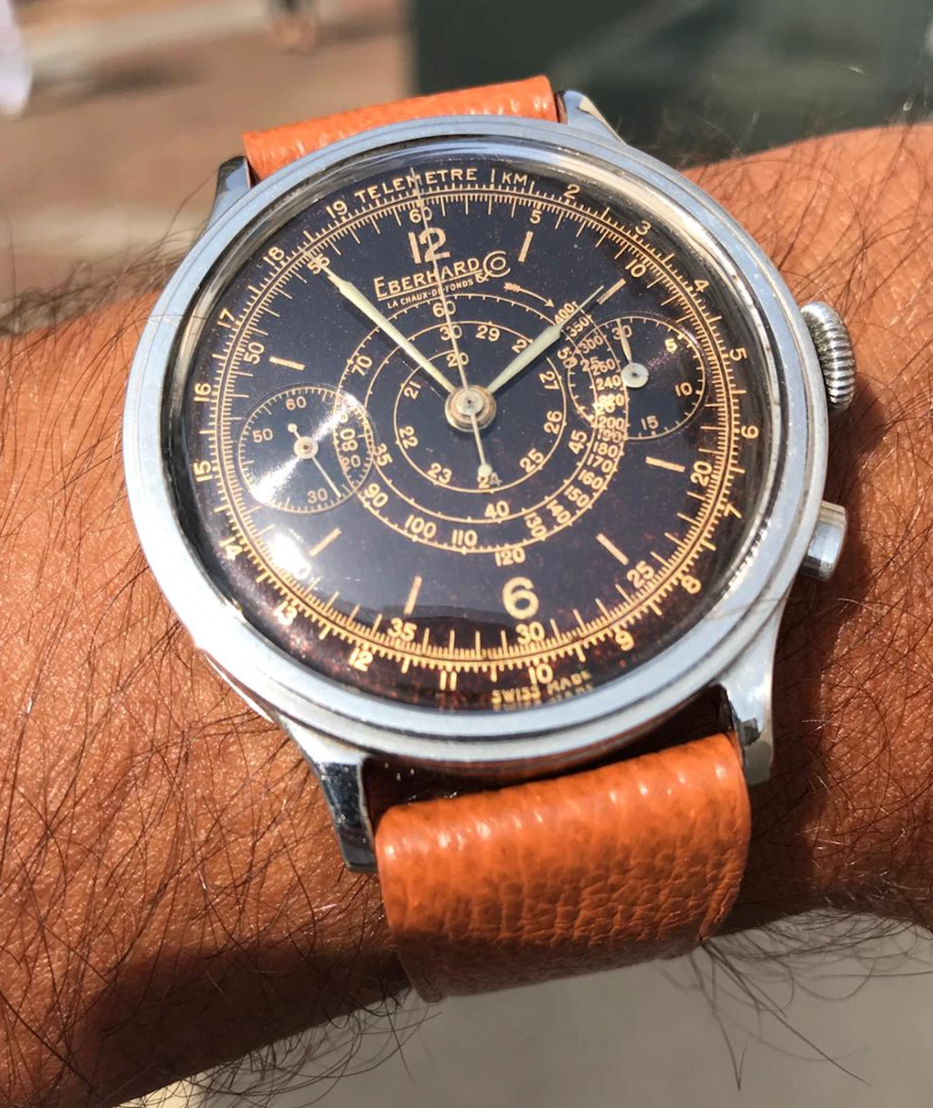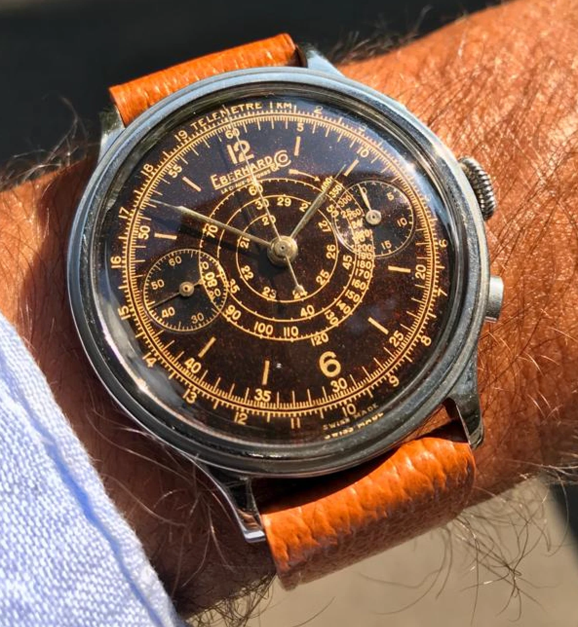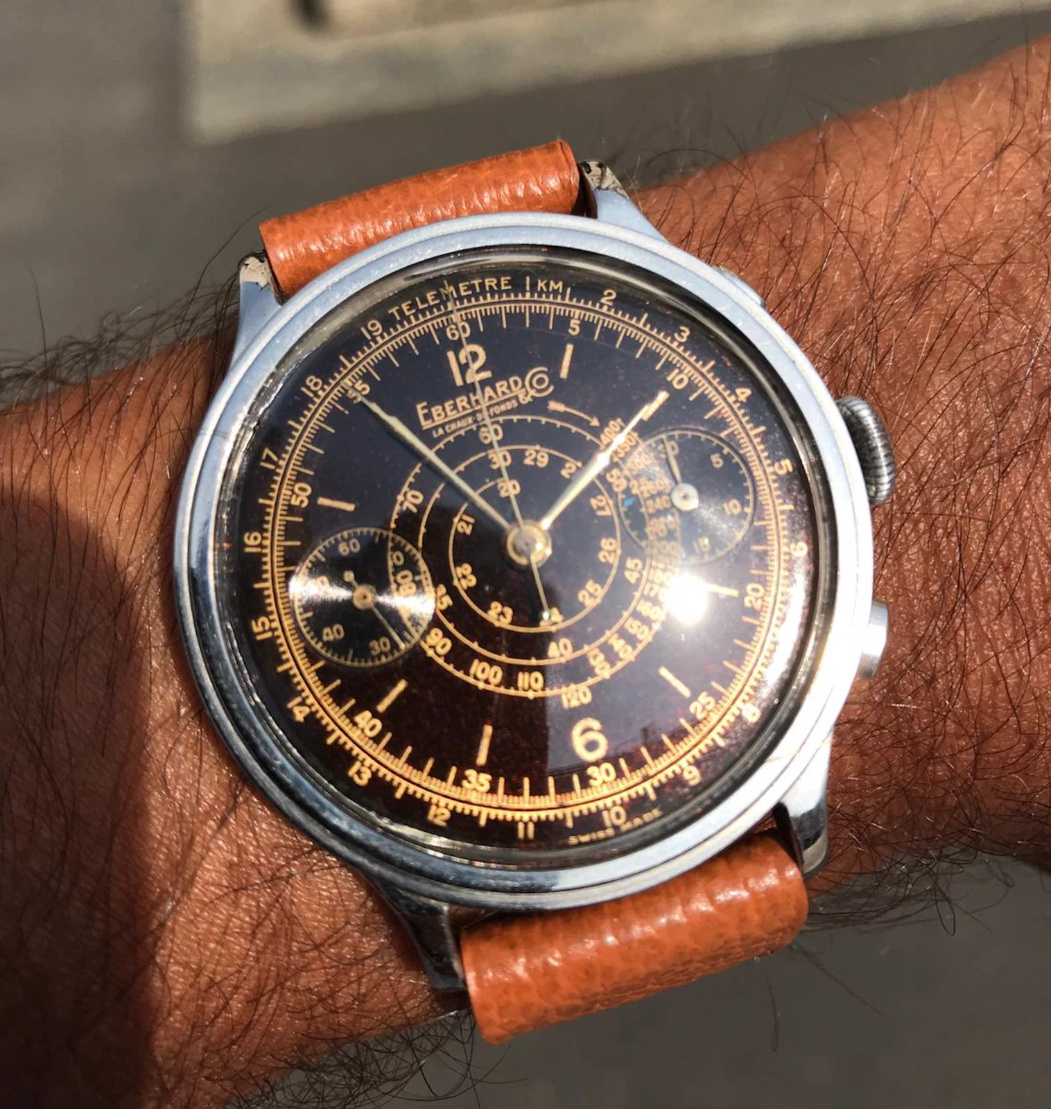Eberhard Pre-Extra Fort 40mm Step-case Chronograph, Tropical Gilt Dial c 1940
