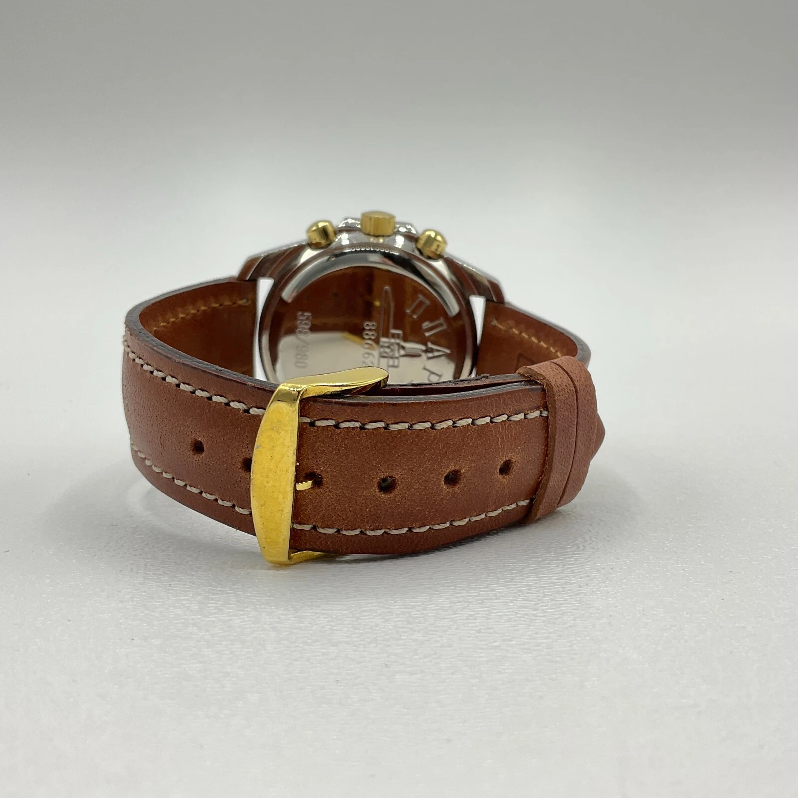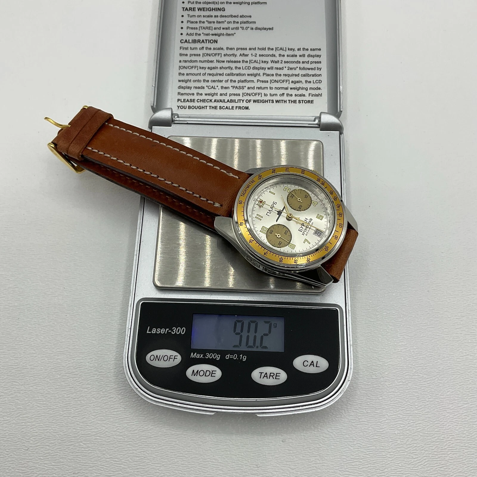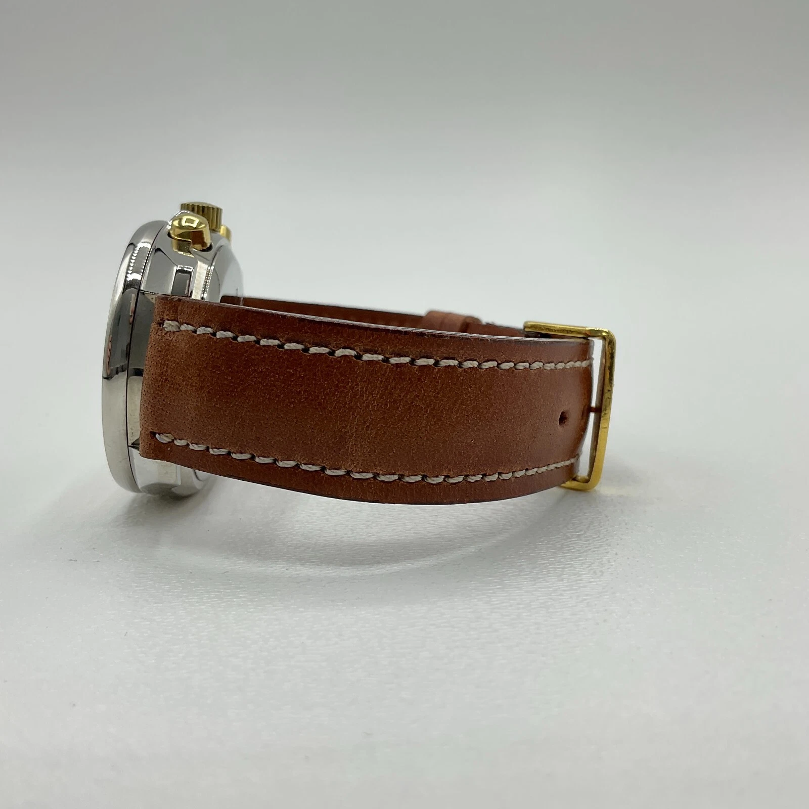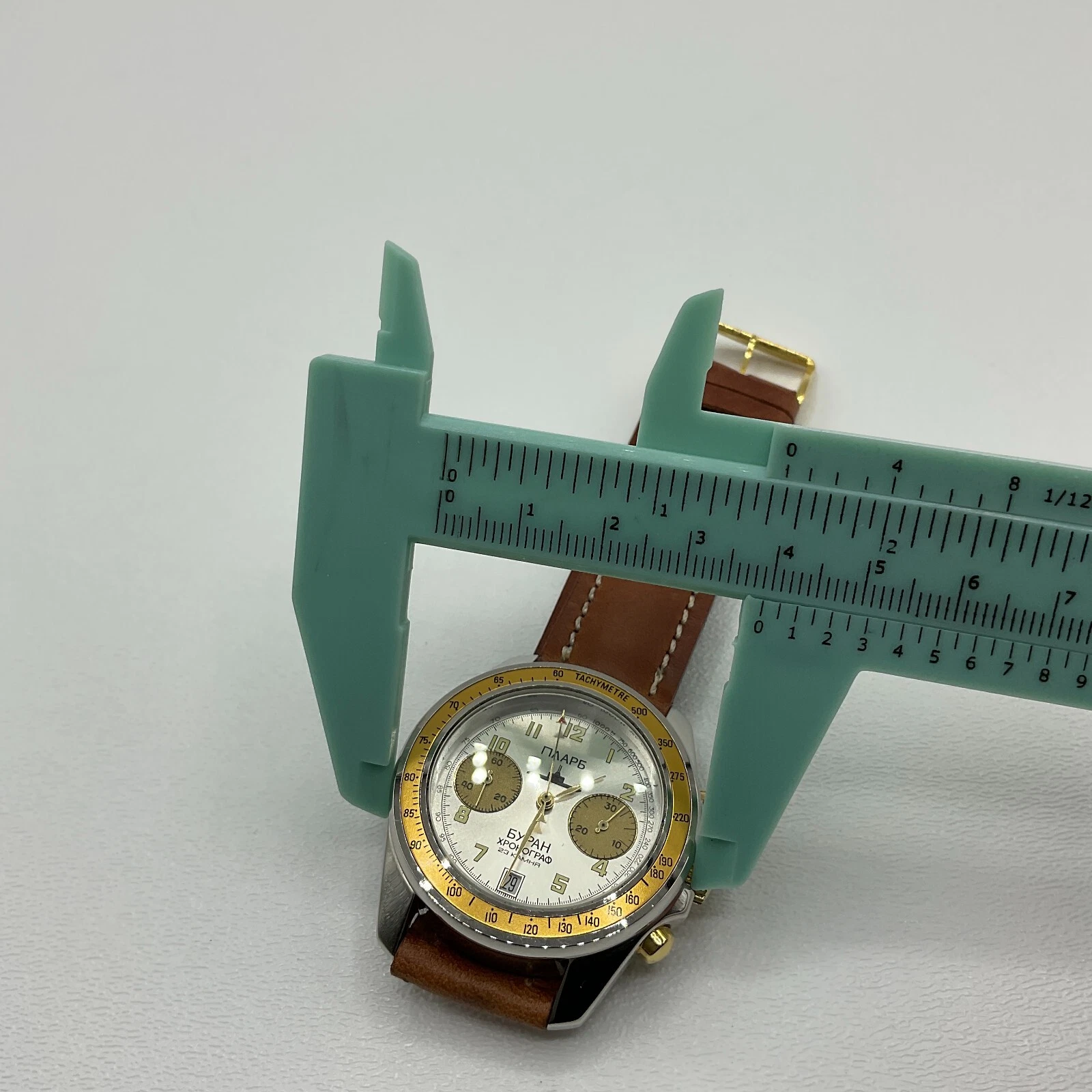 Buran Plarb Chronograph Russian Mens 39mm Watch Silver Dial Brown Leather Band