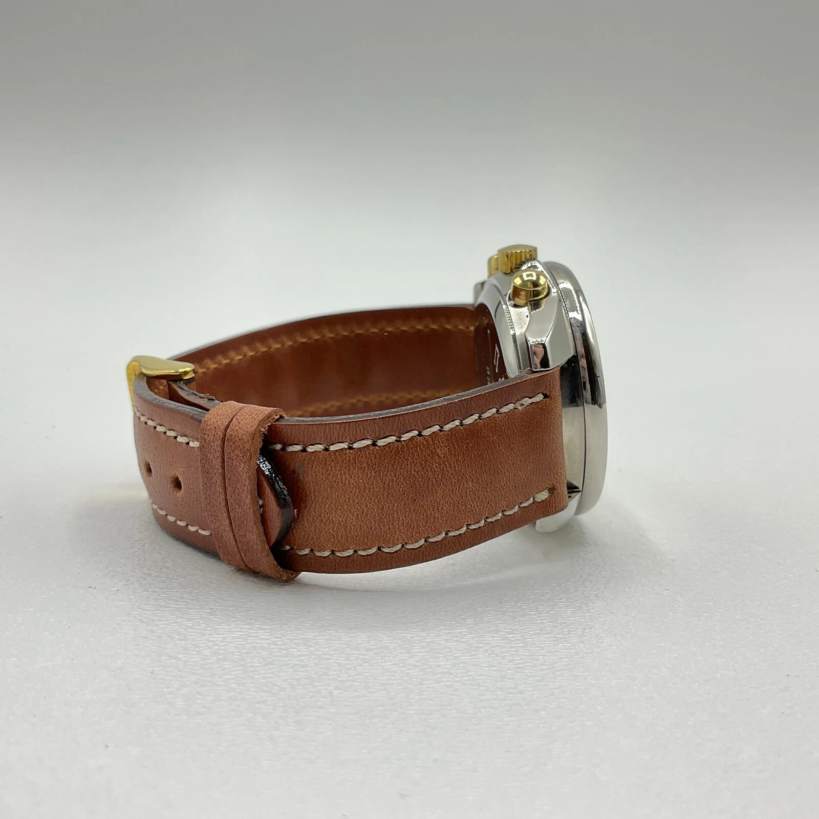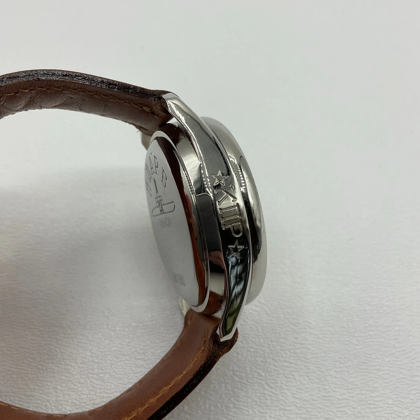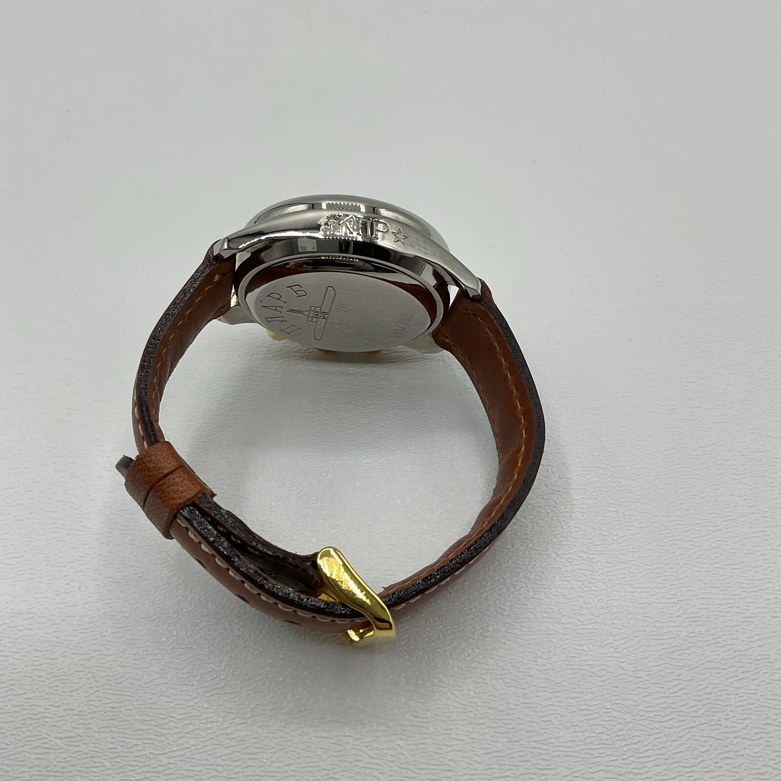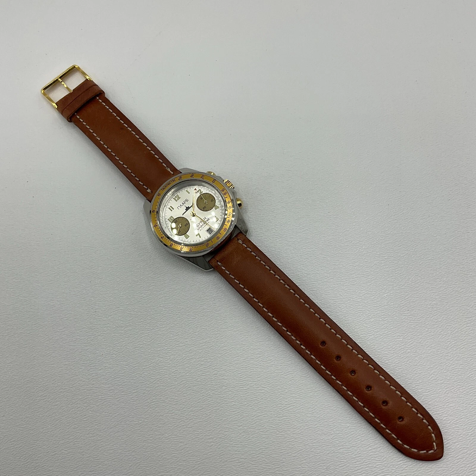 Buran Plarb Chronograph Russian Mens 39mm Watch Silver Dial Brown Leather Band