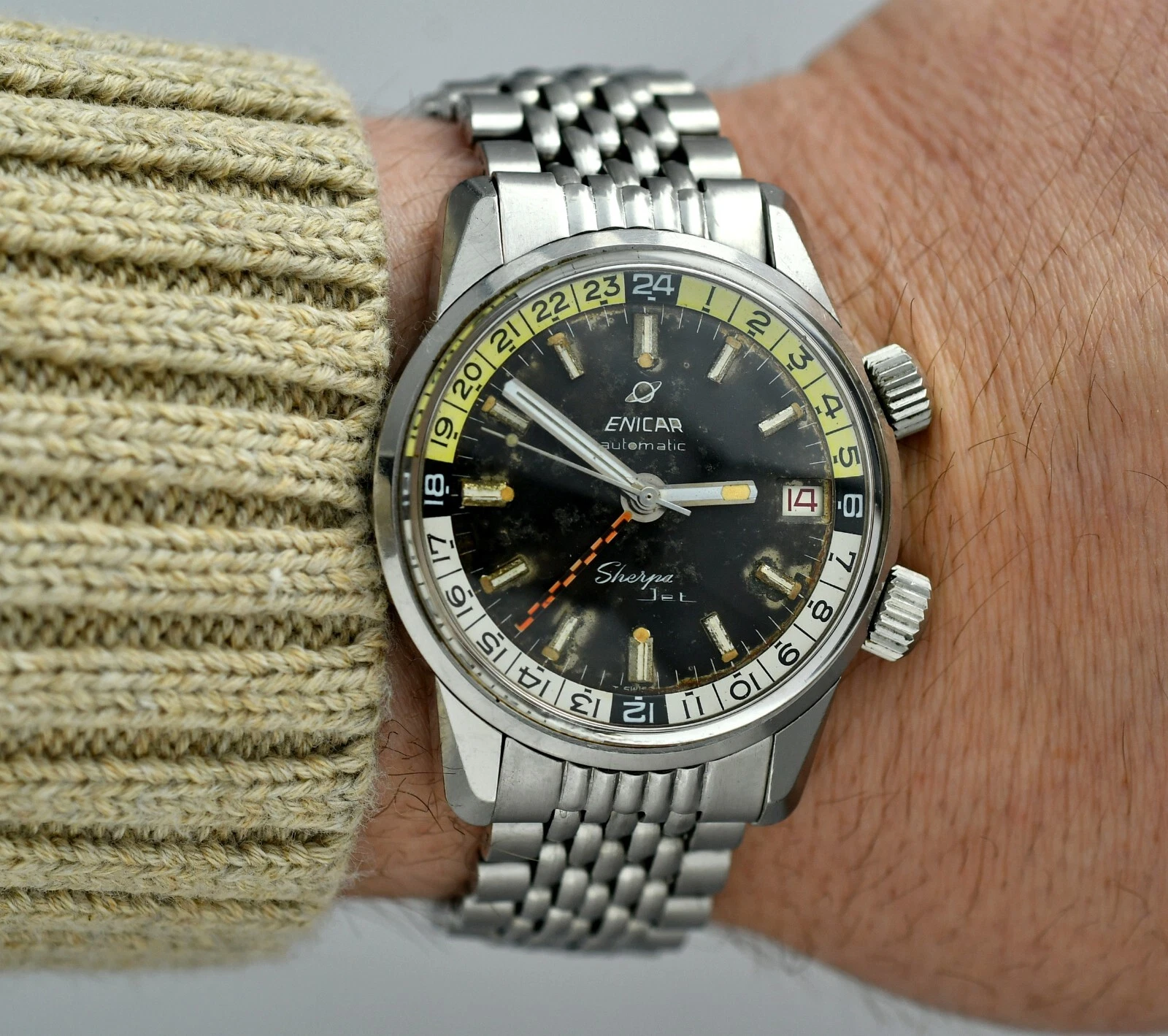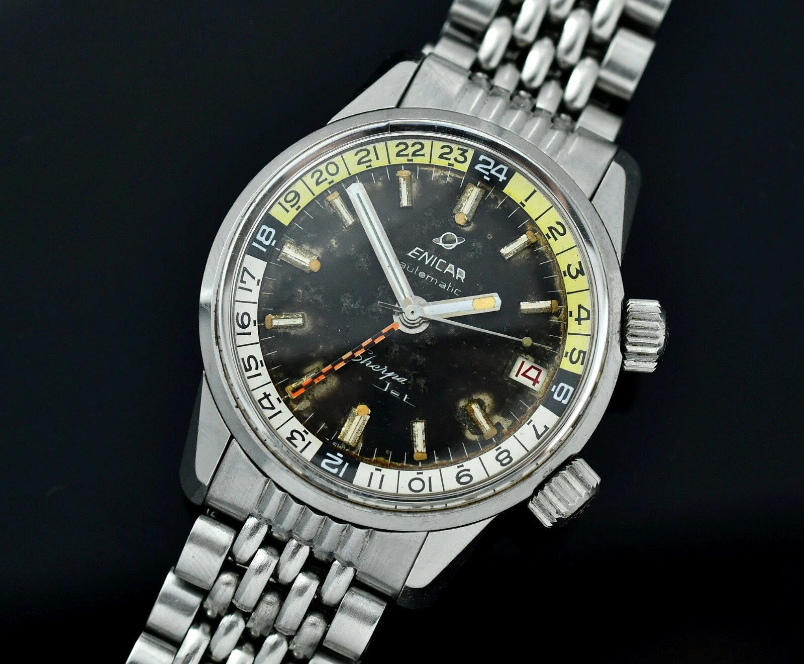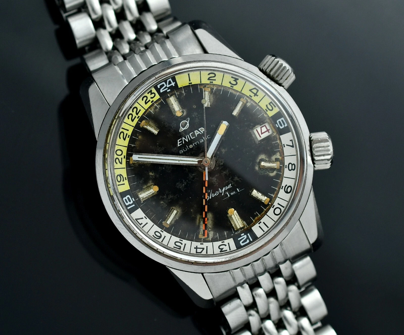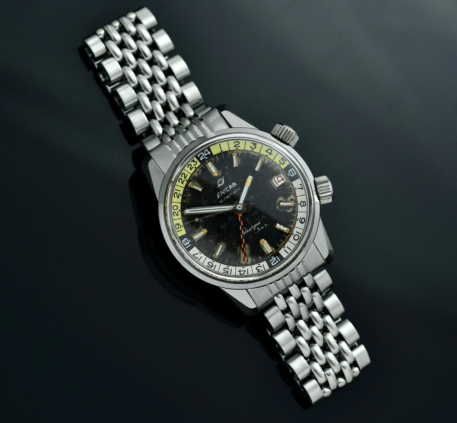 Vintag ENICAR Sherpa Automatic Jet GMT - Diver Watch - Steel 36,5mm Case - BOR