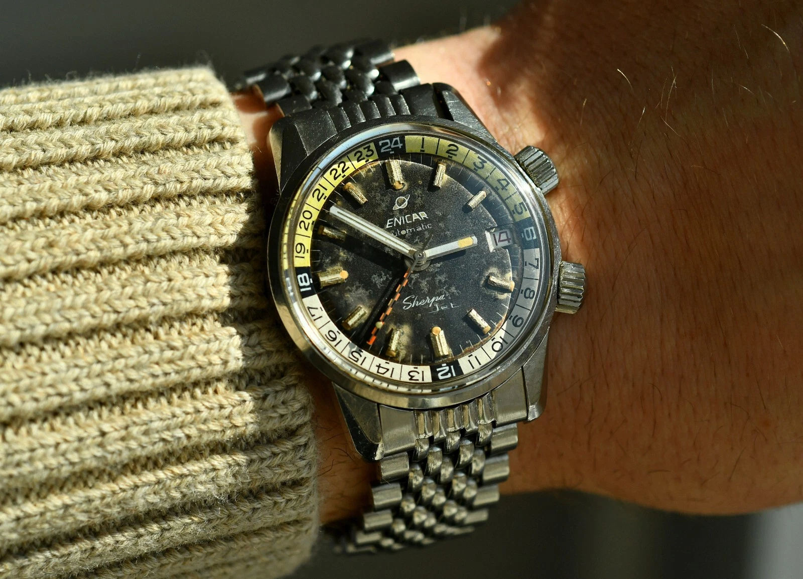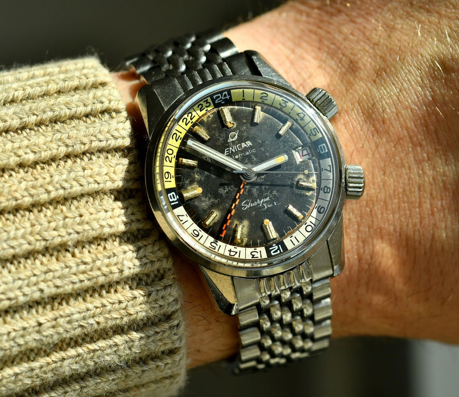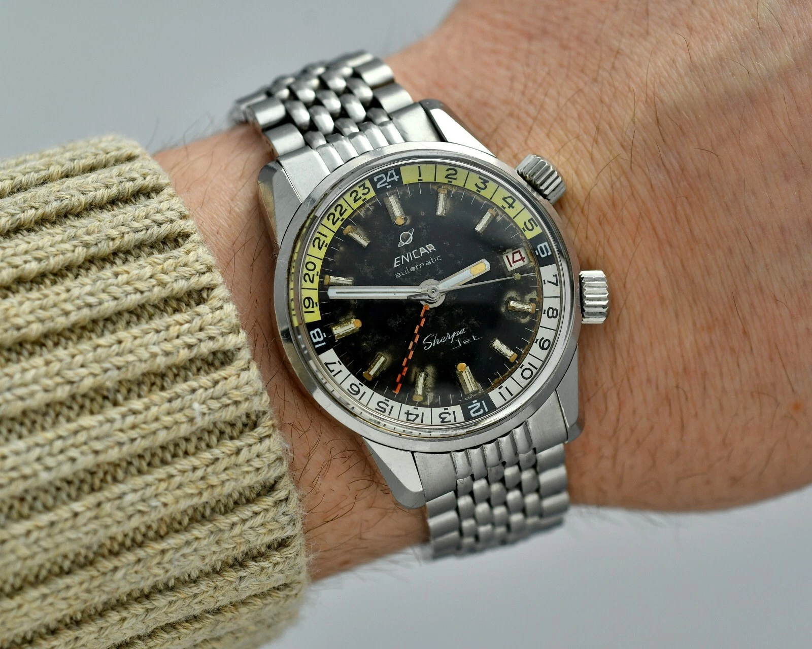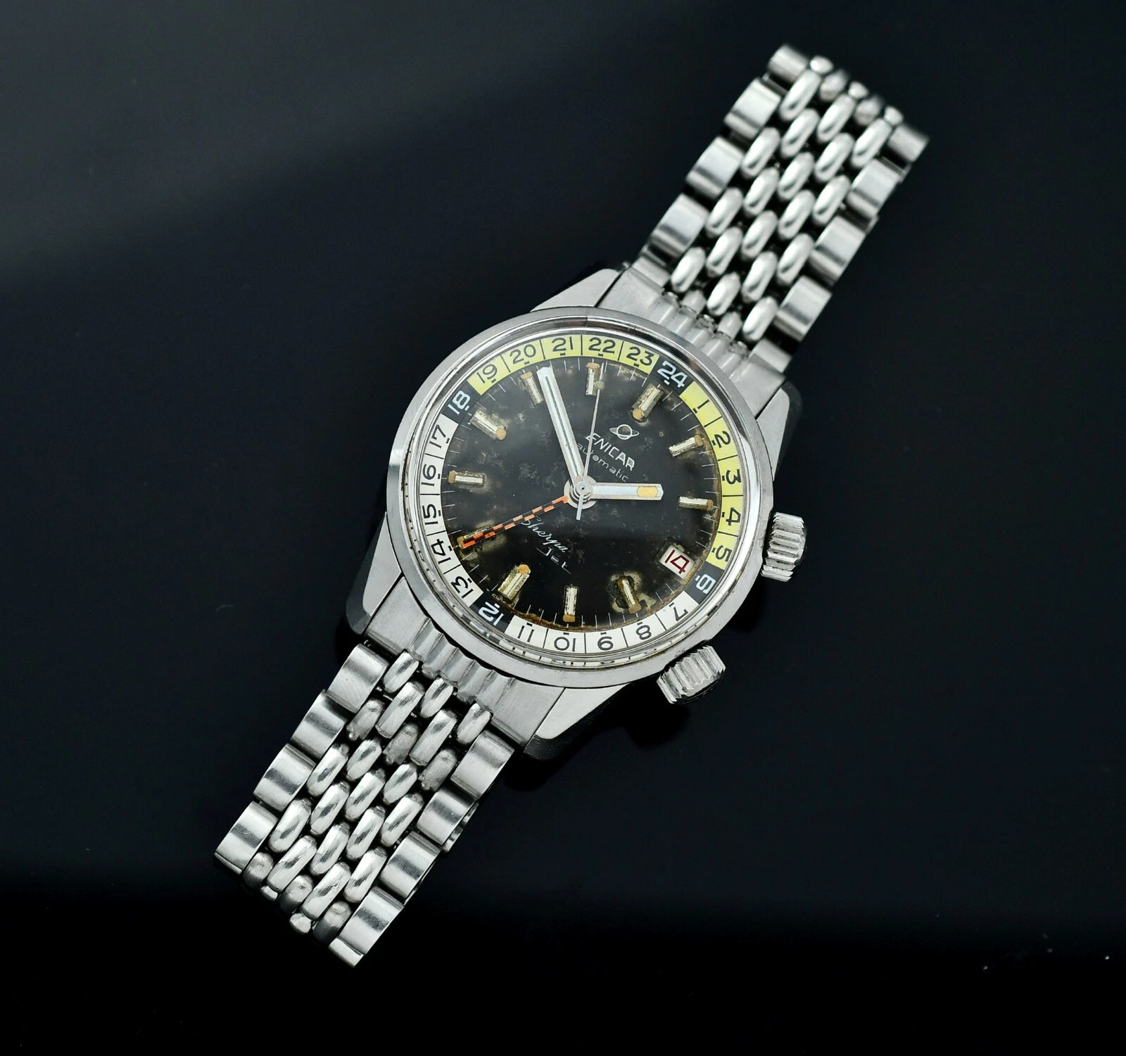 Vintag ENICAR Sherpa Automatic Jet GMT - Diver Watch - Steel 36,5mm Case - BOR