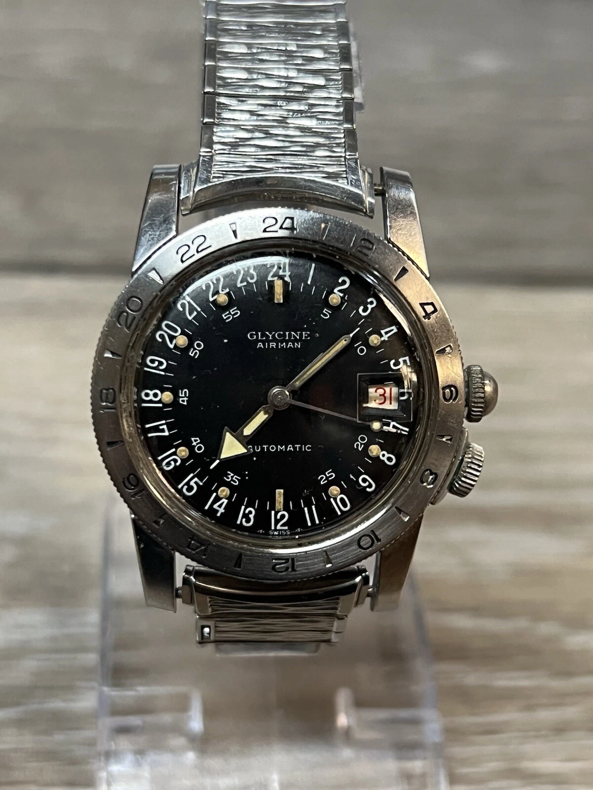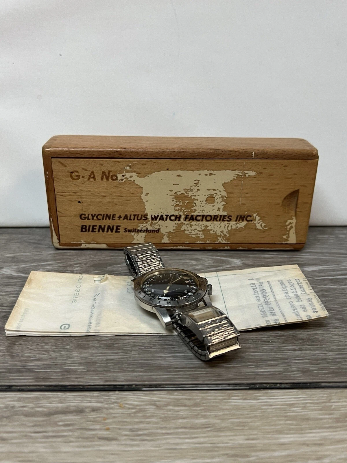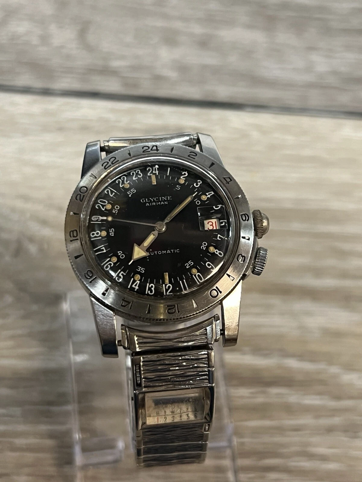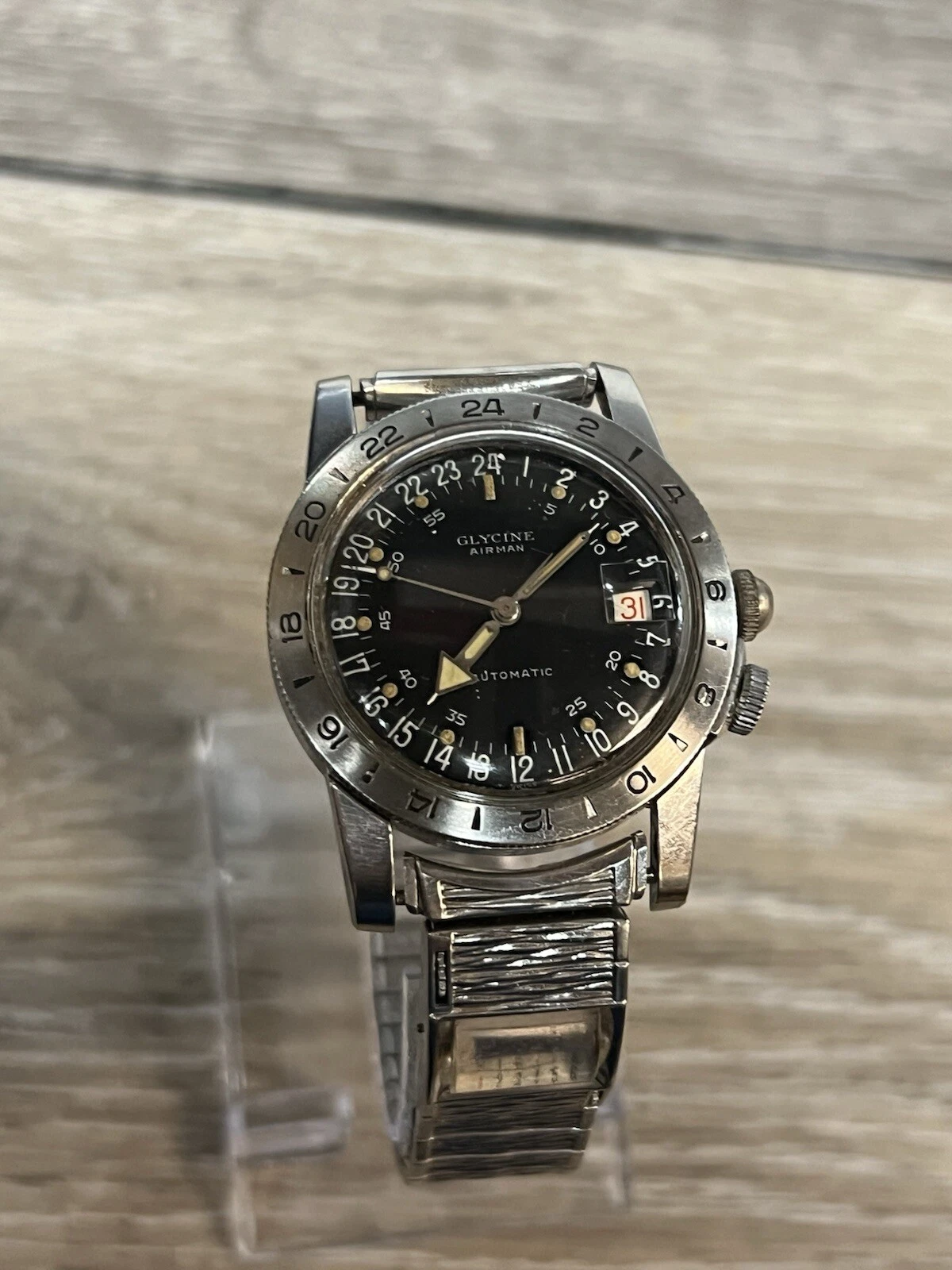 Vintage Glycine Airman 24 hour automatic GMT Men's Watch 36mm  Original Box