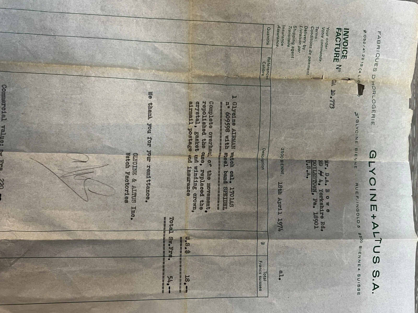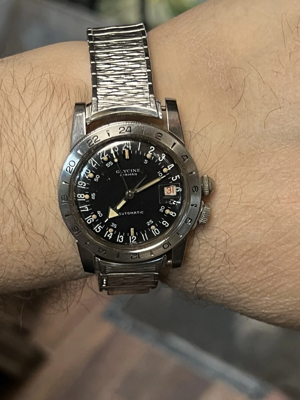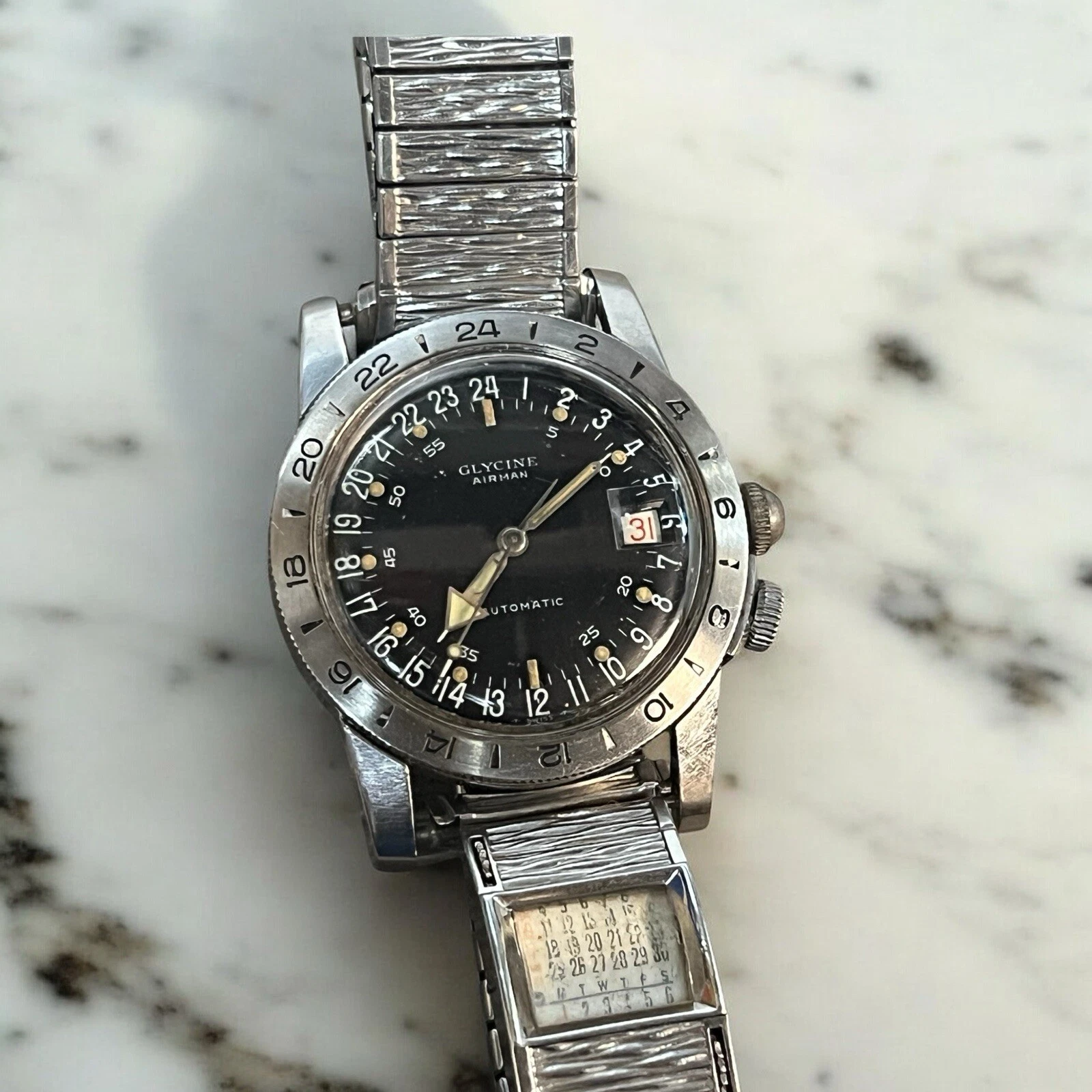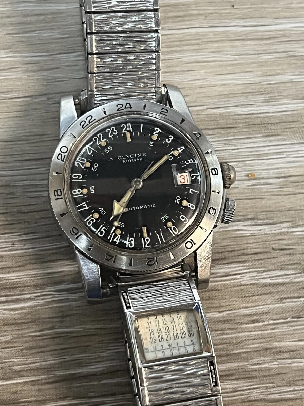 Vintage Glycine Airman 24 hour automatic GMT Men's Watch 36mm  Original Box