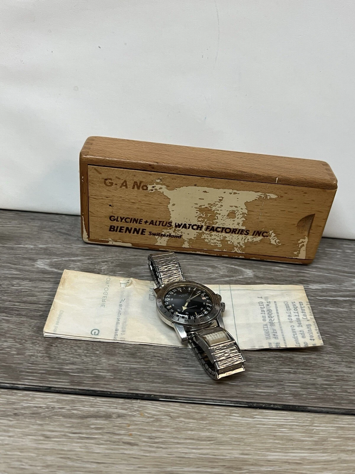 Vintage Glycine Airman 24 hour automatic GMT Men's Watch 36mm Original Box