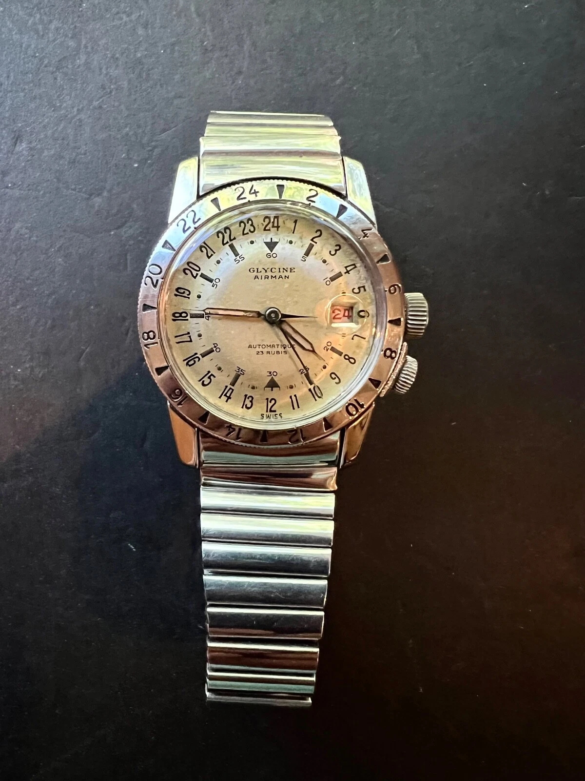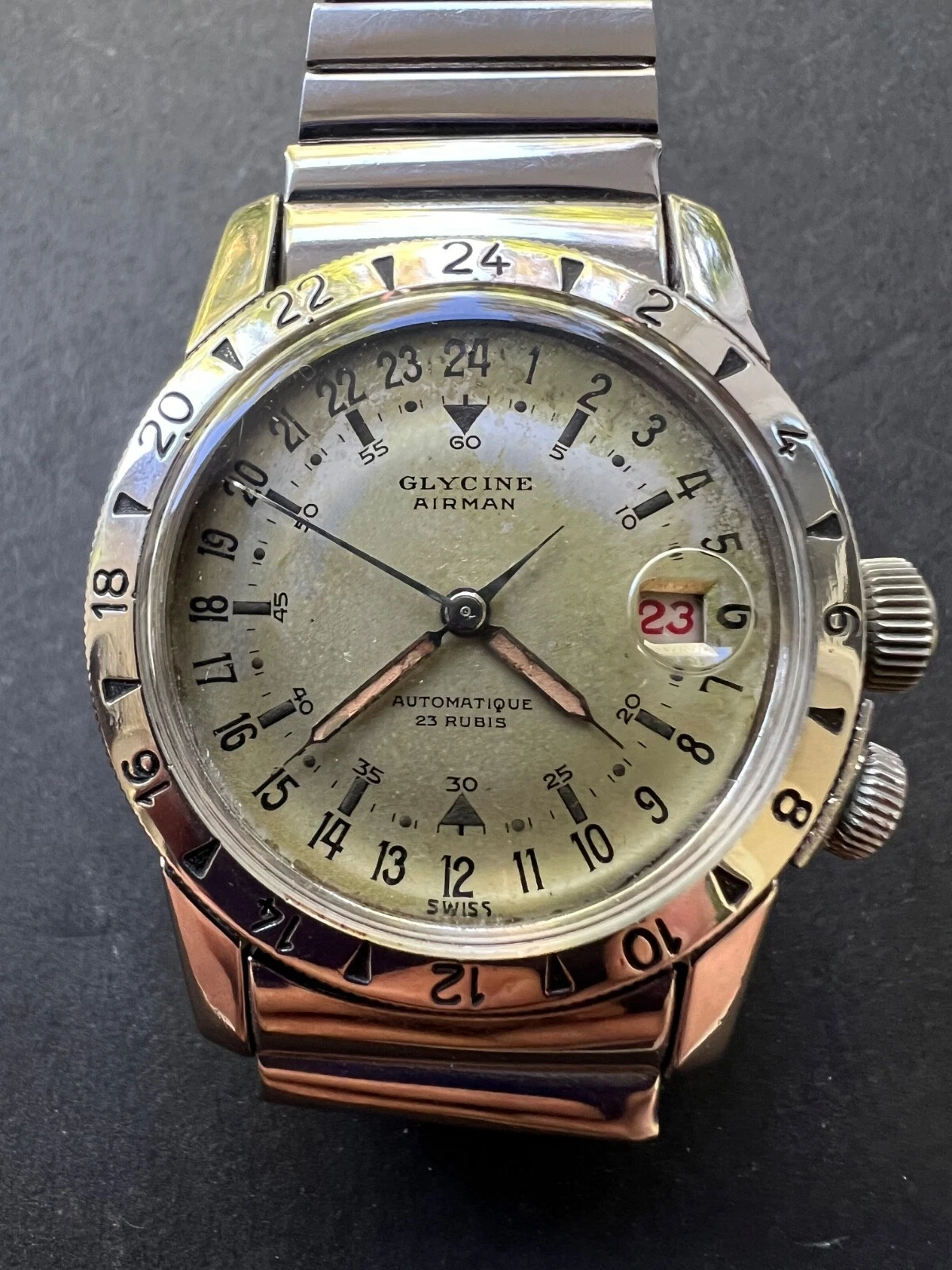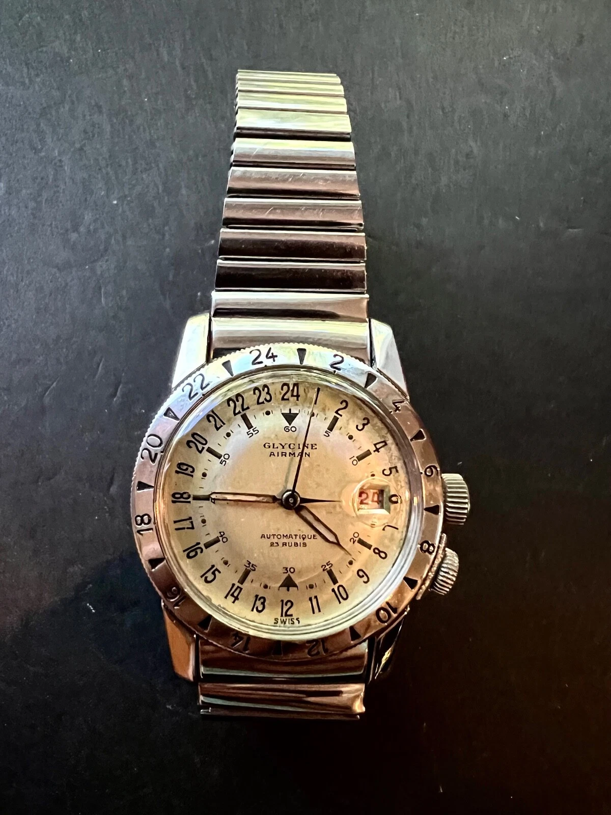 1950s Glycine Airman watch and original Fixo-Flex bracelet Rare white dial