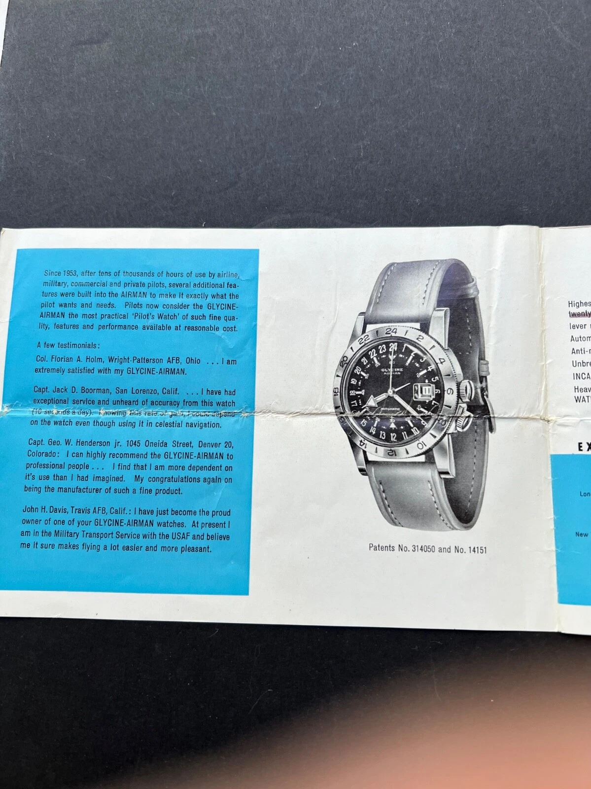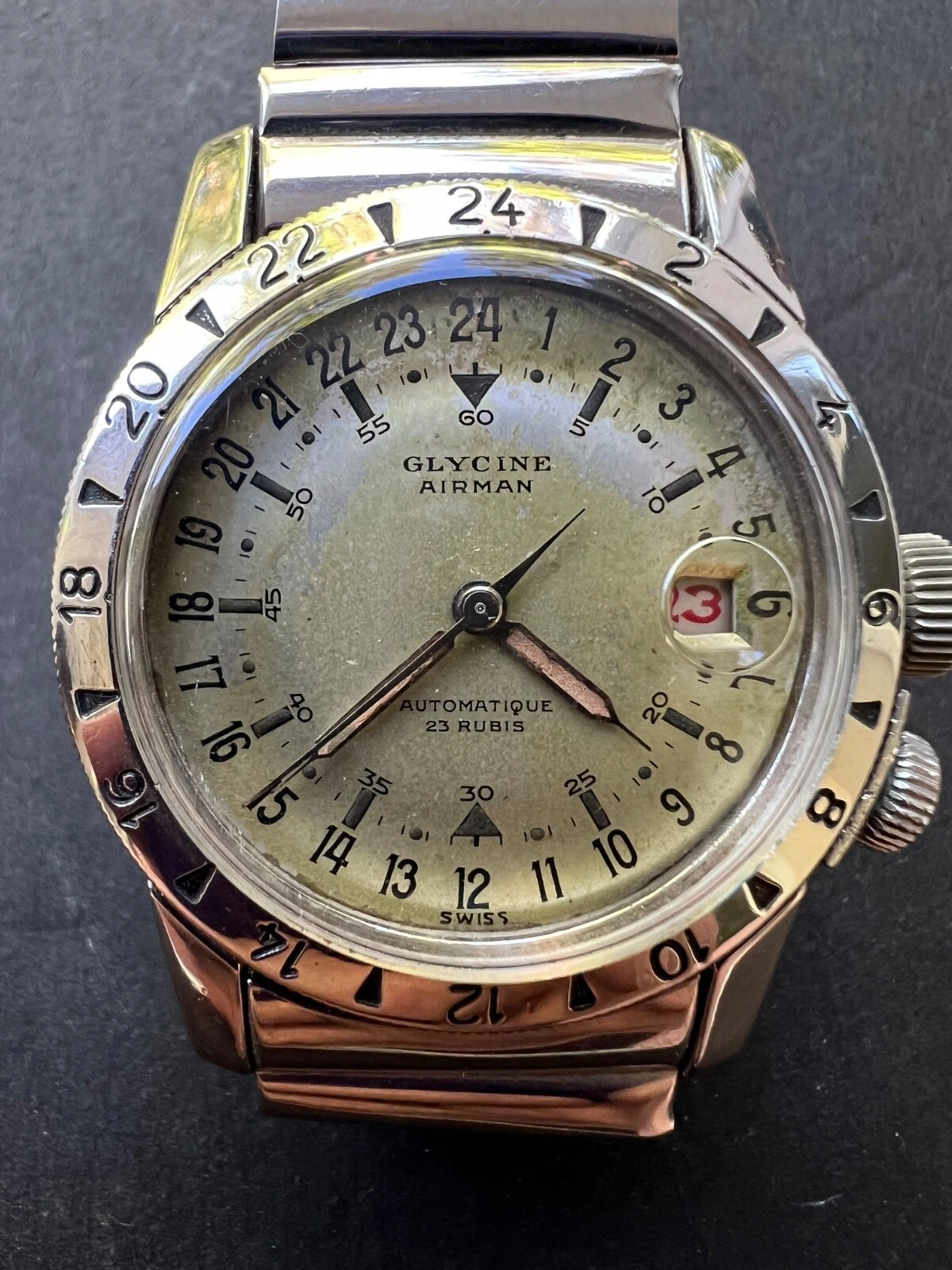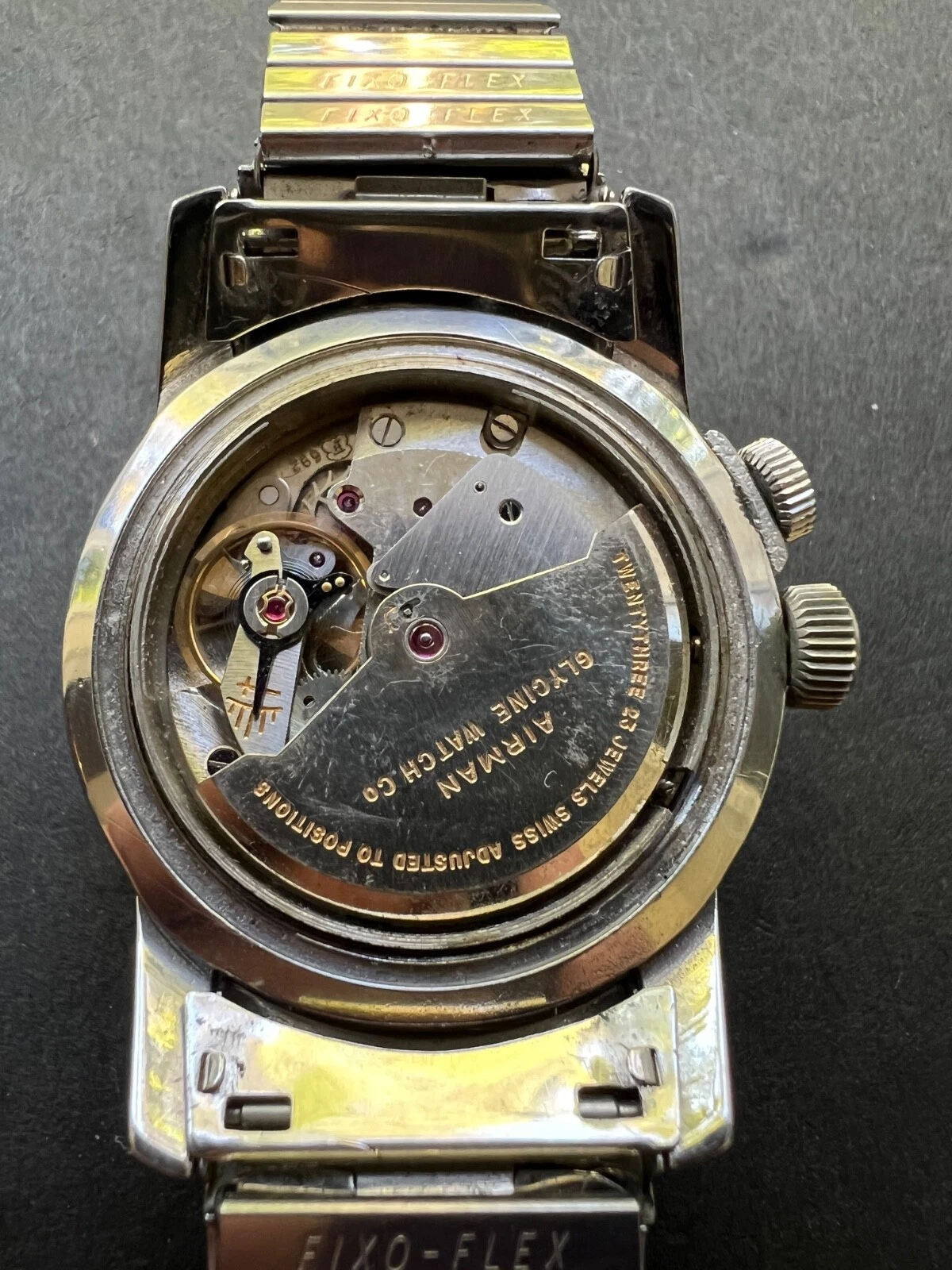 1950s Glycine Airman watch and original Fixo-Flex bracelet Rare white dial