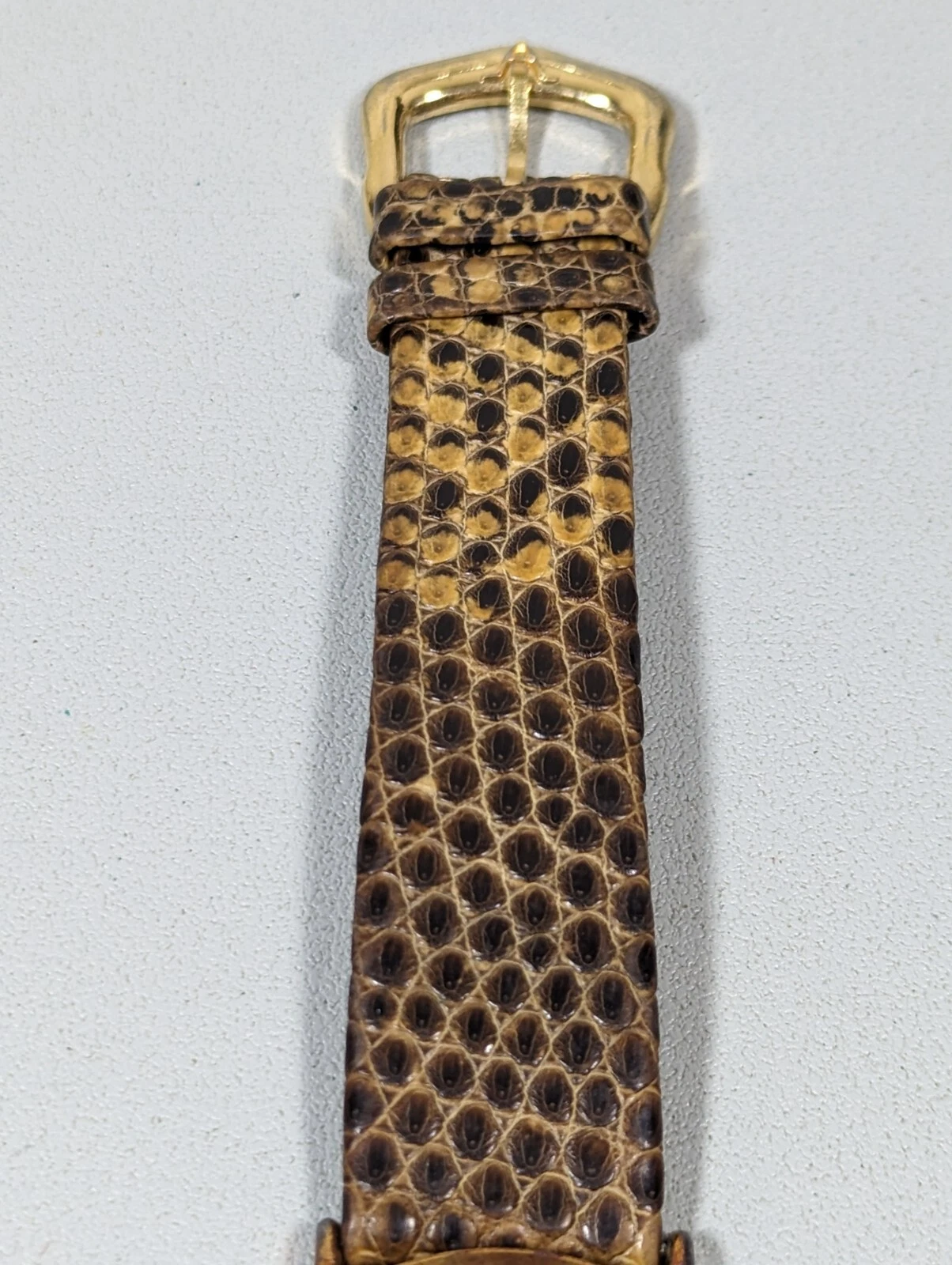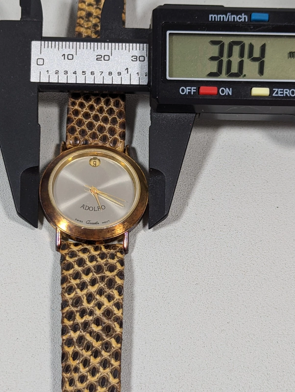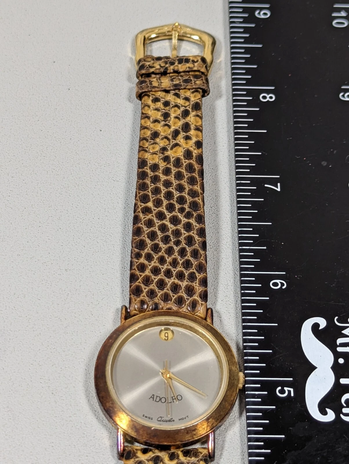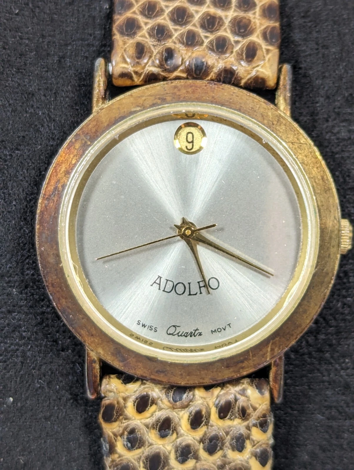 Adolfo Swiss Silver Tone Dial Round Gold Tone Case Brown Leather Band Watch