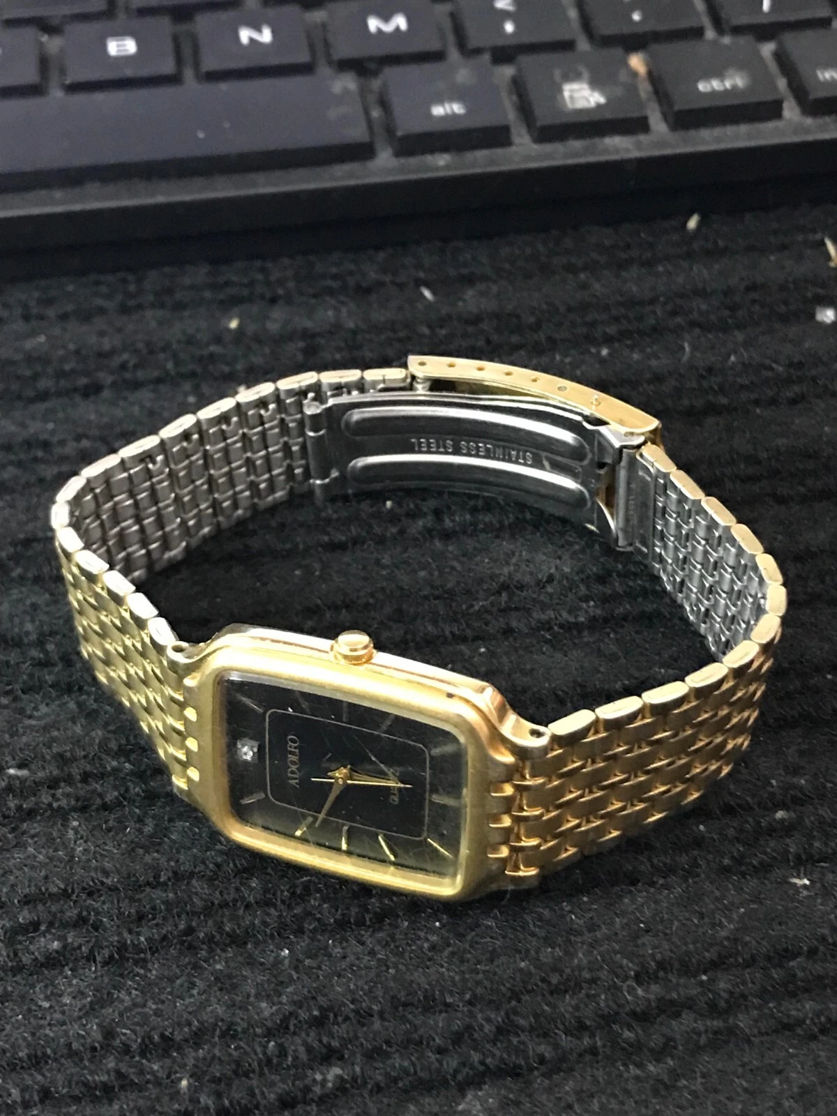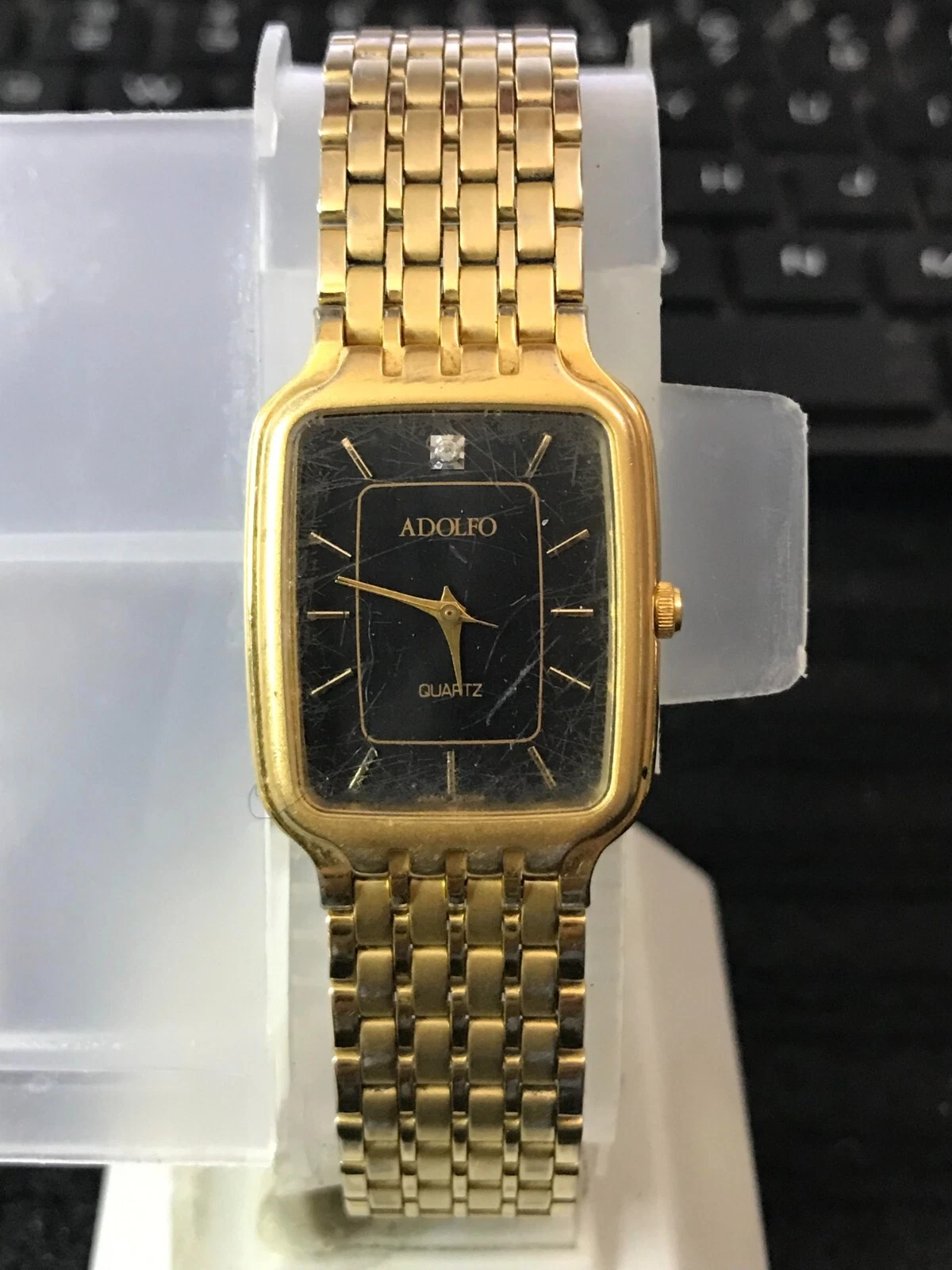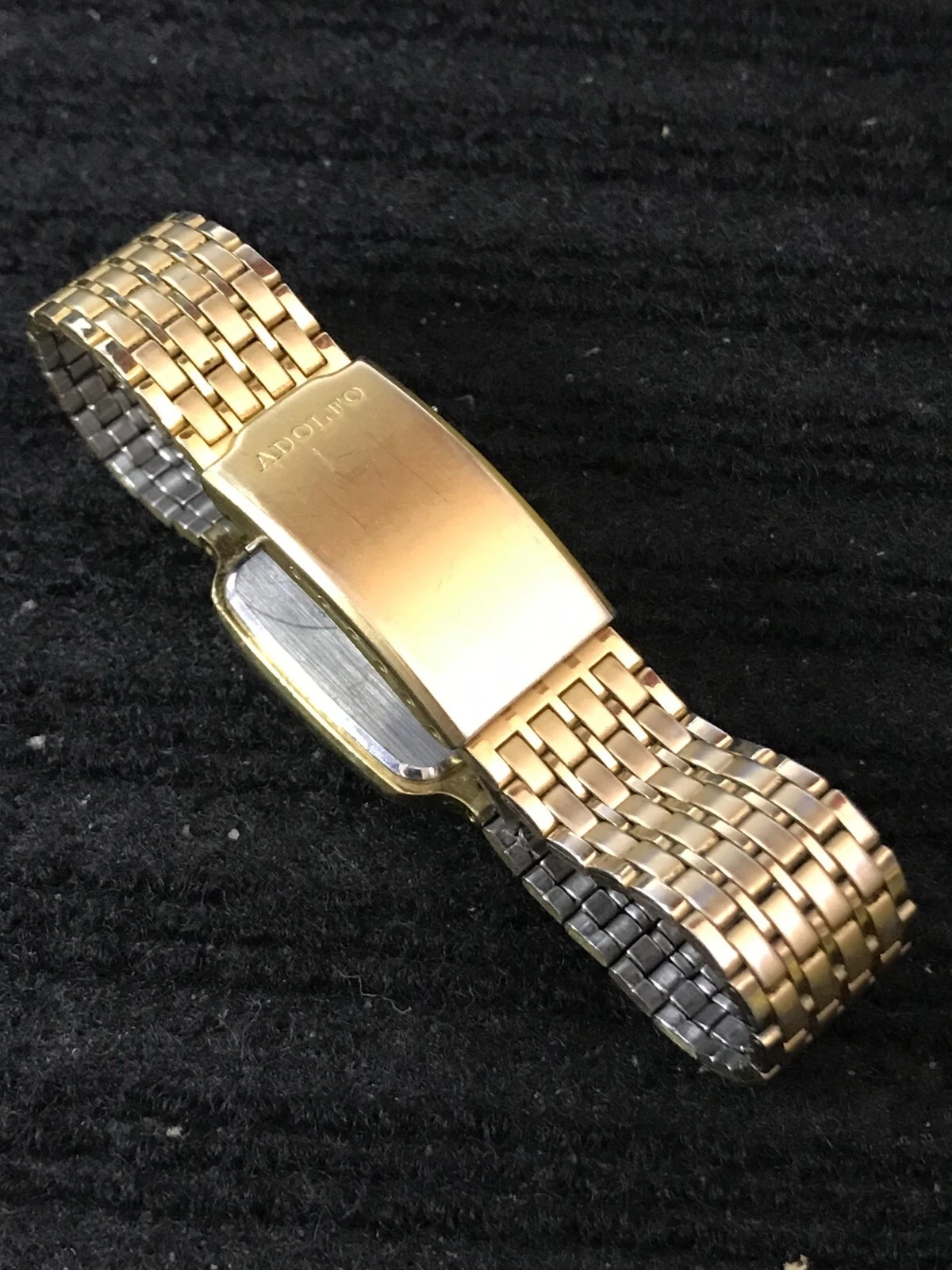 ADOLFO Diamond 25mm Black Dial Golden Tank Ladies Quartz Watch Run (Y87)