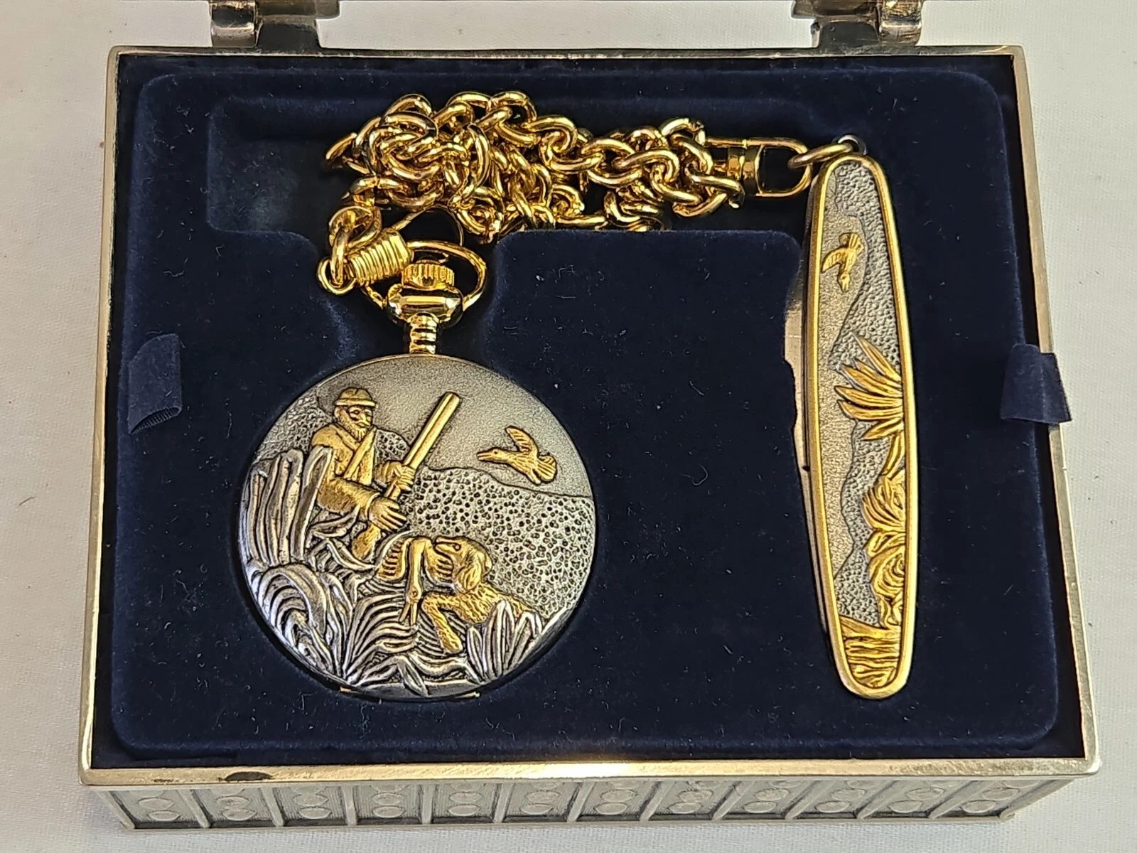 Adolfo Quartz Pocket Watch and Knife in Presentation Case