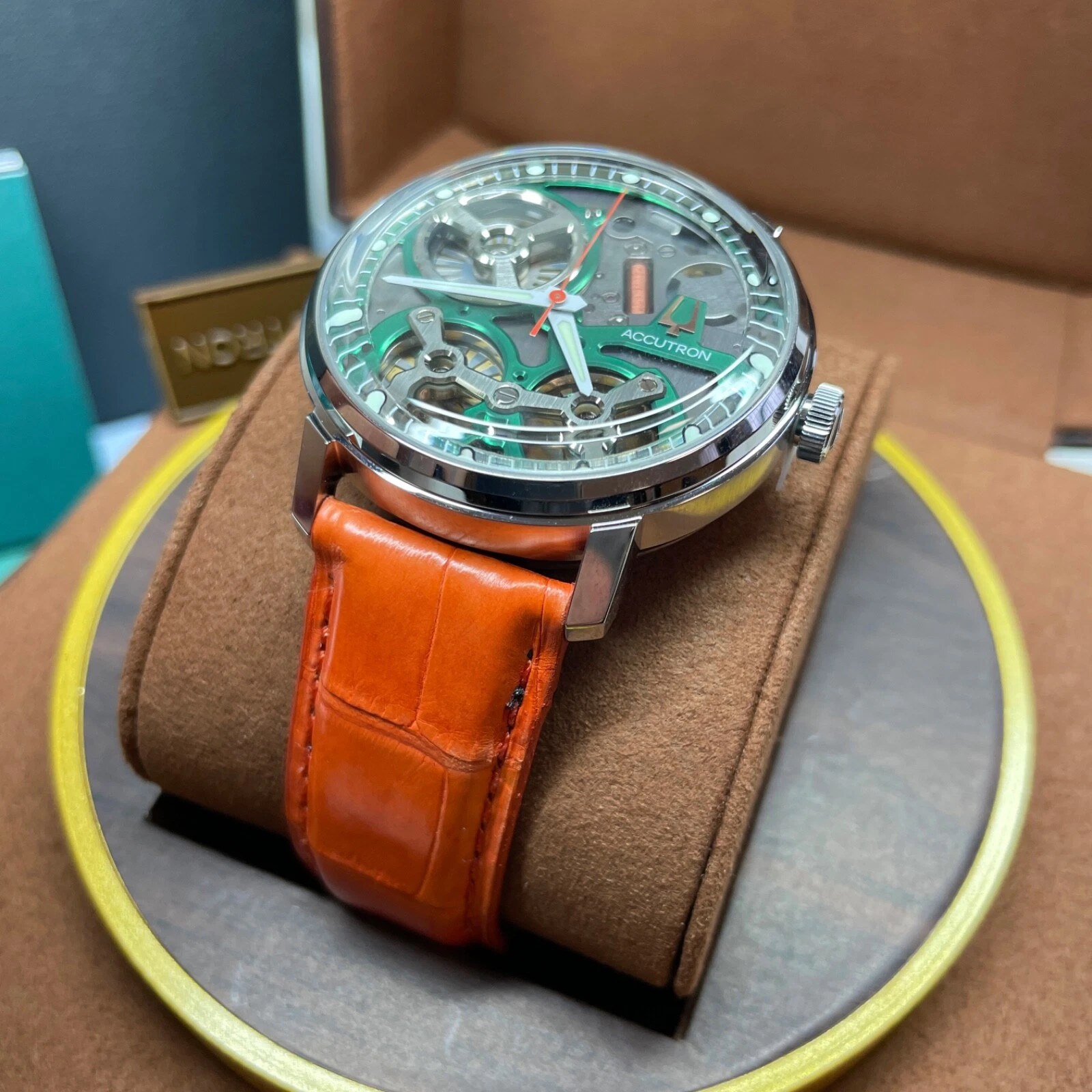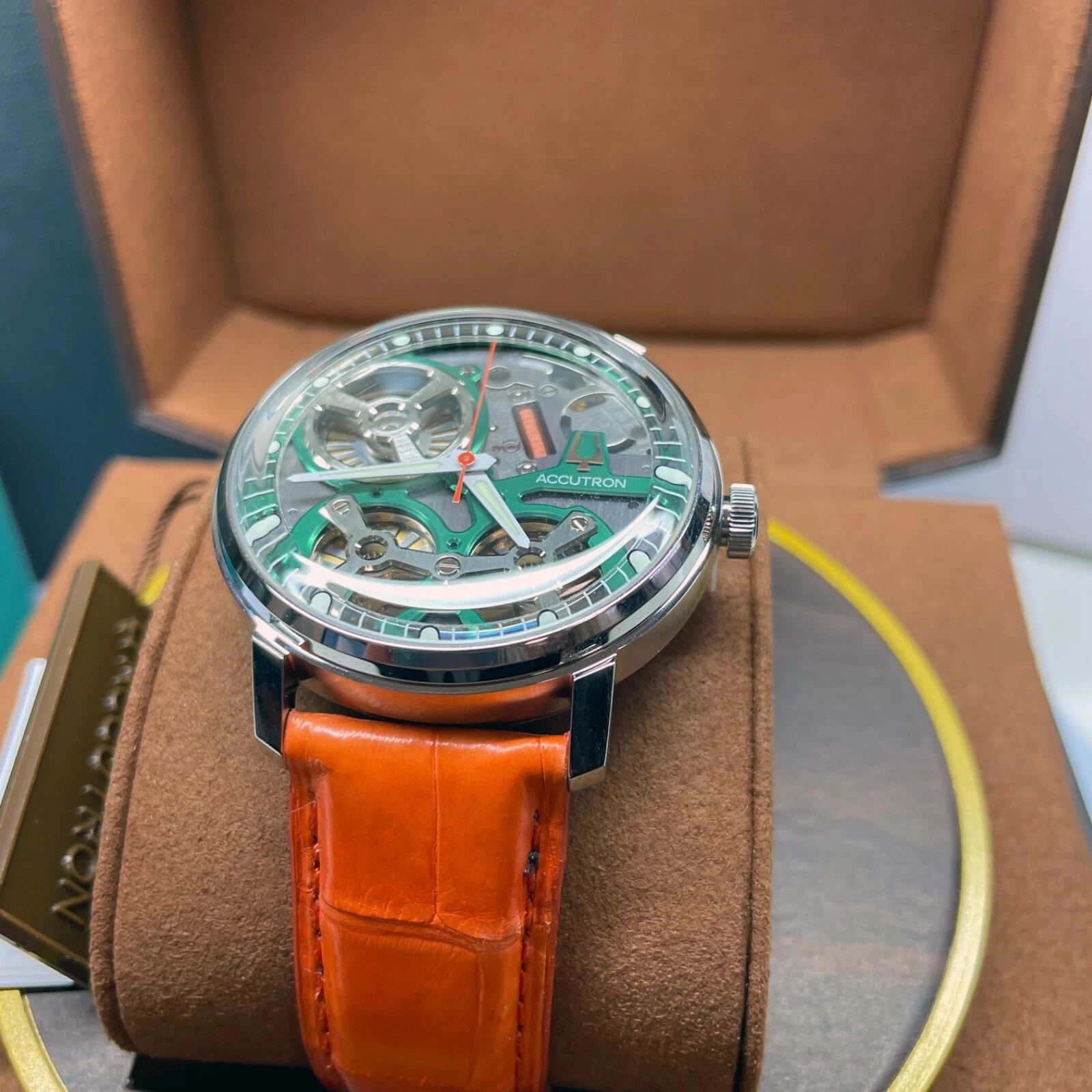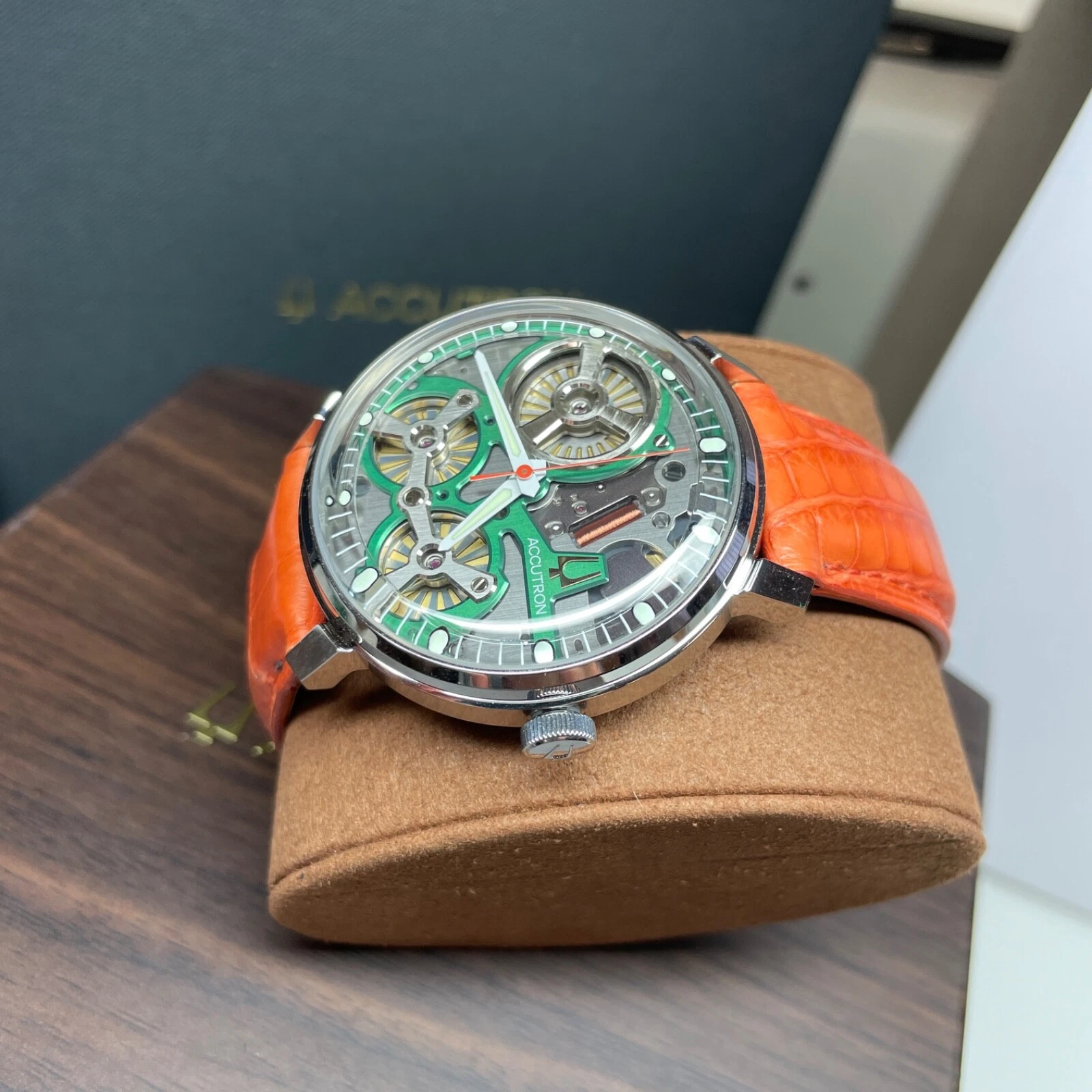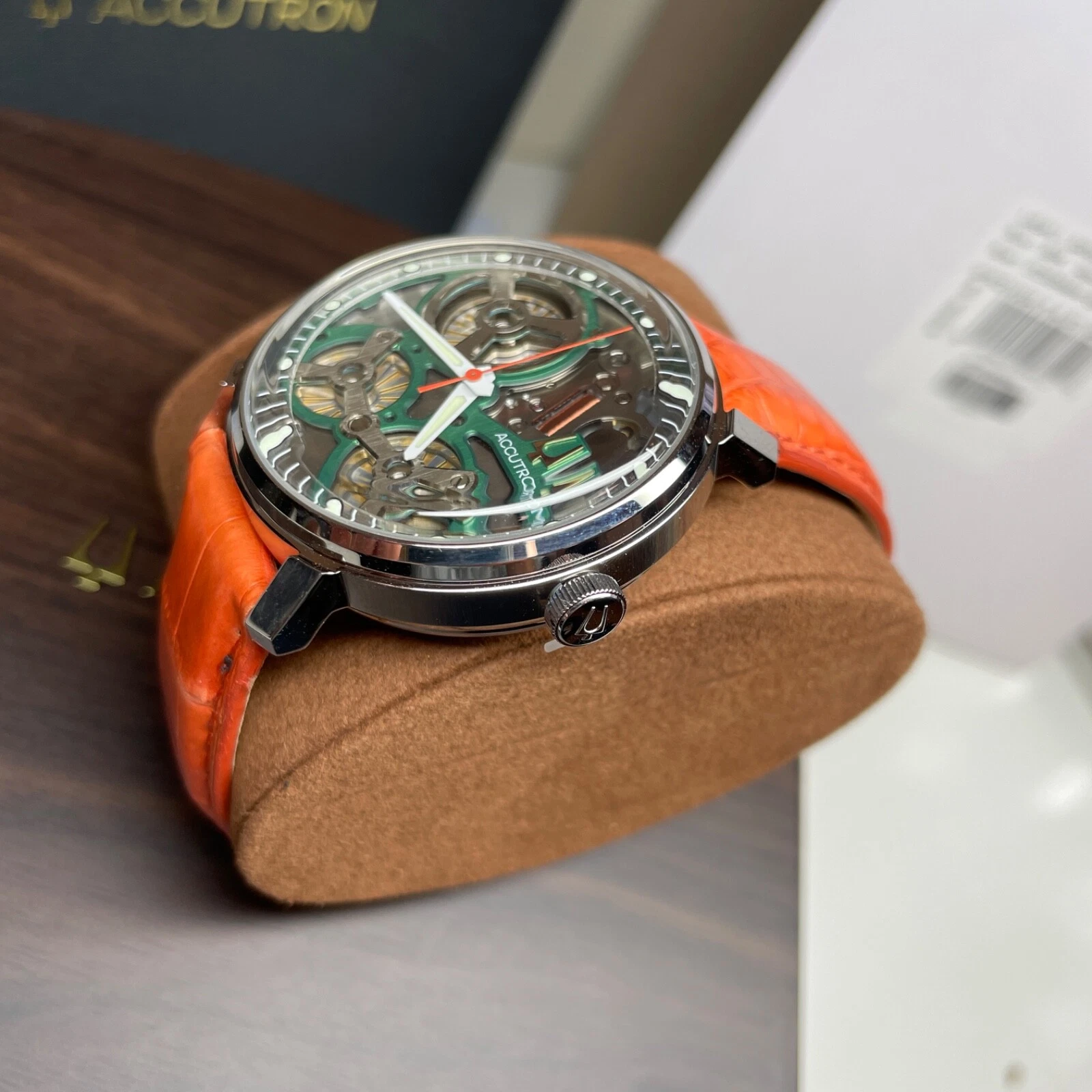 Accutron Spaceview 2020 ElectroStatic Green Dial Orange Watch 2ES6A004