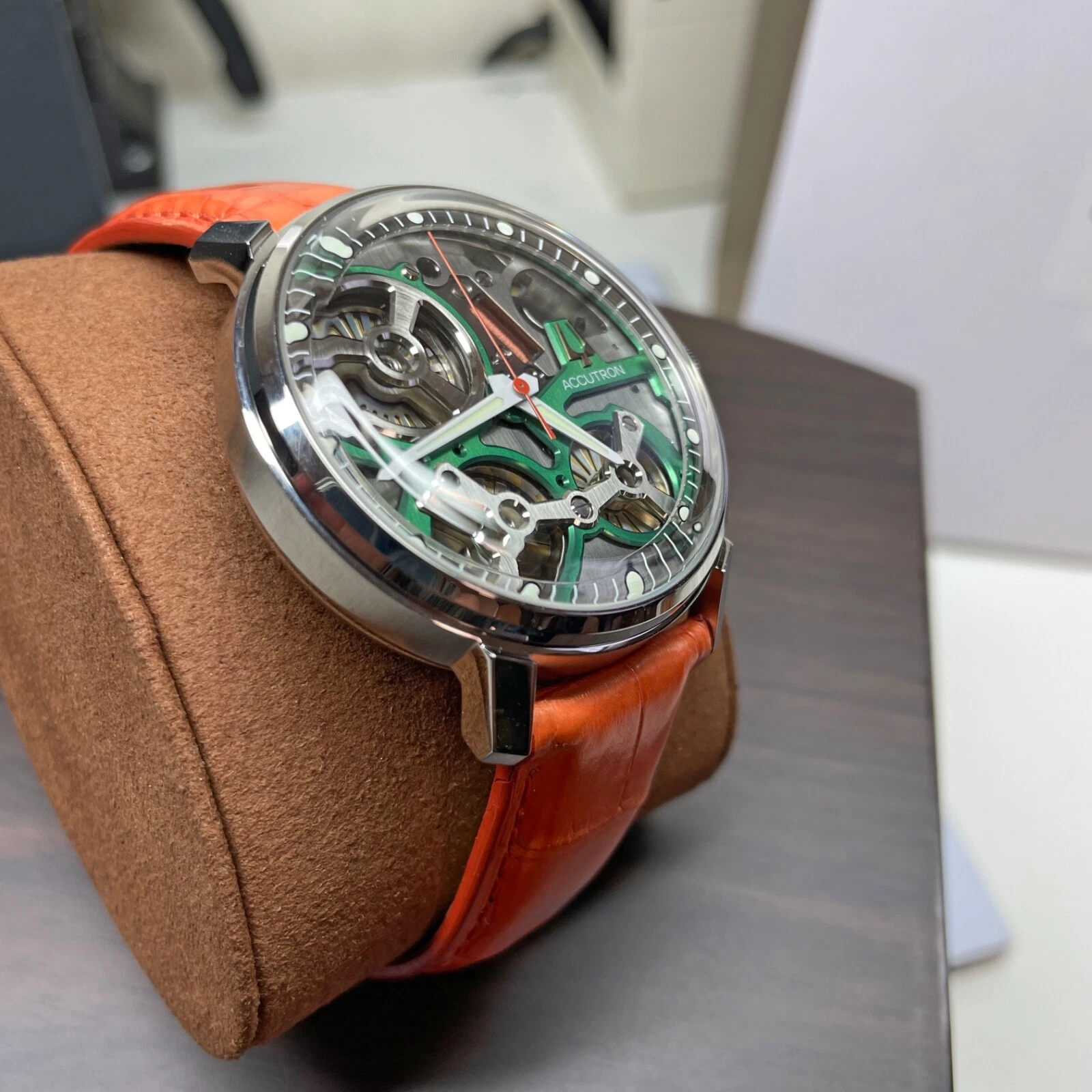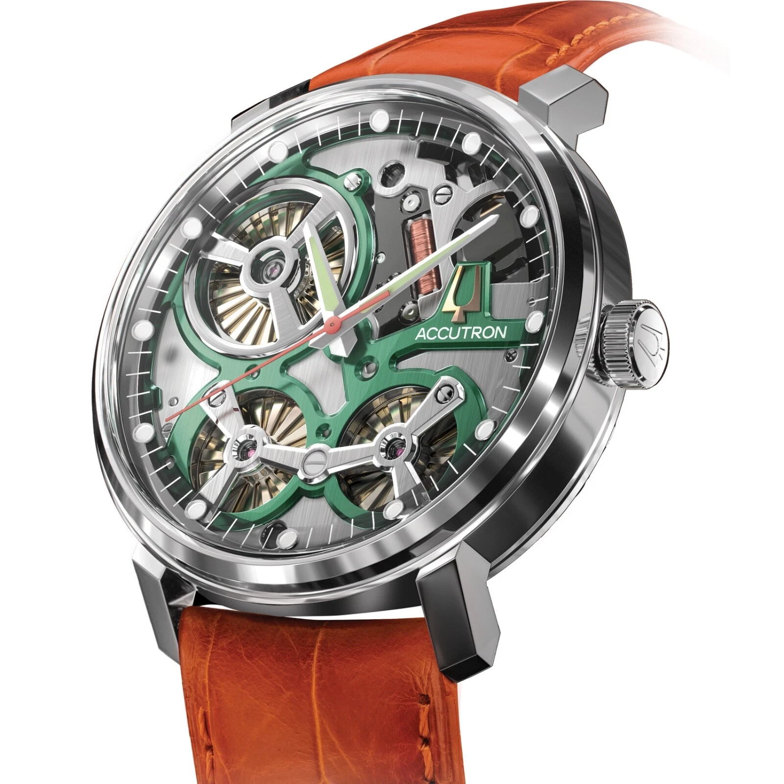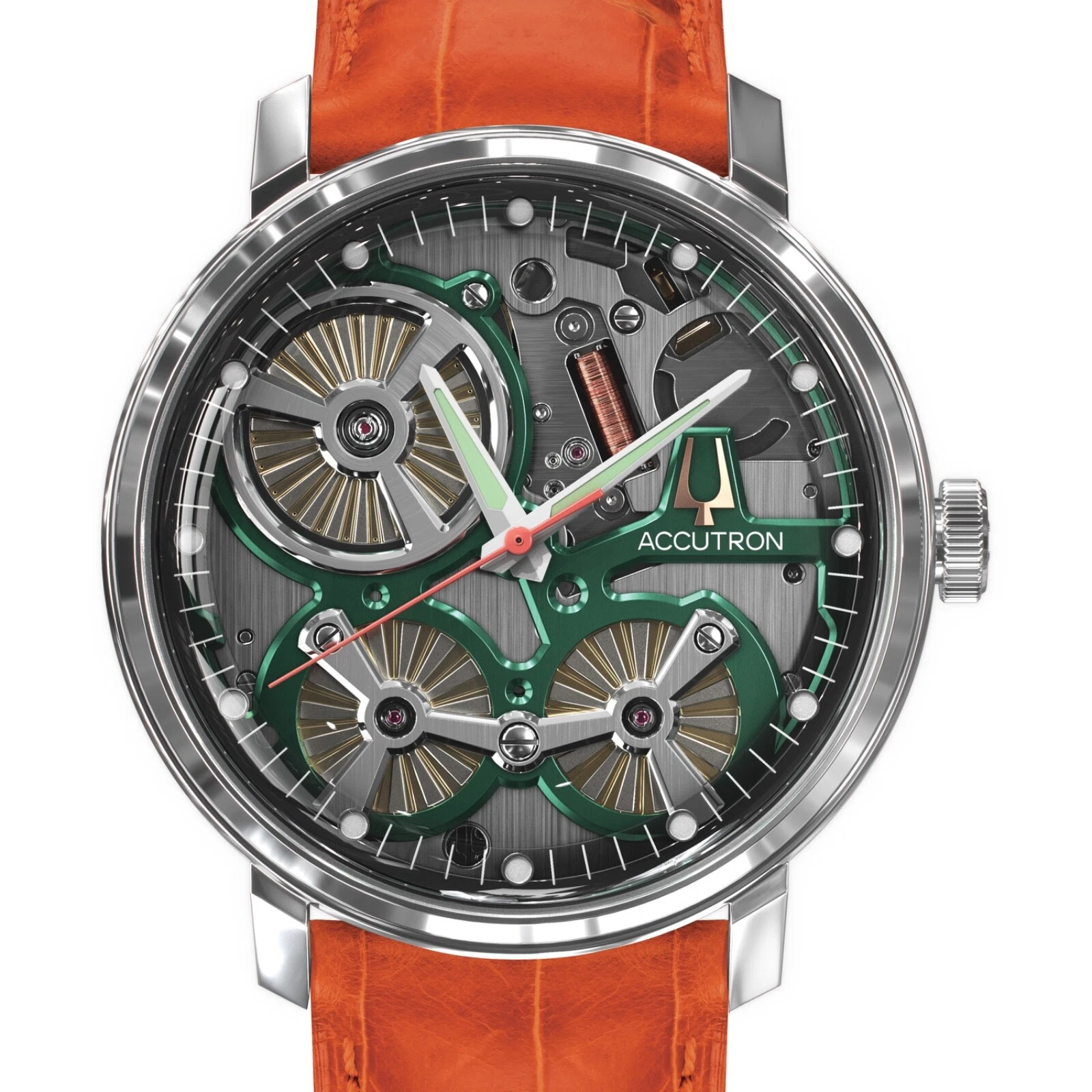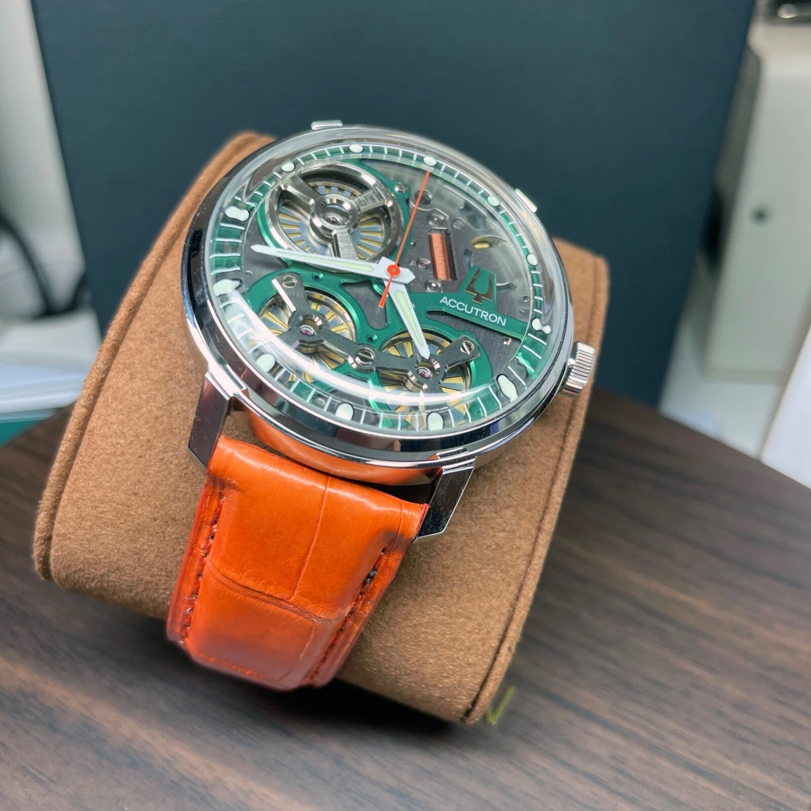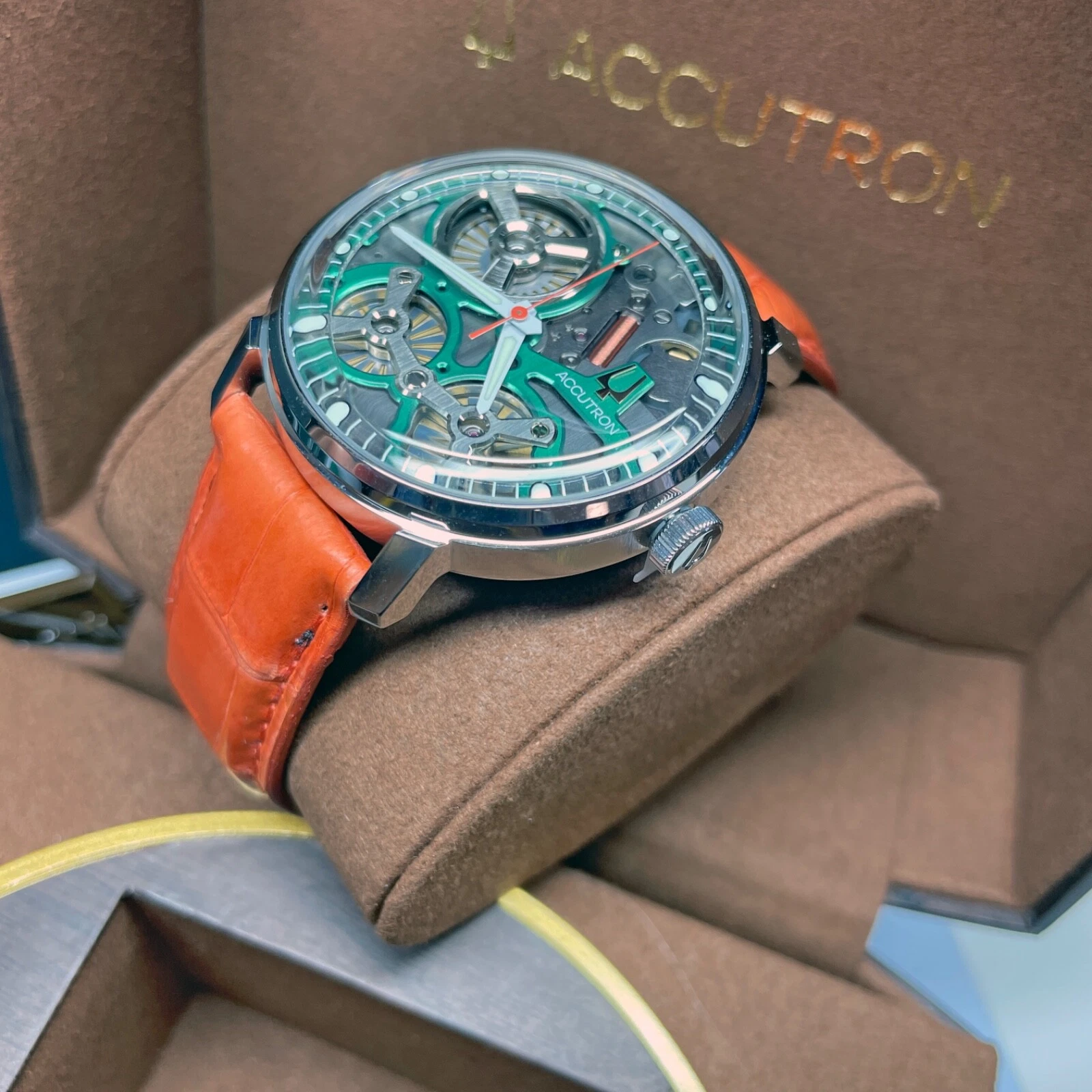 Accutron Spaceview 2020 ElectroStatic Green Dial Orange Watch 2ES6A004