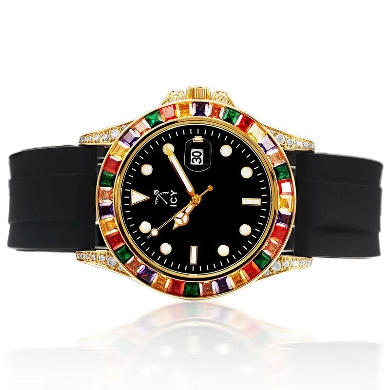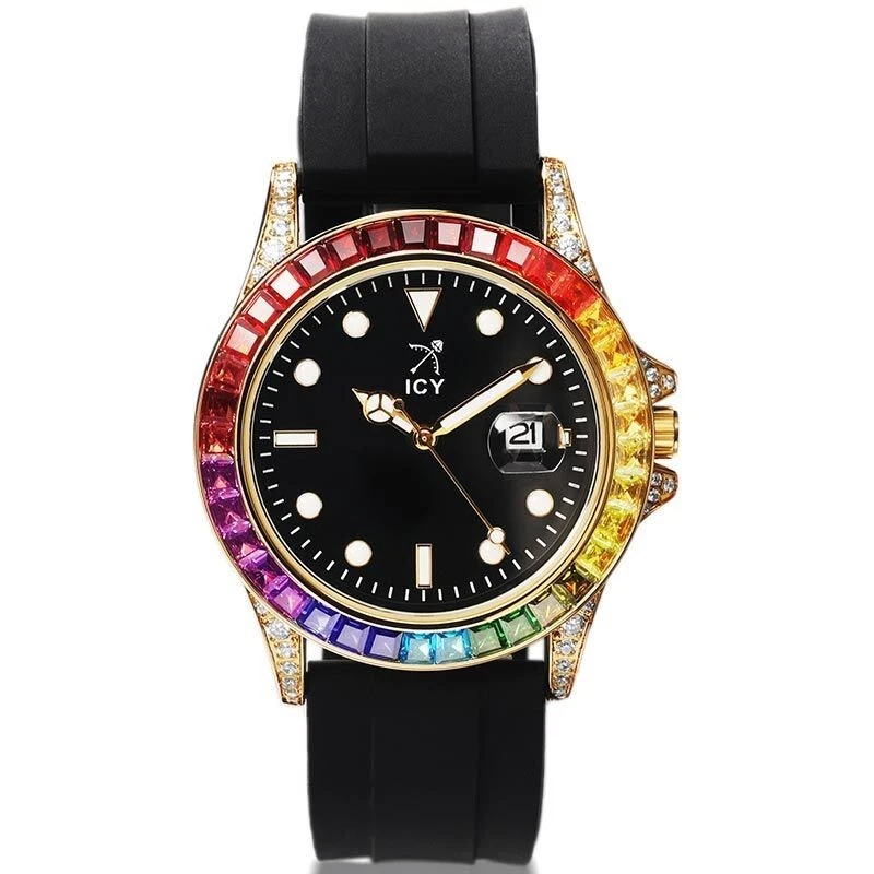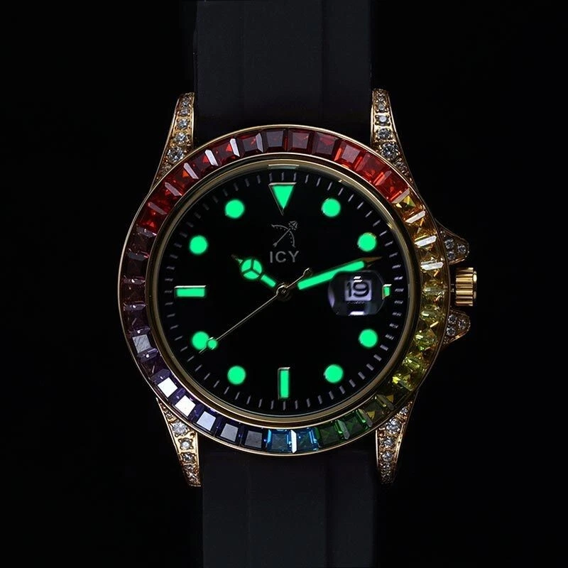 Rainbow Rose Gold Watch with Black Luminous Dial