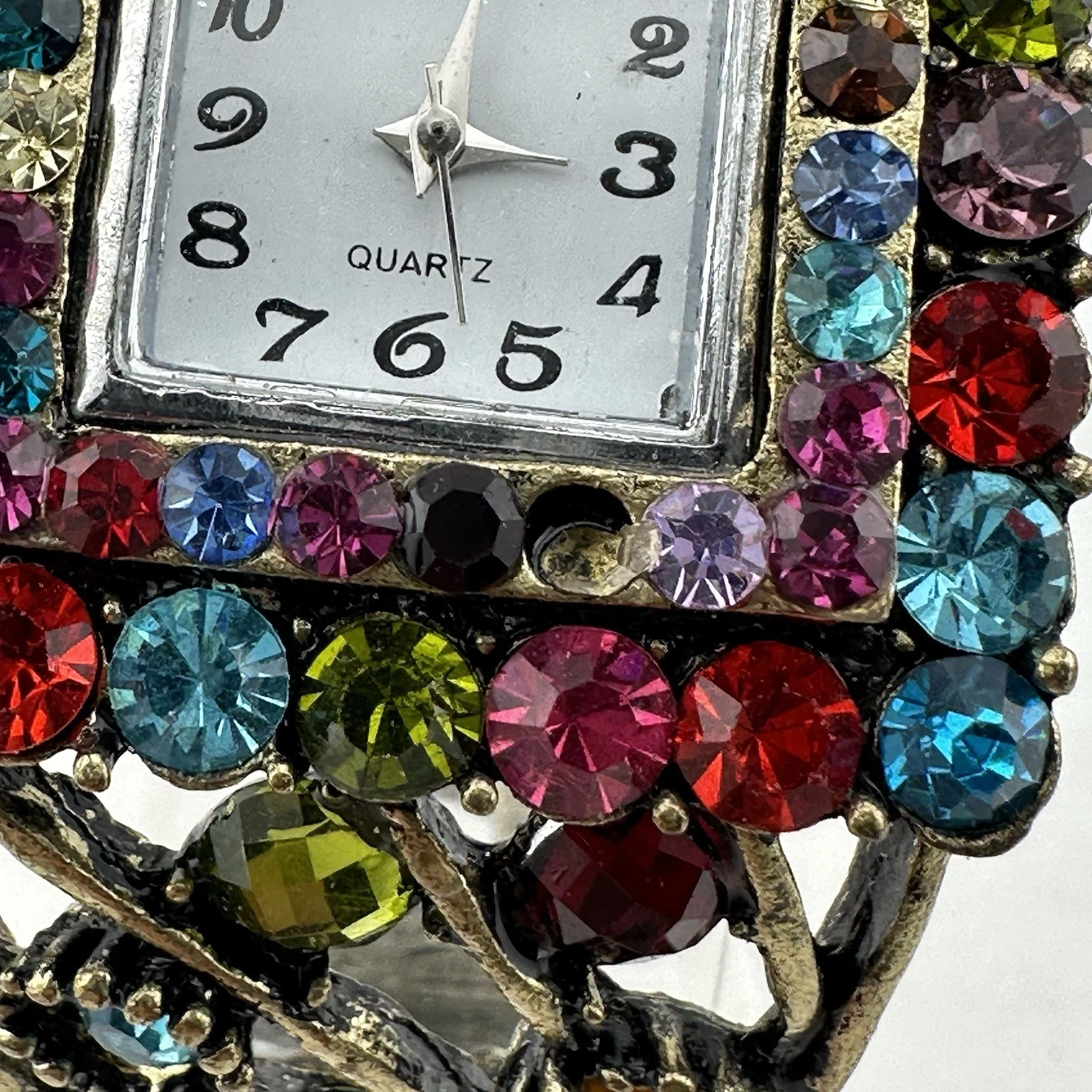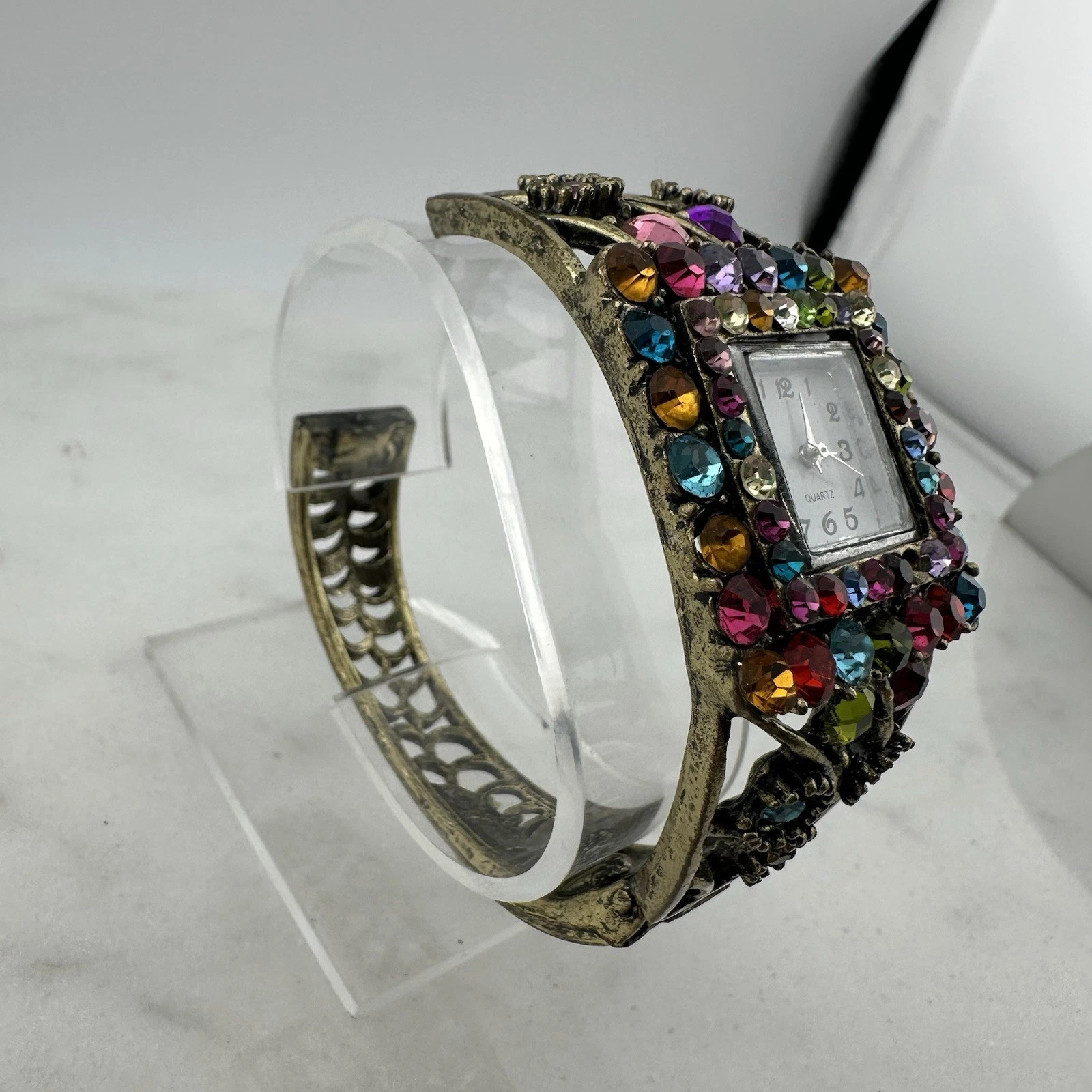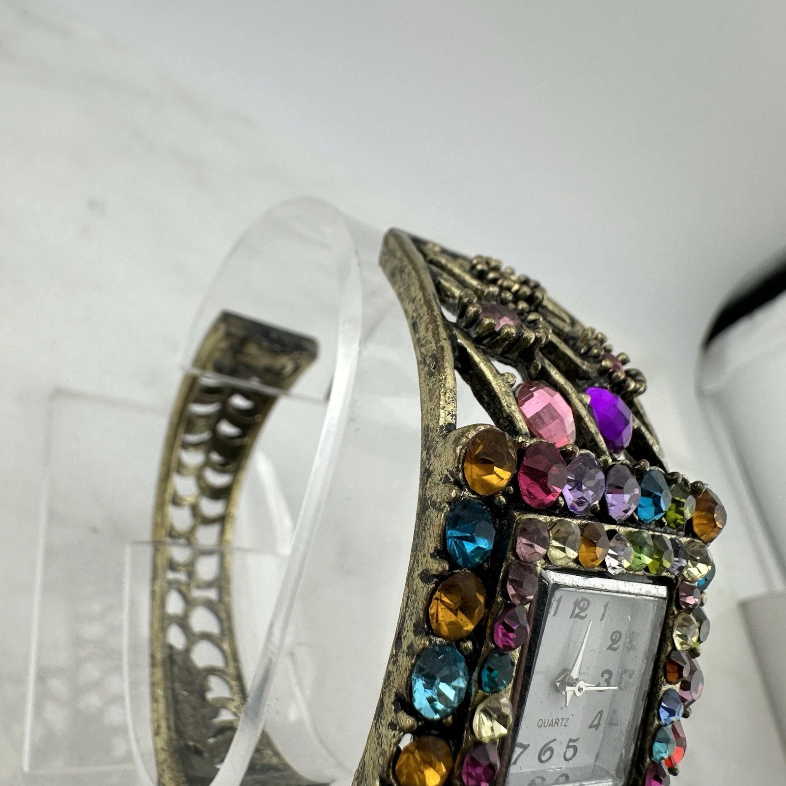 Women’s Watch Square Dial Rainbow Rhinestone Cuff Watch - New Battery Installed