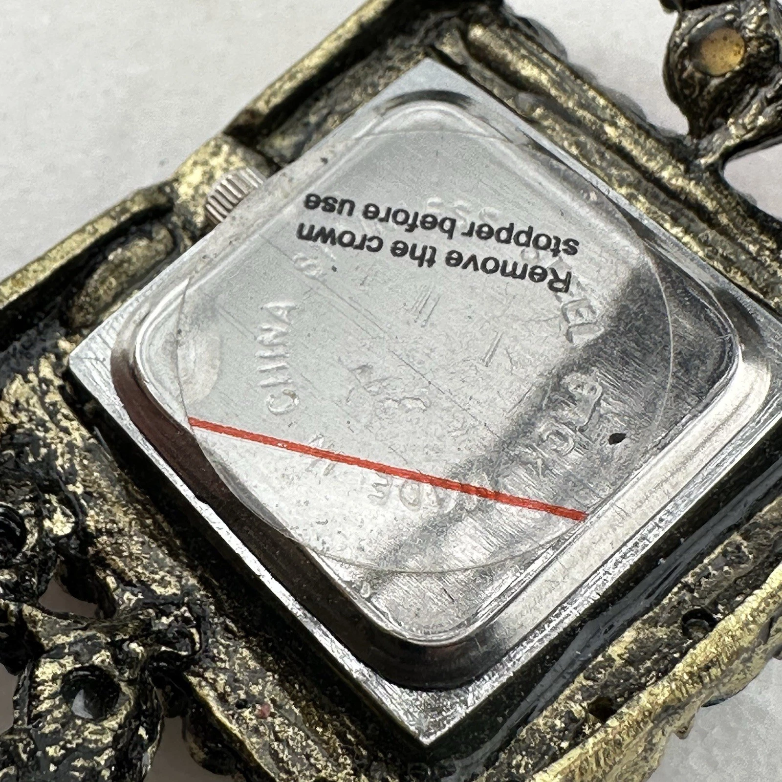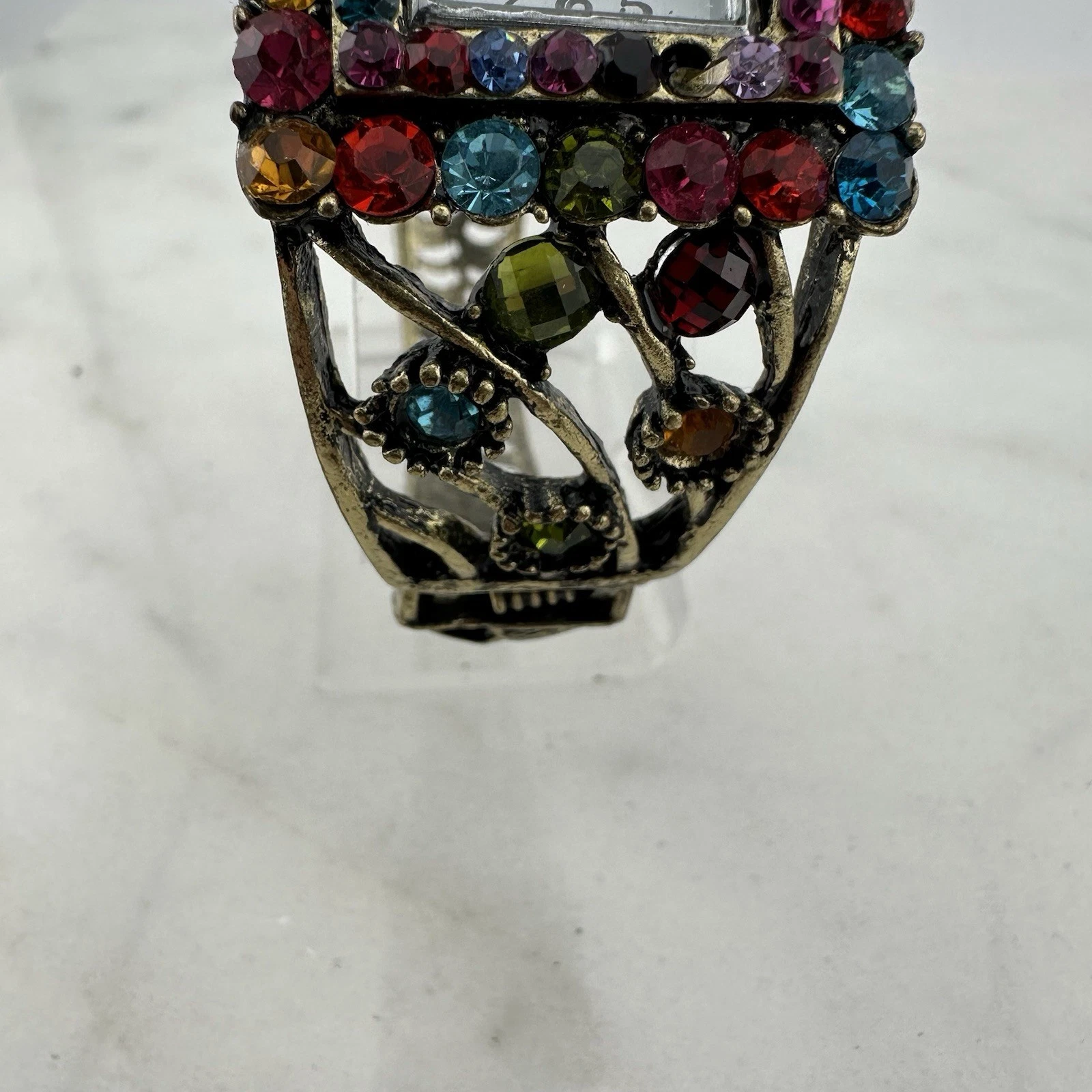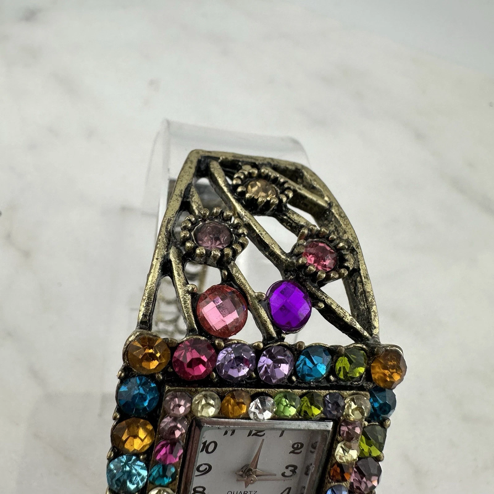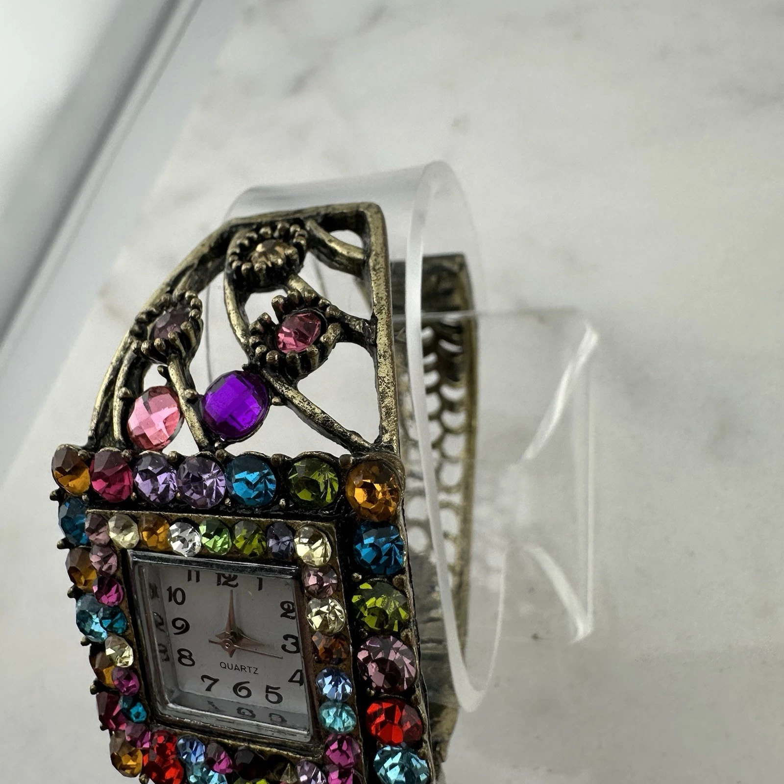 Women’s Watch Square Dial Rainbow Rhinestone Cuff Watch - New Battery Installed