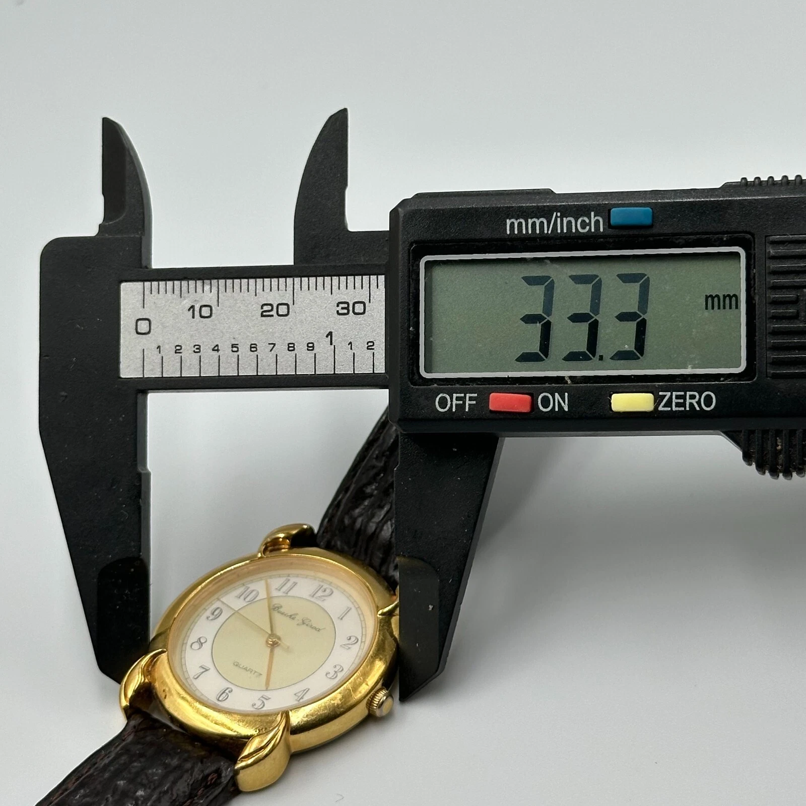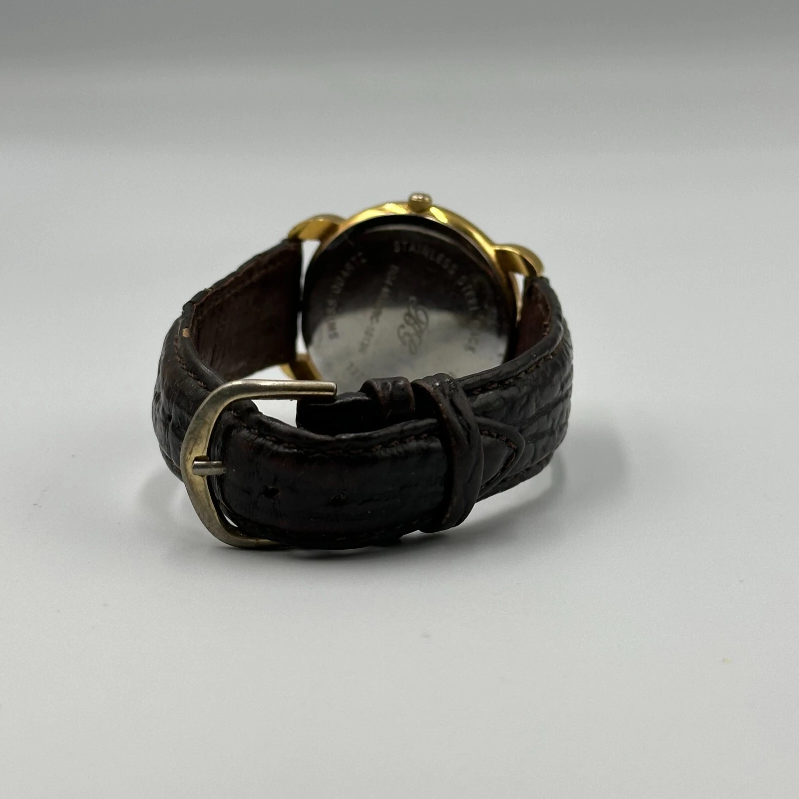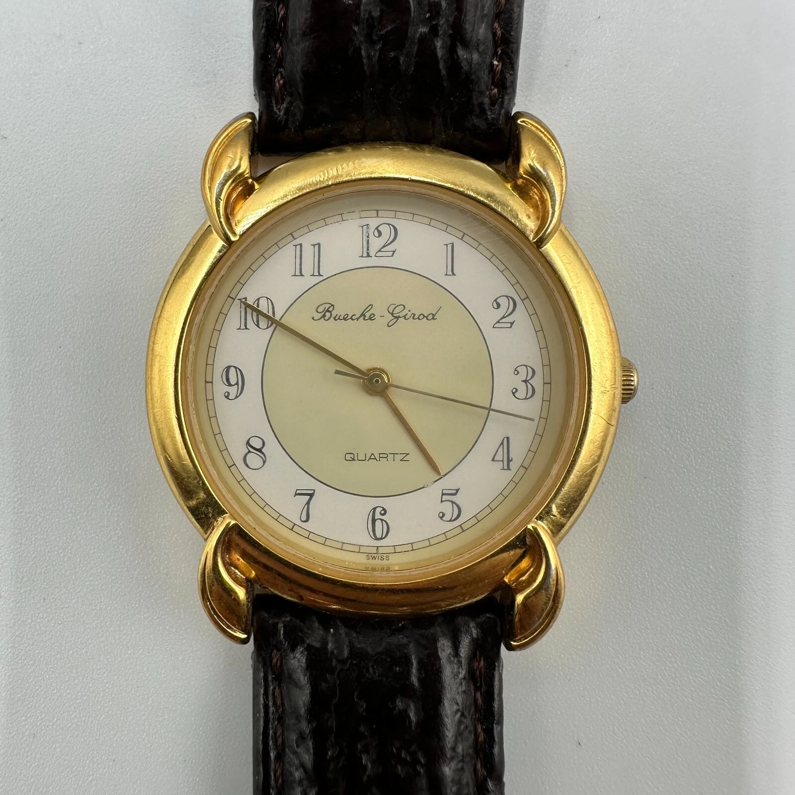 Vintage Bueche Girod Watch Women Gold Tone Brown Leather Band New Battery 9"