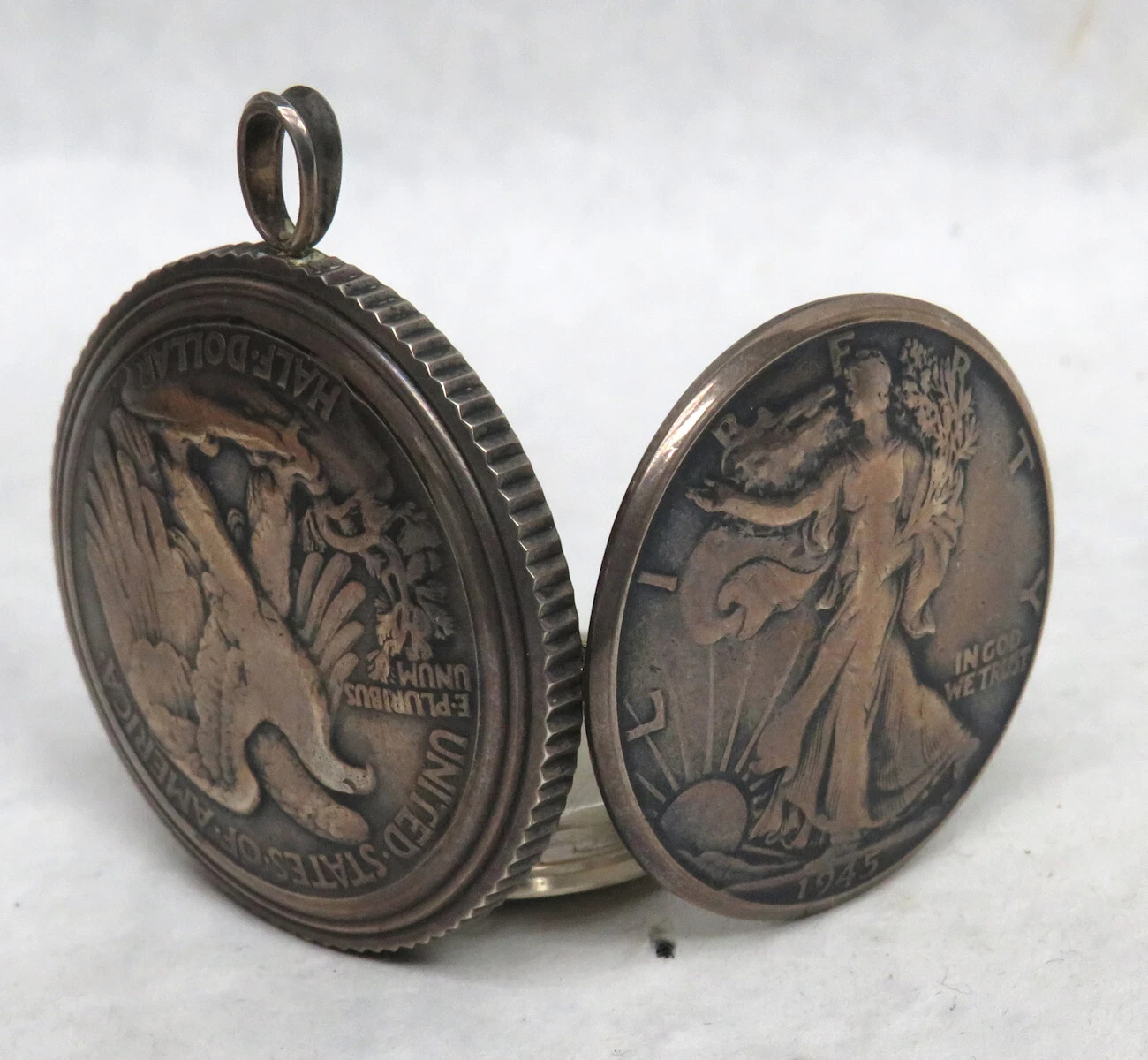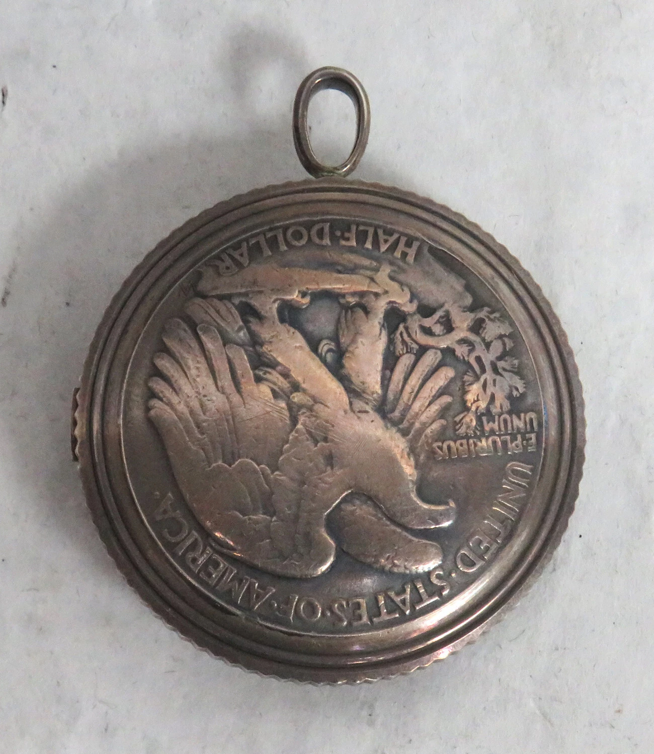 RARE SILVER BUECHE GIROD BIENNE WALKING LIBERTY HALF DOLLAR COIN PENDANT WATCH